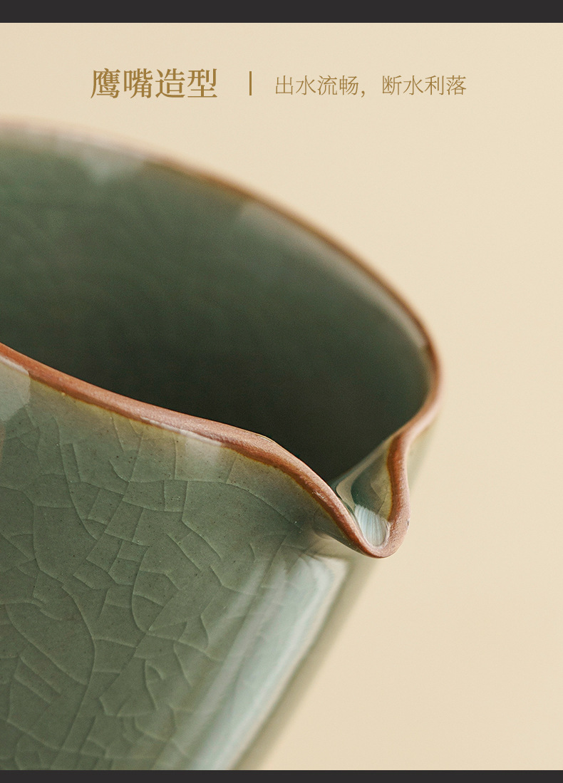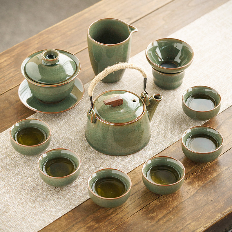 • 11 헤드 빔 포트 Ge 가마 꿀 유약 차 세트 (곡선 핸들 남성 컵)