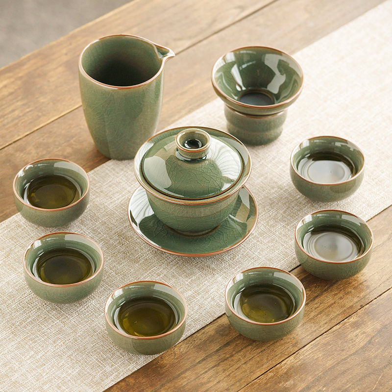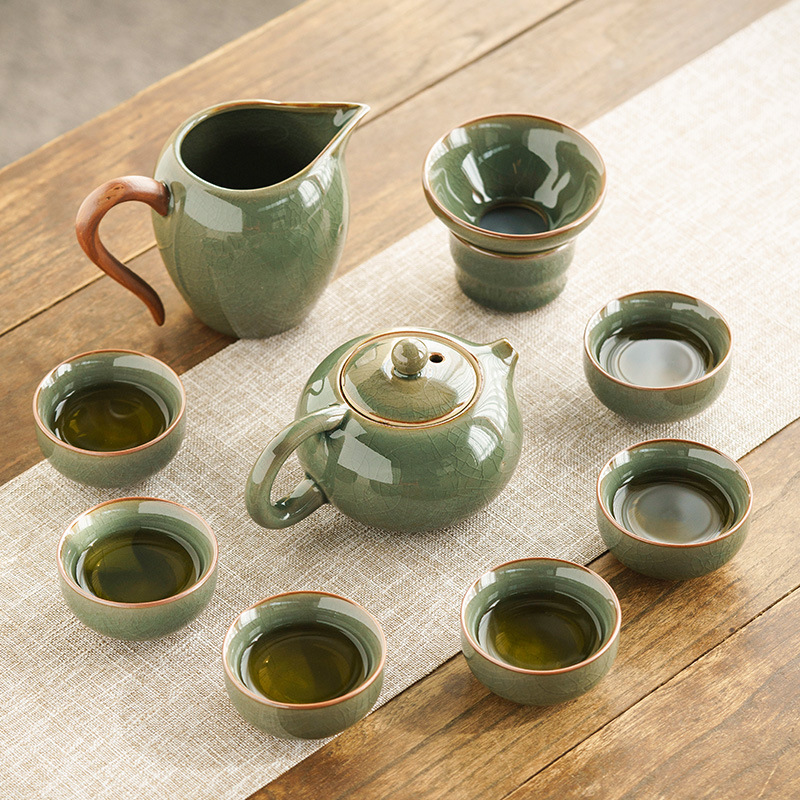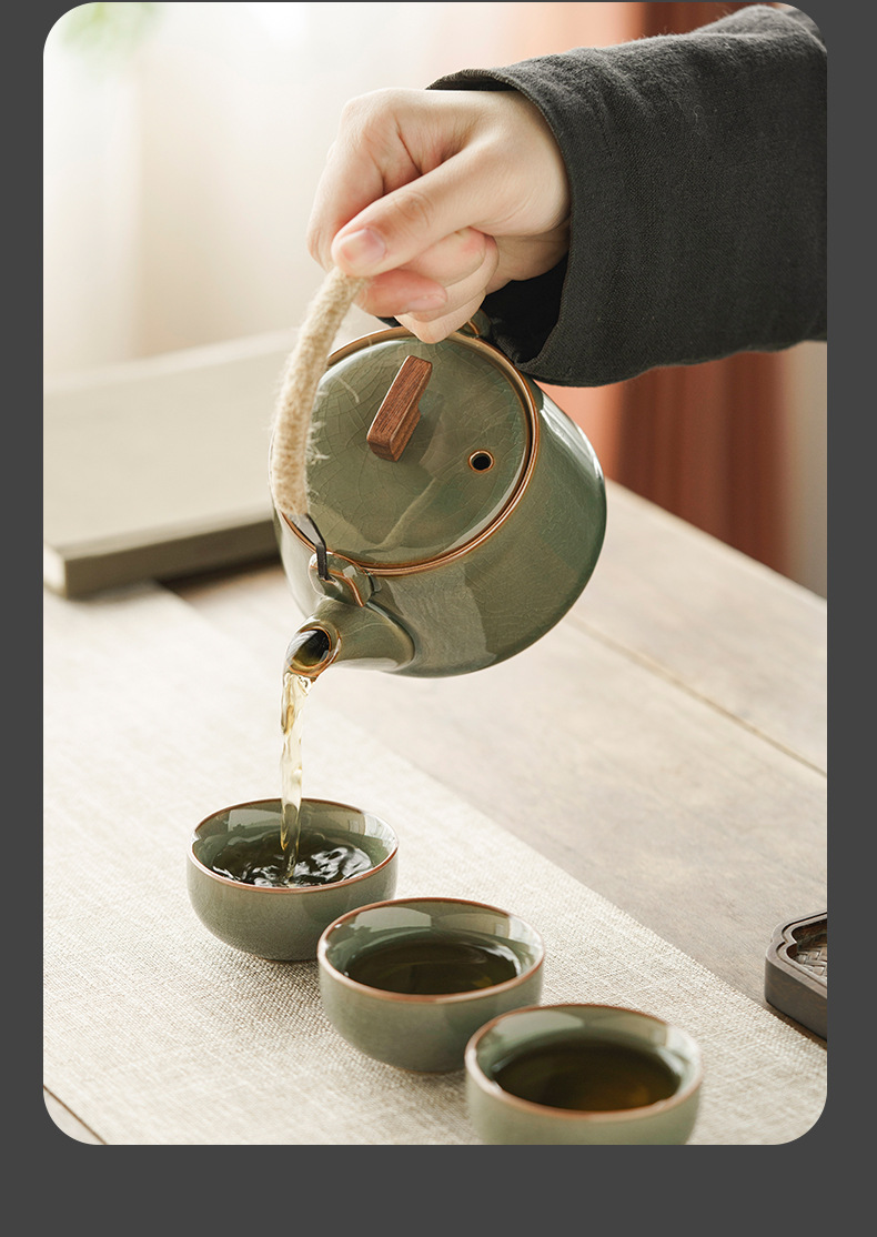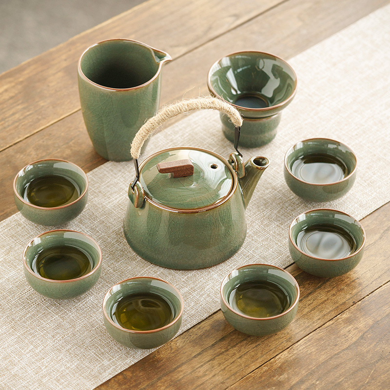 • 10 헤드 빔 포트 Ge 가마 꿀 유약 차 세트 (곡선 핸들 남성 컵)