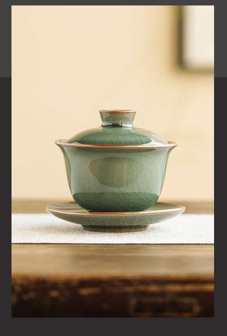• 10 헤드 커버 보울 Ge 가마 꿀 유약 차 세트 (곡선 핸들 남성 컵)