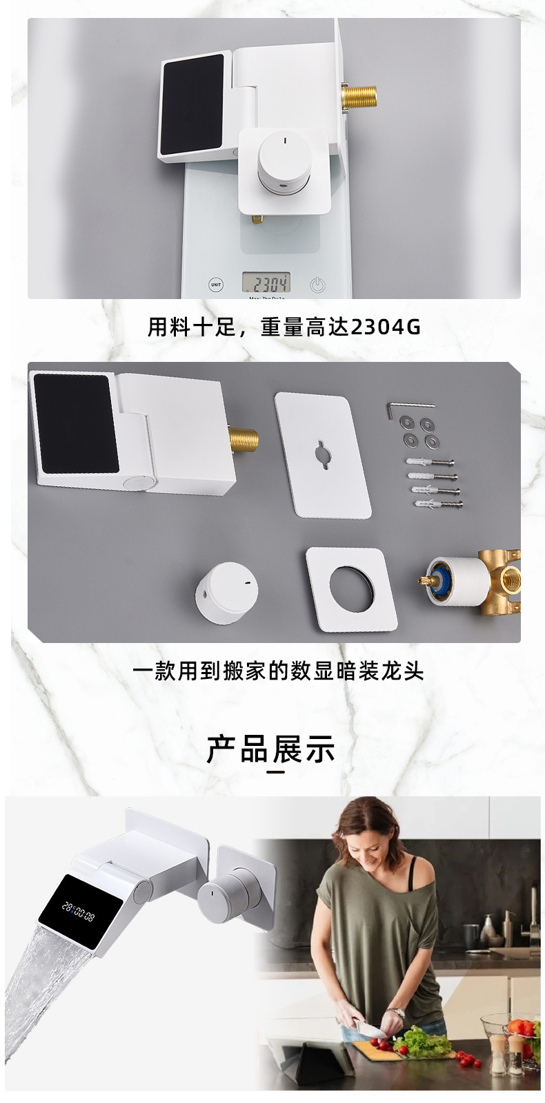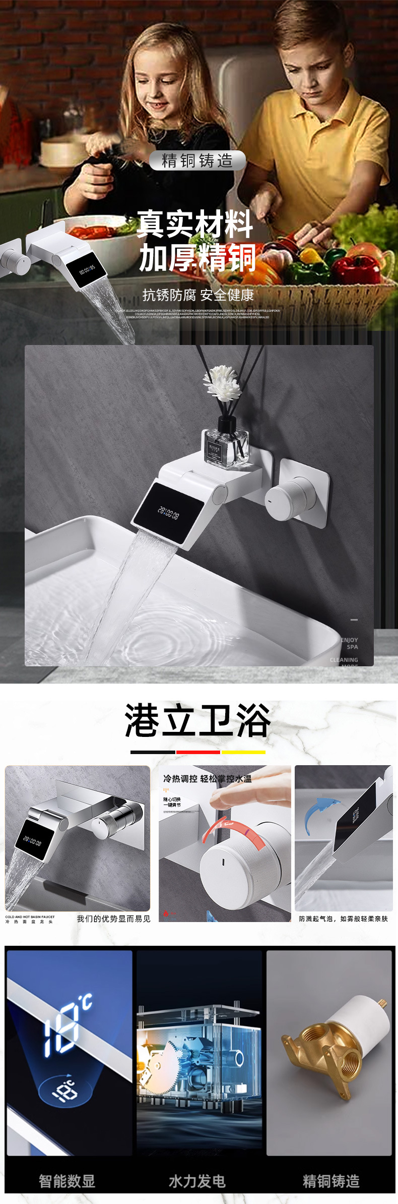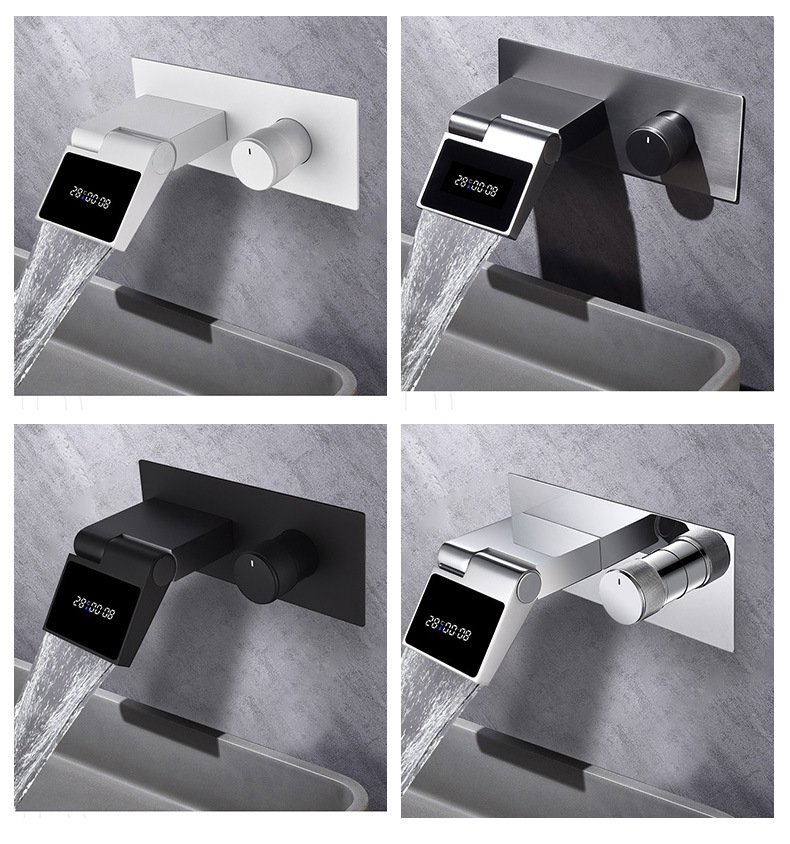 맞춤형 공장 국경 간 신제품 접이식 회전 은폐 된 디지털 디스플레이 분지 수도꼭지 구리 세면기 혼합 밸브 고온 및 냉간