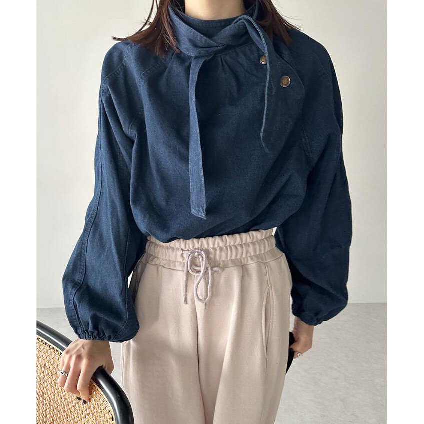 2024 년 봄 새 롯데인 뜨거운 판매 느슨한 슬리밍 활 데님 셔츠 쇼트 셔츠 톱 여성스토어 가기