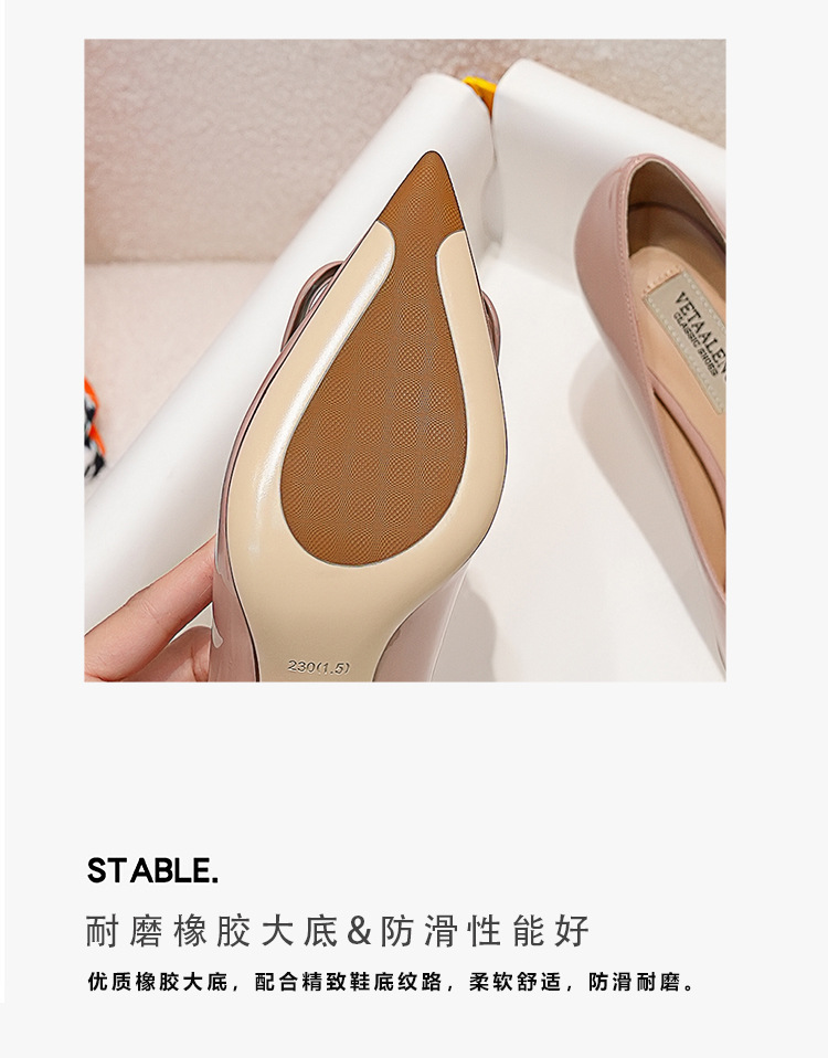 葡萄妈studiolee2024新款V扣法式夏季尖头单鞋高跟后空细跟凉鞋女
