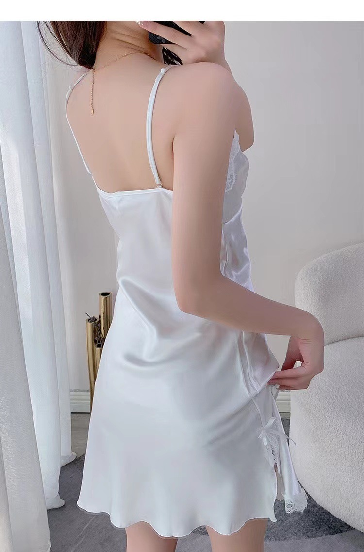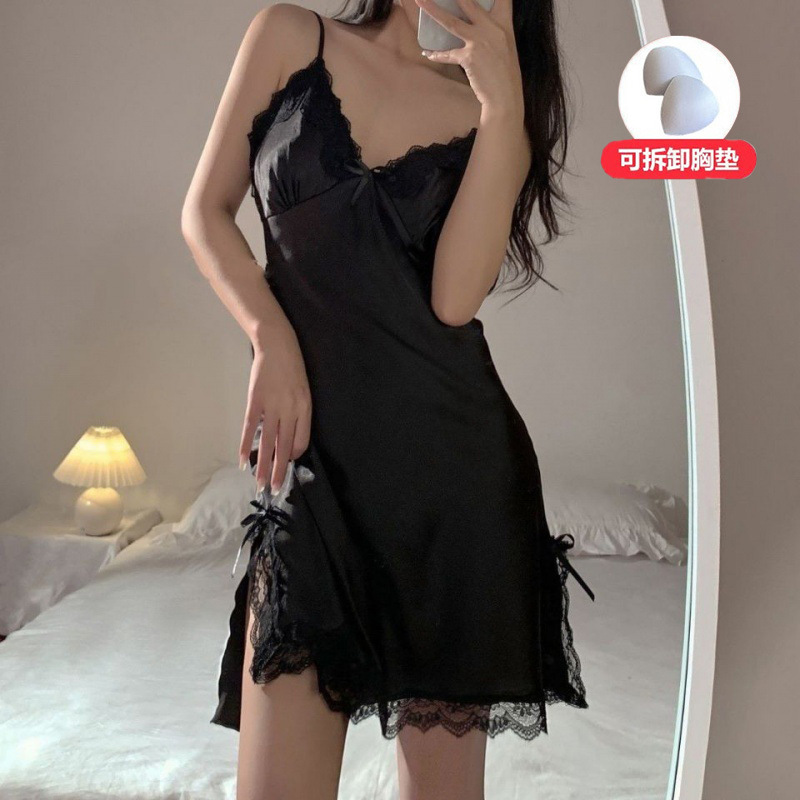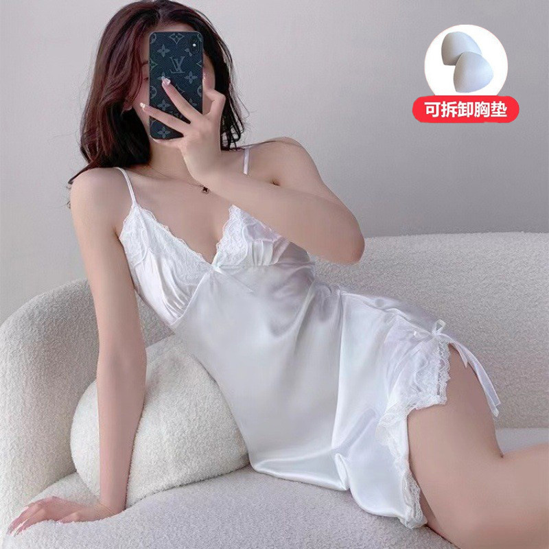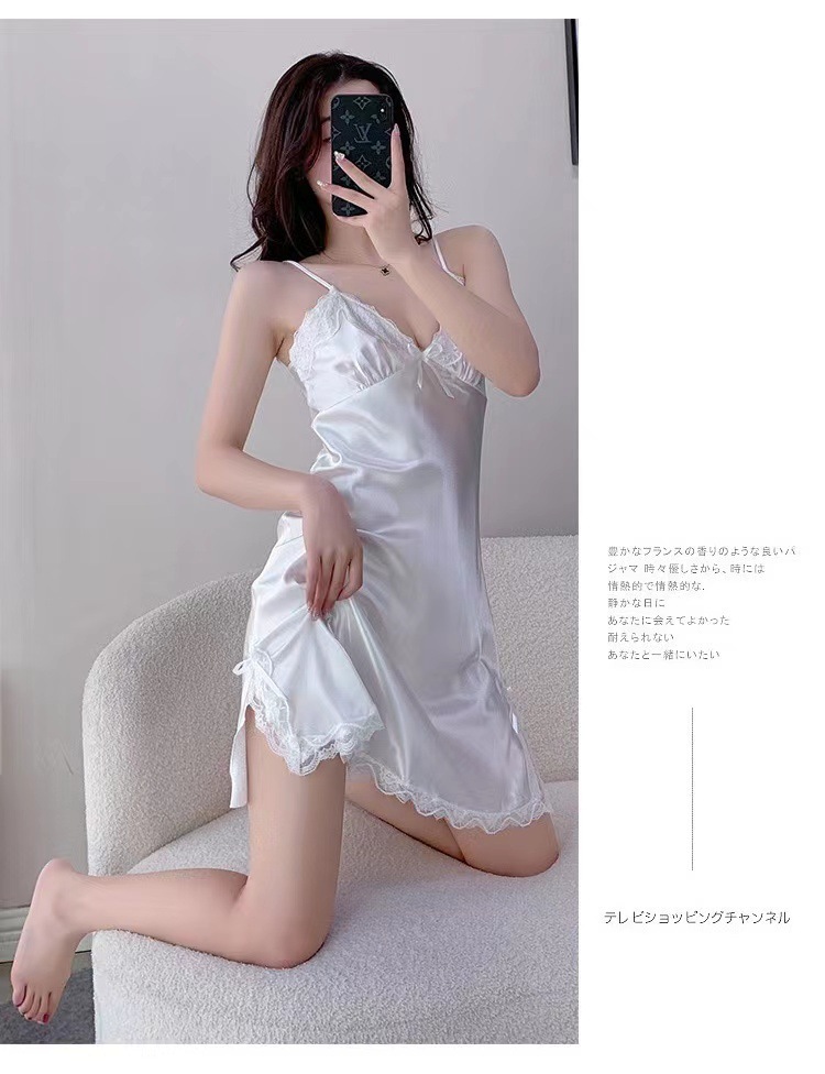 아마존 대외 무역 봄과 여름 인터넷 유명 인사 파란색과 흰색 나이트 드레스 레이스 스플릿 서스펜더 원피스 섹시한 잠옷 여성 홈웨어스토어 가기