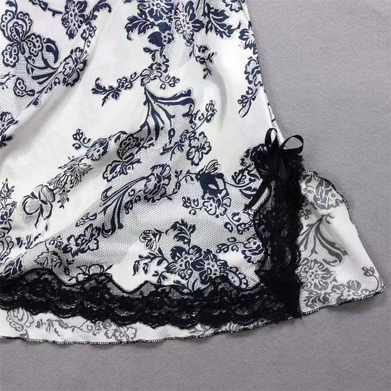 아마존 대외 무역 봄과 여름 인터넷 유명 인사 파란색과 흰색 나이트 드레스 레이스 스플릿 서스펜더 원피스 섹시한 잠옷 여성 홈웨어