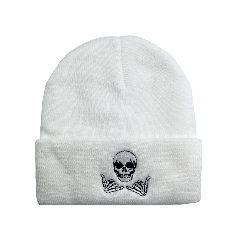 국경을 넘나 드는 뜨거운 판매 두개골 손 수 놓은 남자와 여자를위한 니트 양모 모자 가을과 겨울 풀오버 콜드 모자를위한 모든 경기 따뜻한 모자