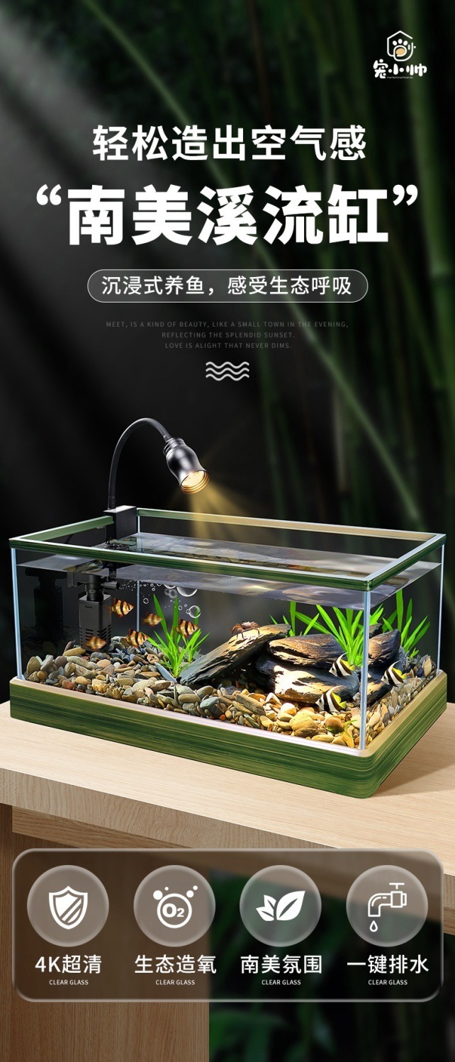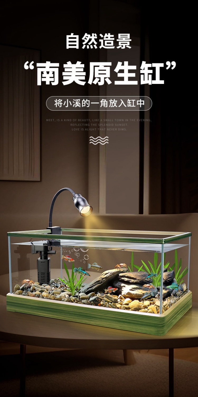 Yut 남미 스트림 물고기 탱크 원주민 탱크 수족관 가정용 전체 세트 풍경 슈퍼 클리어 유리 탱크 물 무료 생태