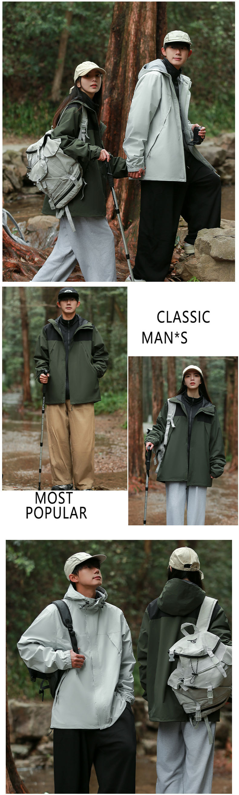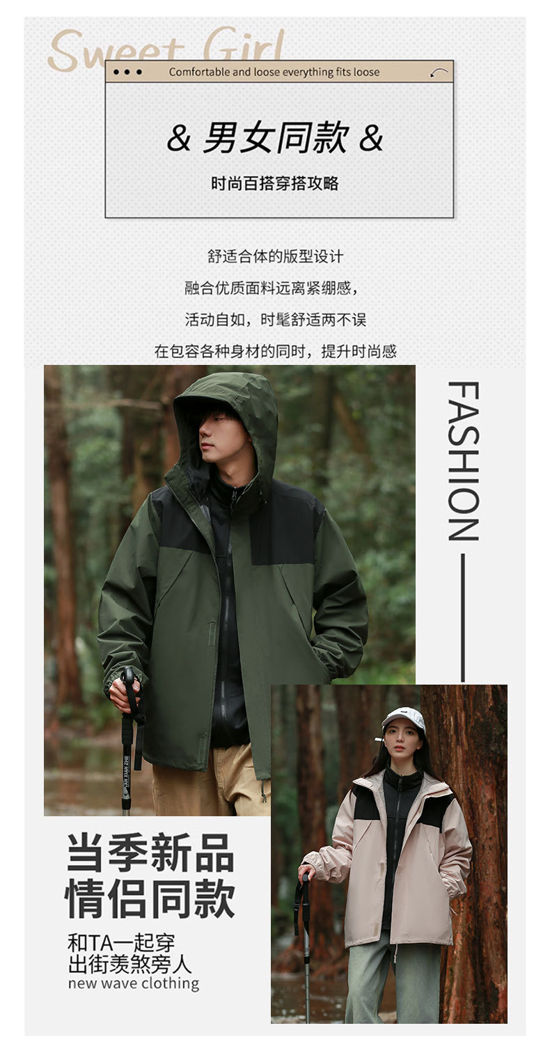 남성과 여성 커플을위한 새로운 3 대 1 탈착식 재킷 투피스 야외 기모 두꺼운 따뜻한 재킷