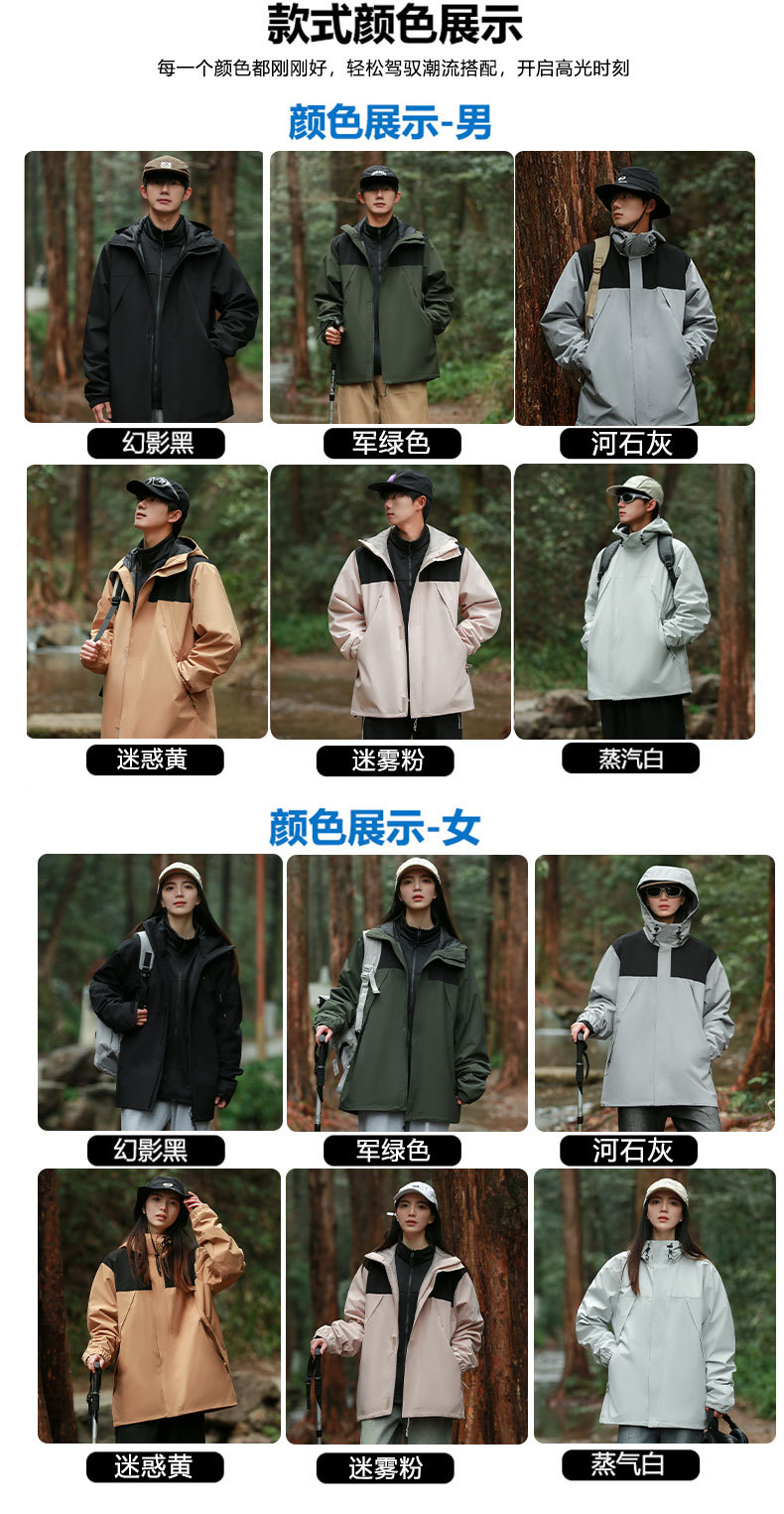 남성과 여성 커플을위한 새로운 3 대 1 탈착식 재킷 투피스 야외 기모 두꺼운 따뜻한 재킷스토어 가기