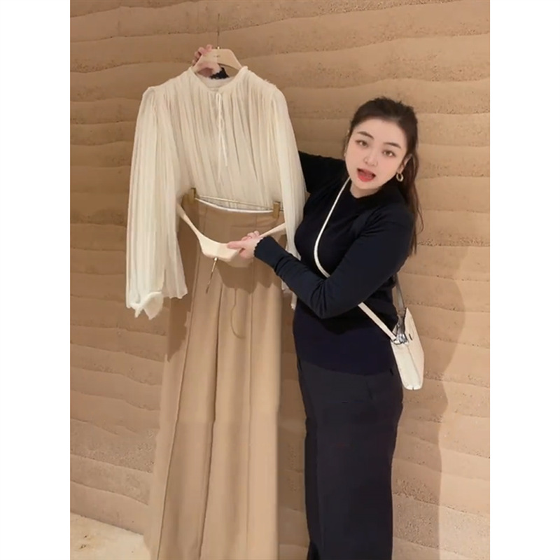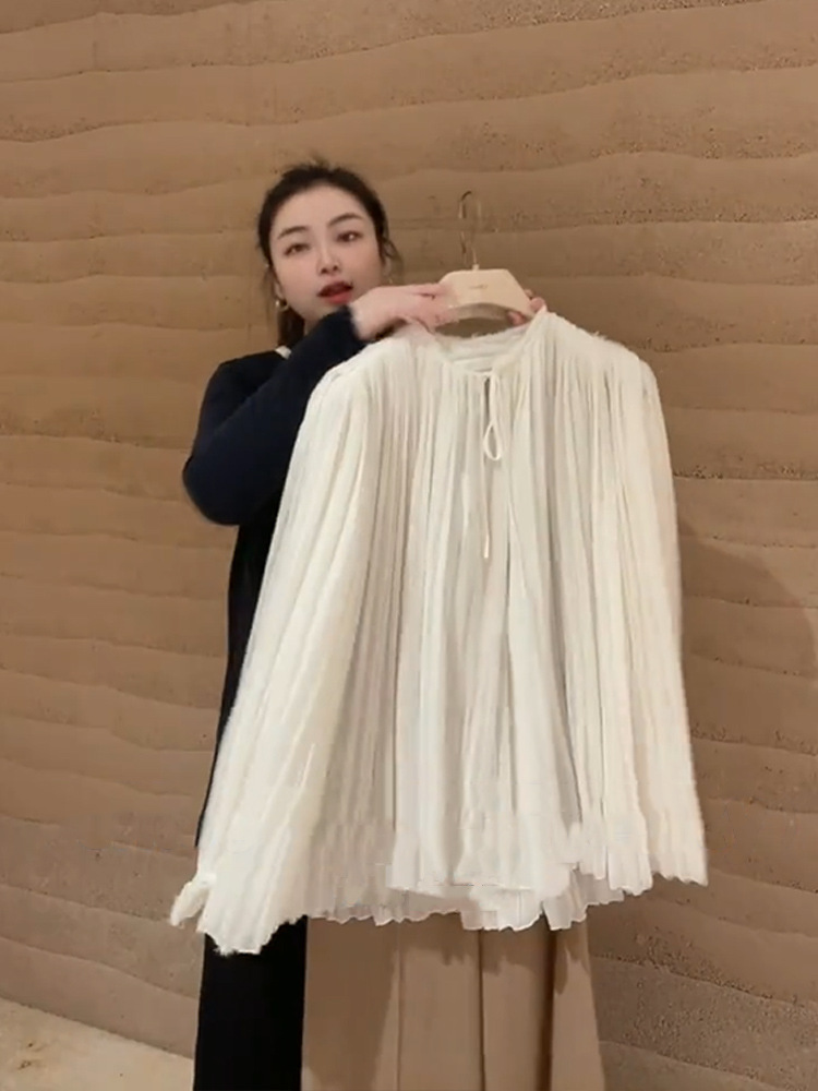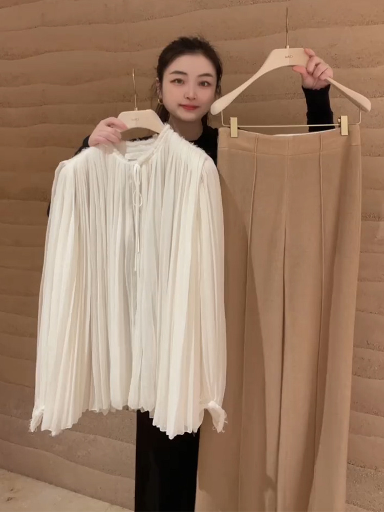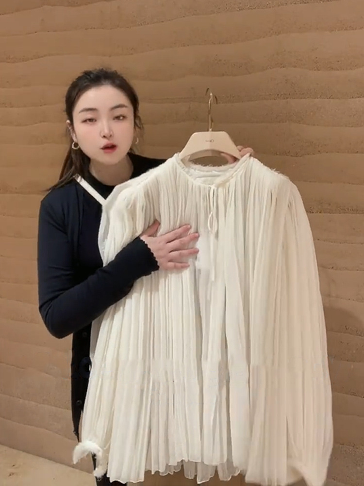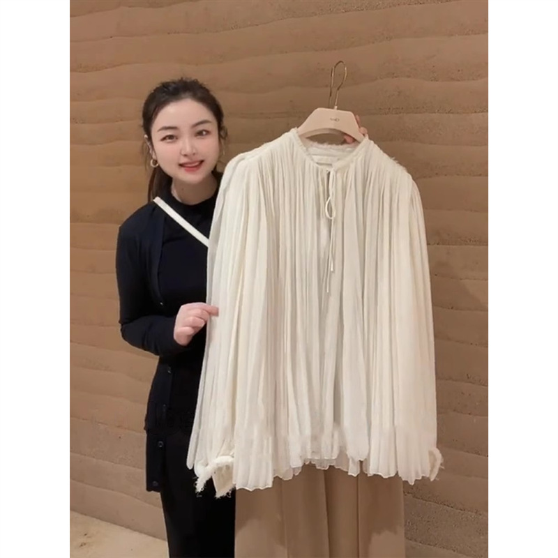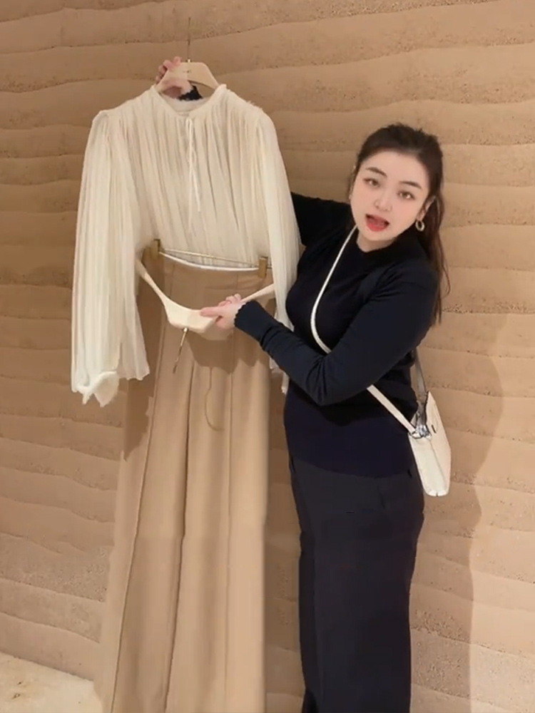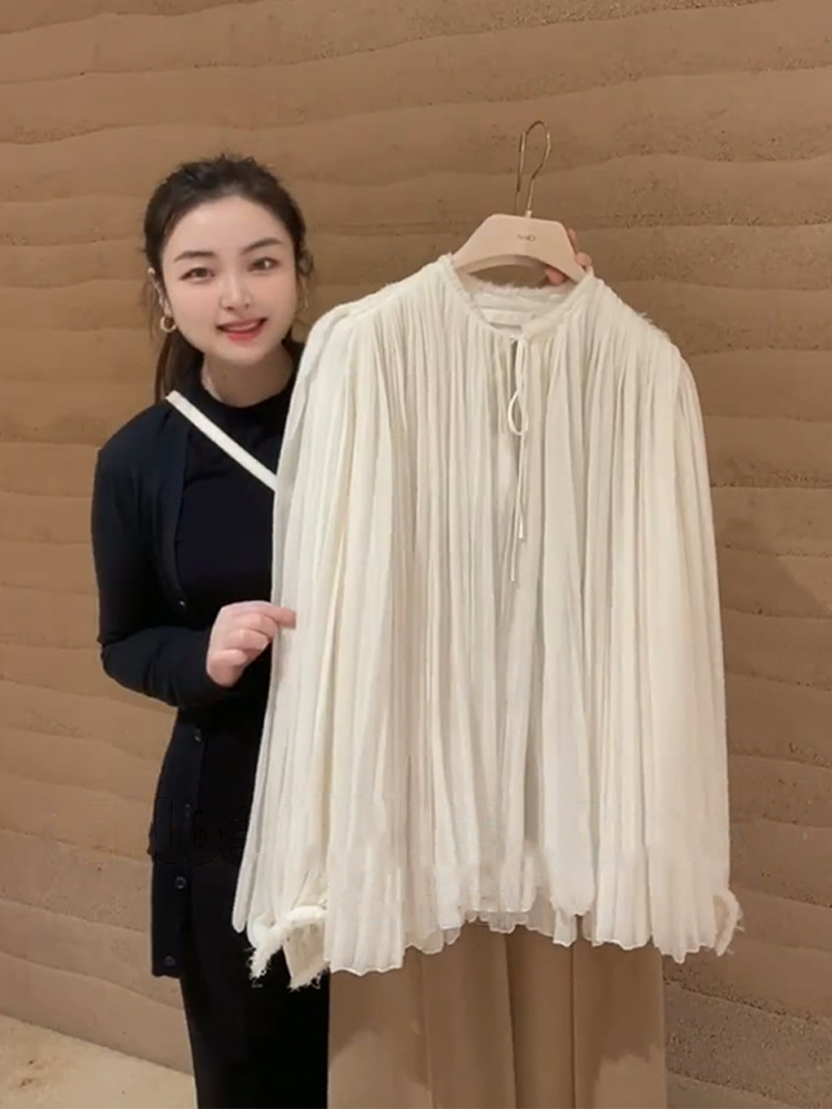 YT259397 초봄 여성 2024 올해 새로운 인기 아름다운 한국 드라마 살구색 셔츠 스타일 착용