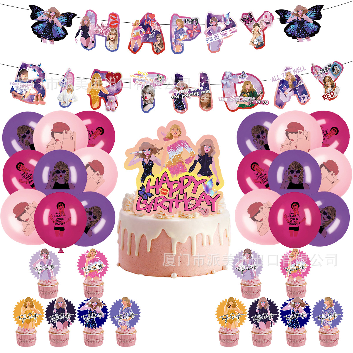 套装包括:1条拉旗+18个乳胶气球+12个蛋糕插旗+1个蛋糕插牌