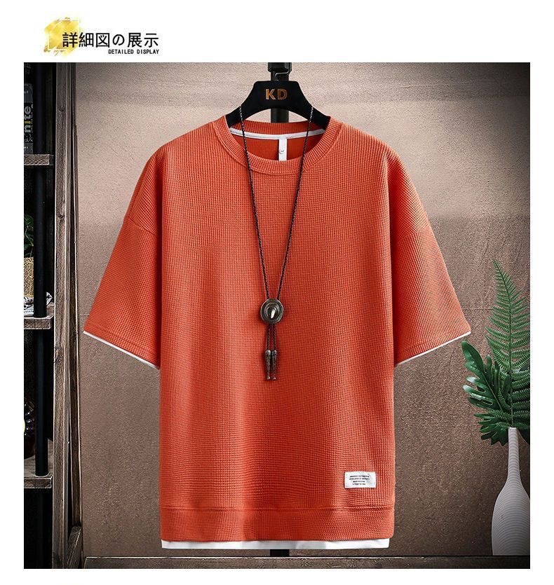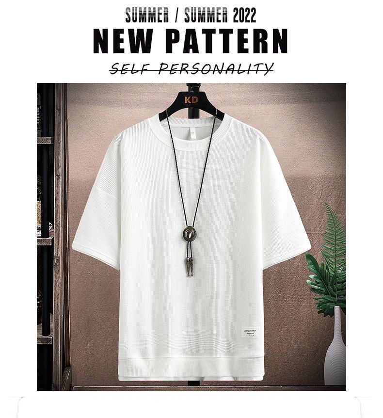 와플 티셔츠 남성용 반팔 아이스 실크 여름 세트 잘 생긴 캐주얼 스포츠 의류 바지스토어 가기