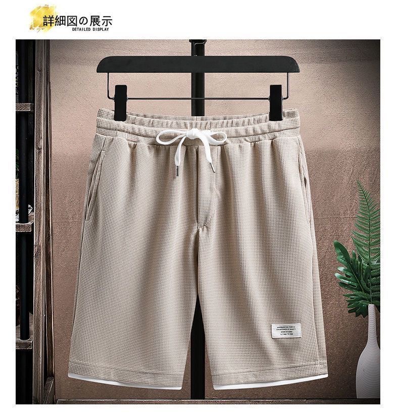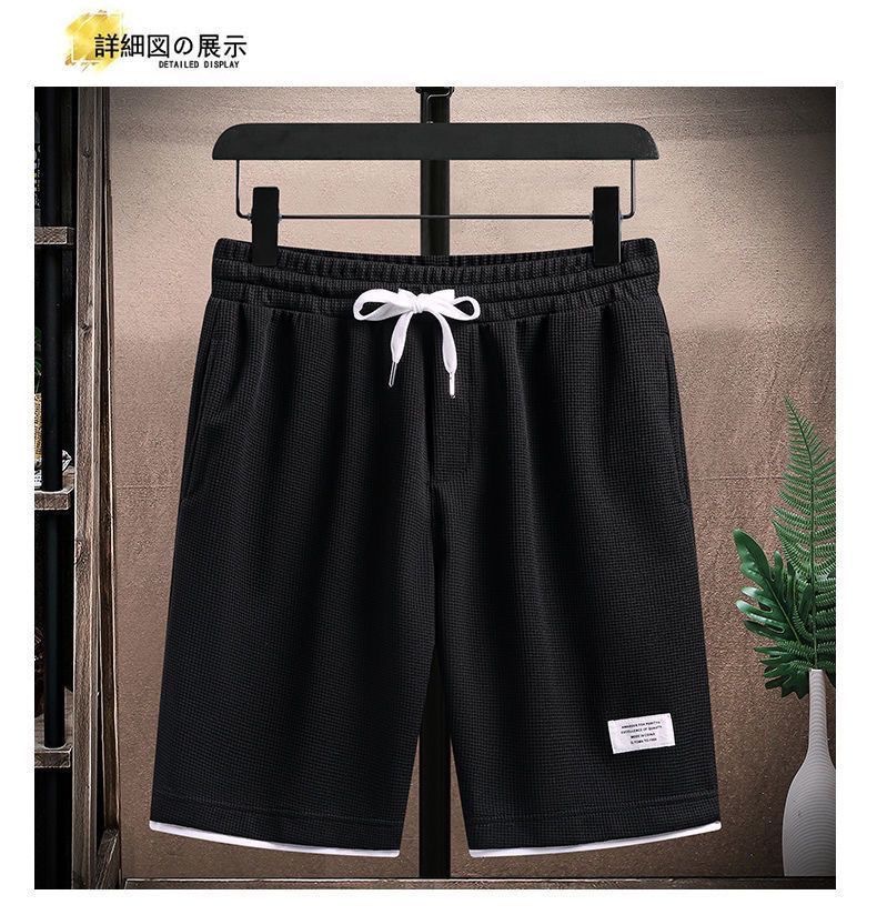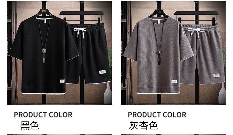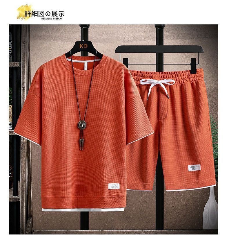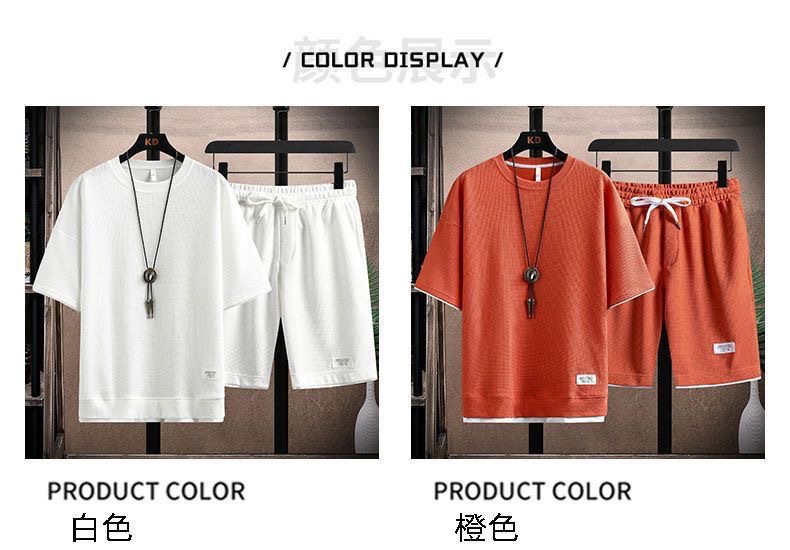와플 티셔츠 남성용 반팔 아이스 실크 여름 세트 잘 생긴 캐주얼 스포츠 의류 바지
