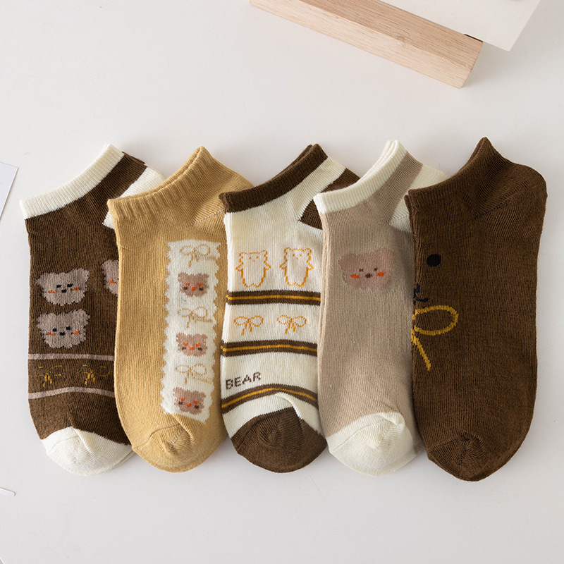 양말 여성 봄 여름 사계절 ins 곰 양말 여성 로우 탑 얕은 입 보트 양말 짧은 양말 거리 매점 공급 도매 양말