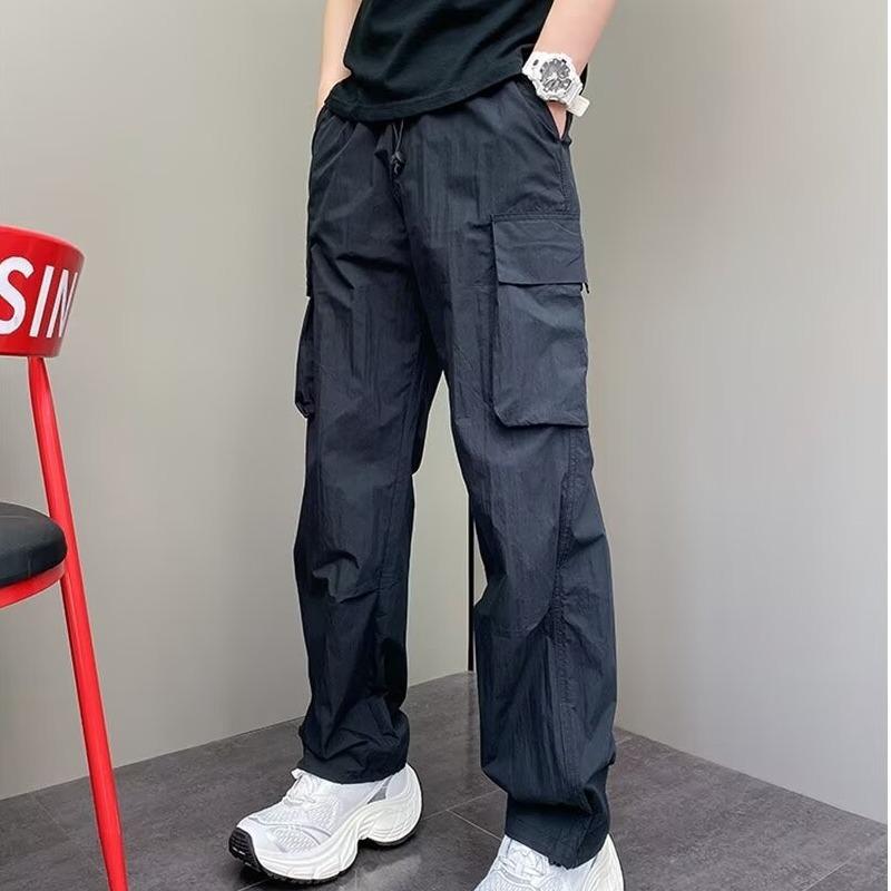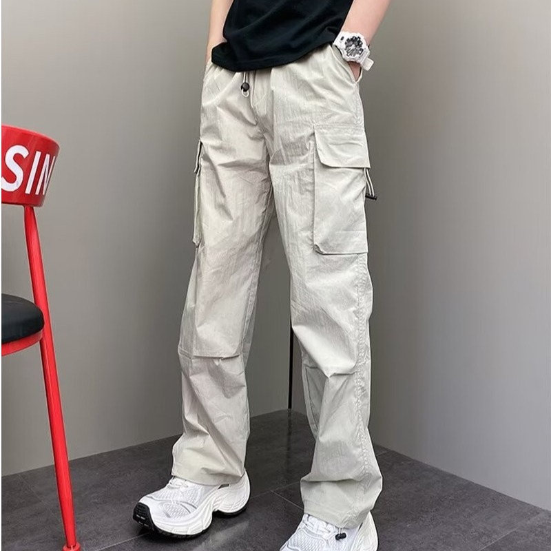 2023 미국의 하이 스트리트 기능성 지퍼 바지 스타일 남성과 여성의 느슨한 스트레이트 캐주얼 바지스토어 가기