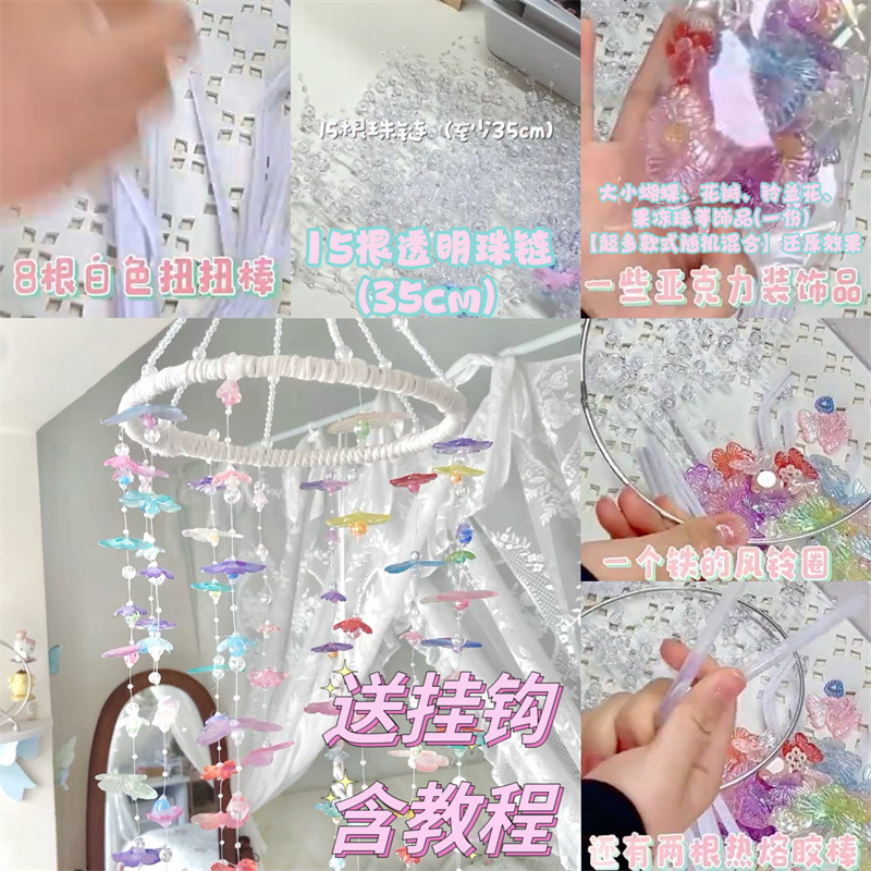 에 나비 바람 차임 완제품 꿈 포수 DIY 소재 패키지 꿈 소녀 침실 기숙사 작은 빨간 책 infp 여자 친구스토어 가기