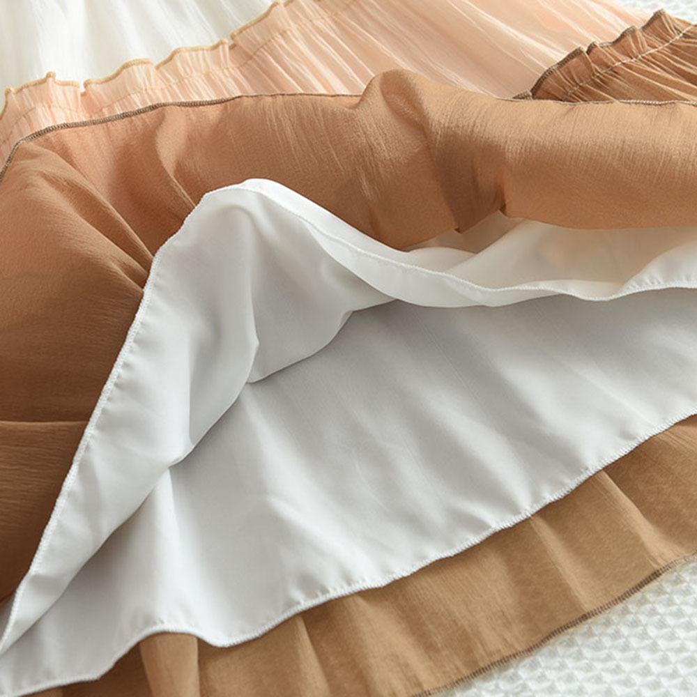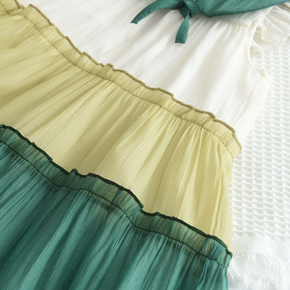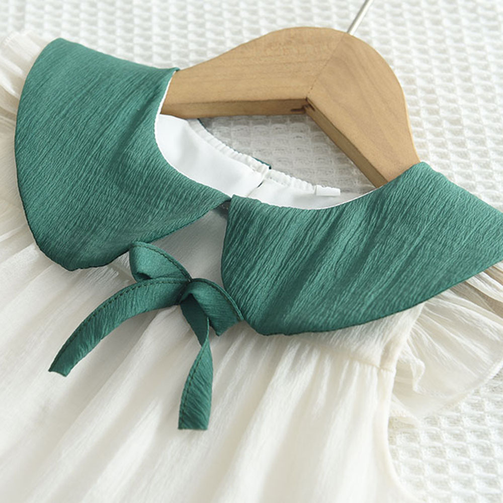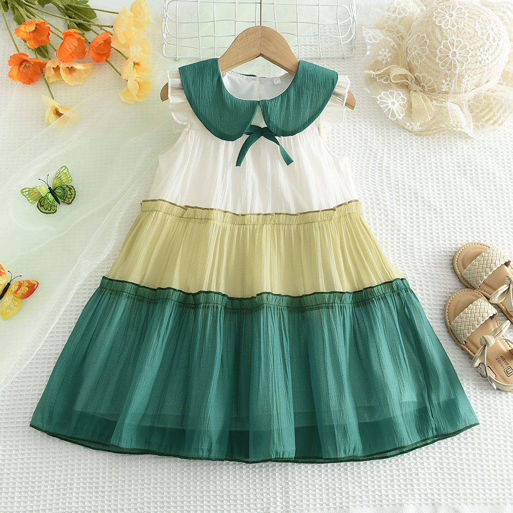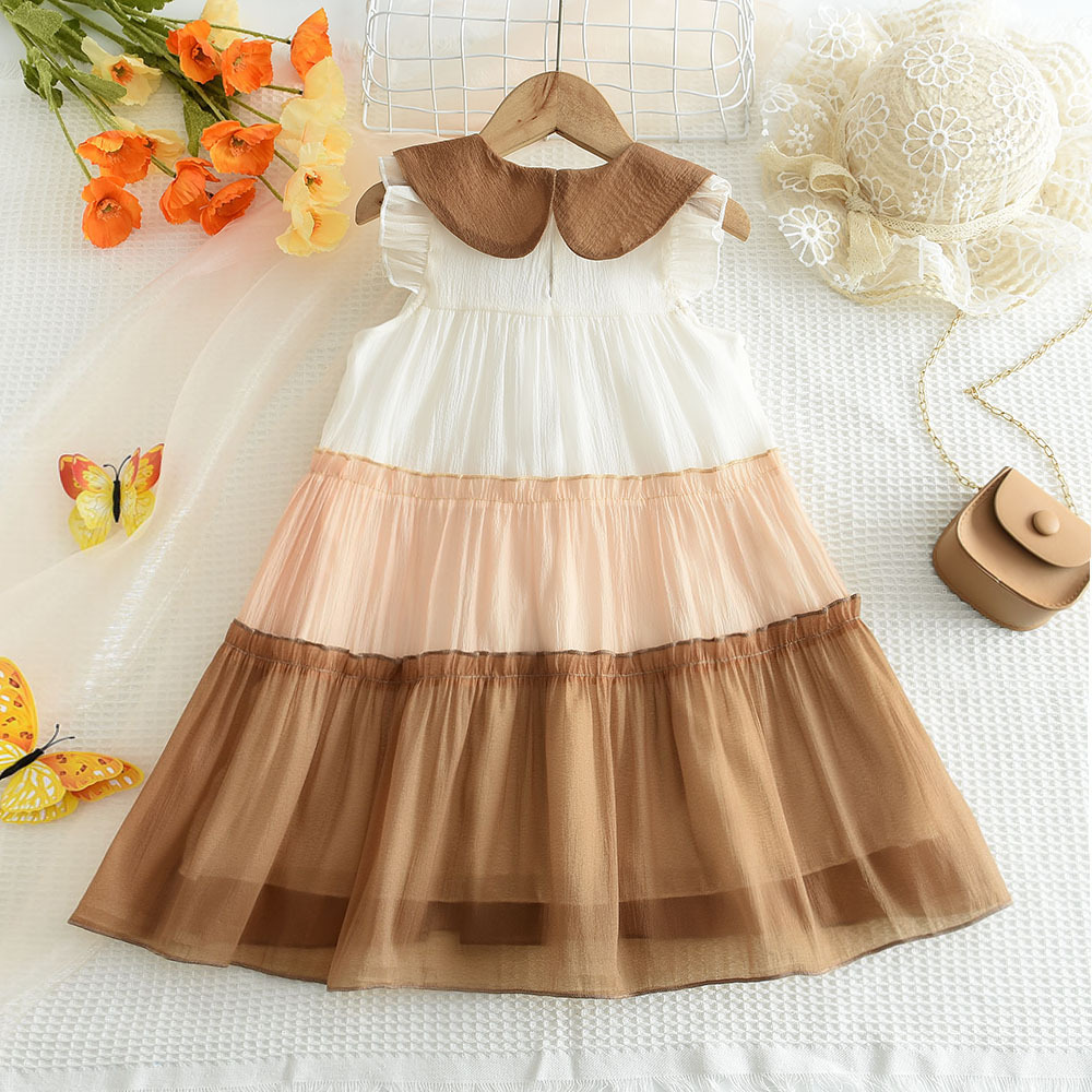 국경을 넘는 신상 여아 원피스 여름용 인형 칼라 배색 메쉬 귀여운 민소매 캐주얼 케이크 원피스