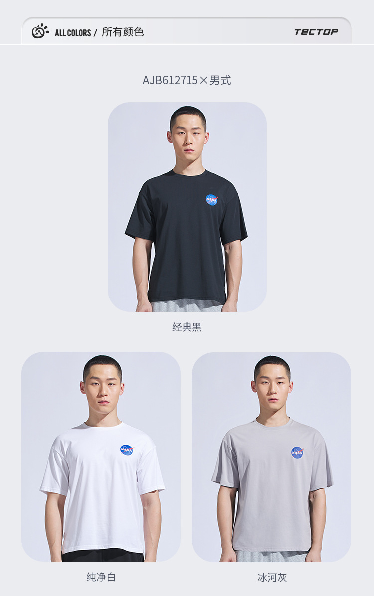 2024 봄과 여름 새로운 야외 남성면 반팔 티셔츠 NASA 공동 이름 편안한 통기성 스포츠 반팔 남성스토어 가기