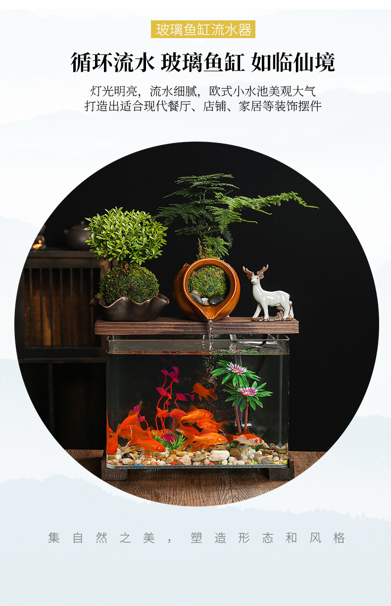 Yut 물고기 탱크 거실 물 장식 순환 물 바퀴 2024 새로운 TV 내각 장식 복도 집스토어 가기