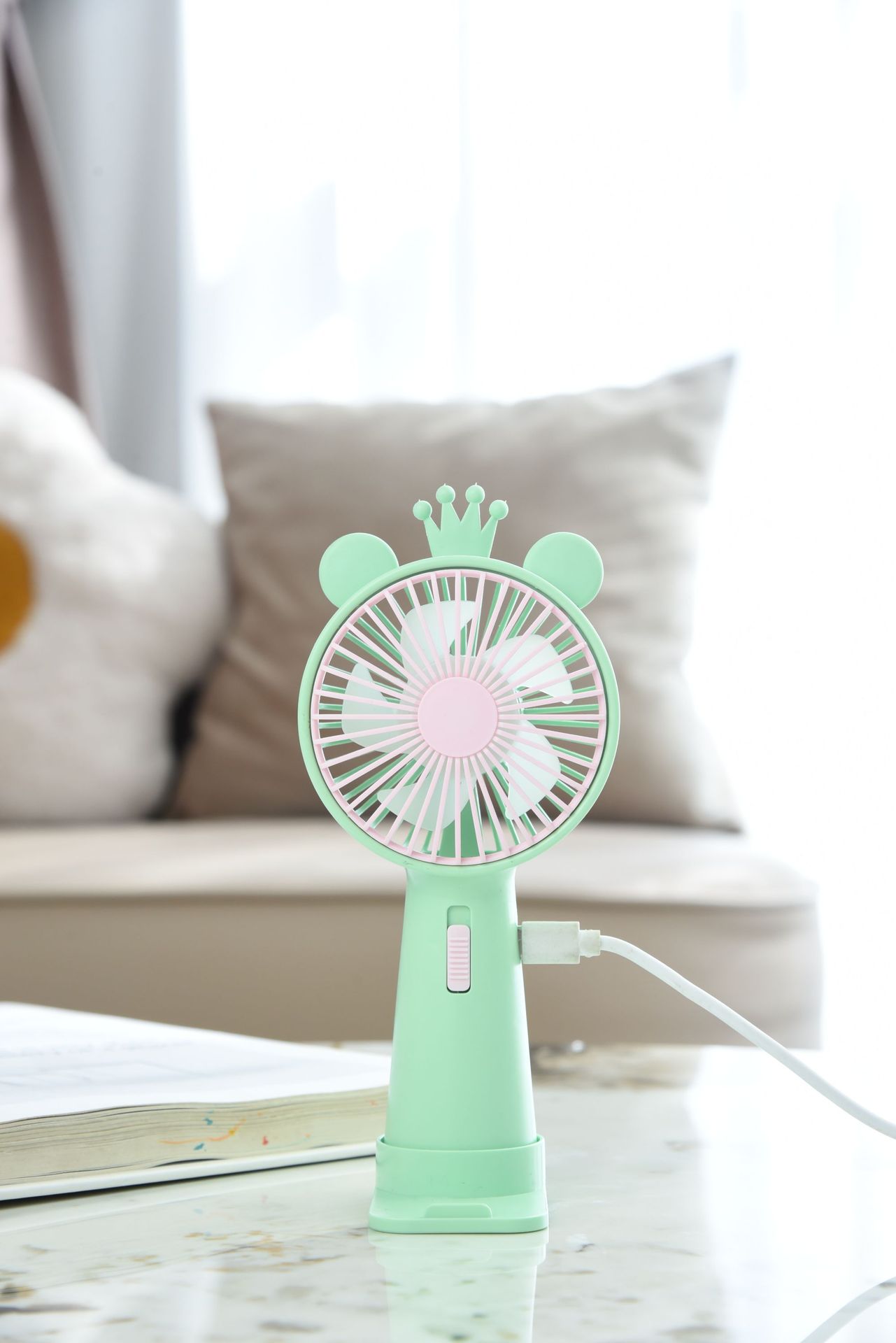 선물 휴대용 USB 충전 휴대 전화 홀더 만화 간단한 휴대용 작은 전기 팬 헤어 드라이어 제조 업체스토어 가기