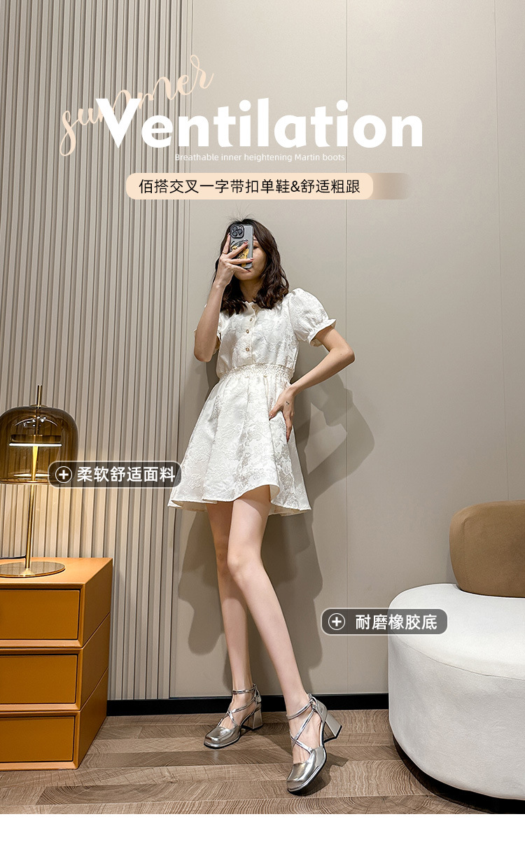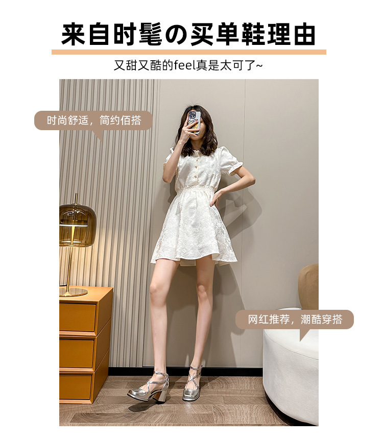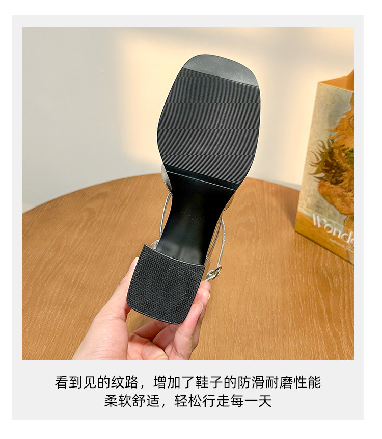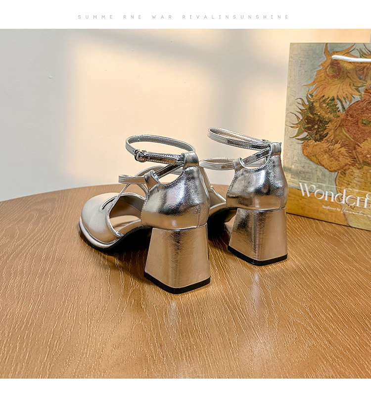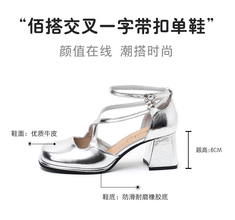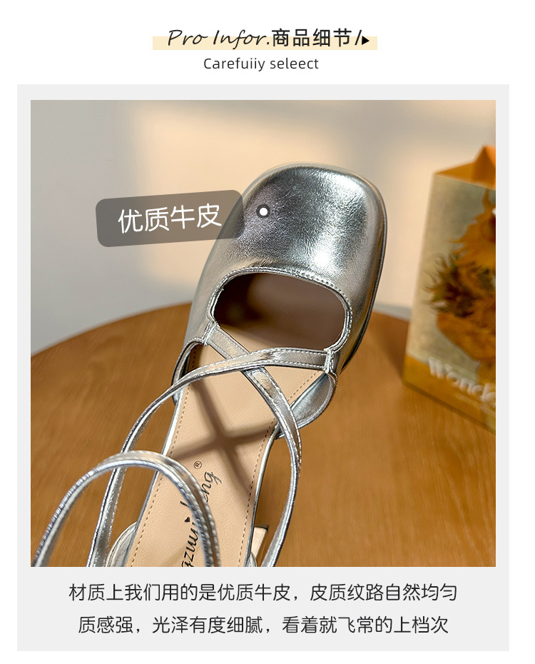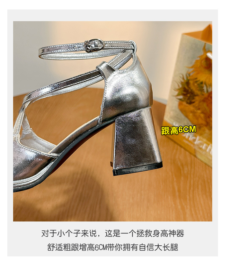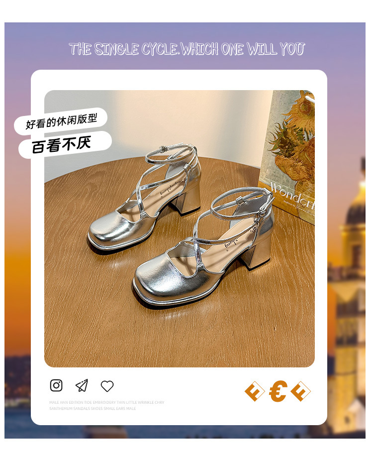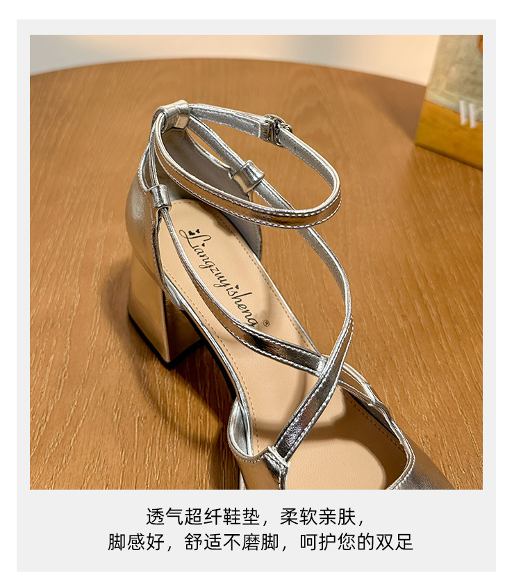 크로스 청키 힐 샌들 닫힌 발가락 여성 2024 봄 새로운 얕은 입 여름 스트랩 하이힐 싱글 레이어 신발 왕실 자매 원피스스토어 가기