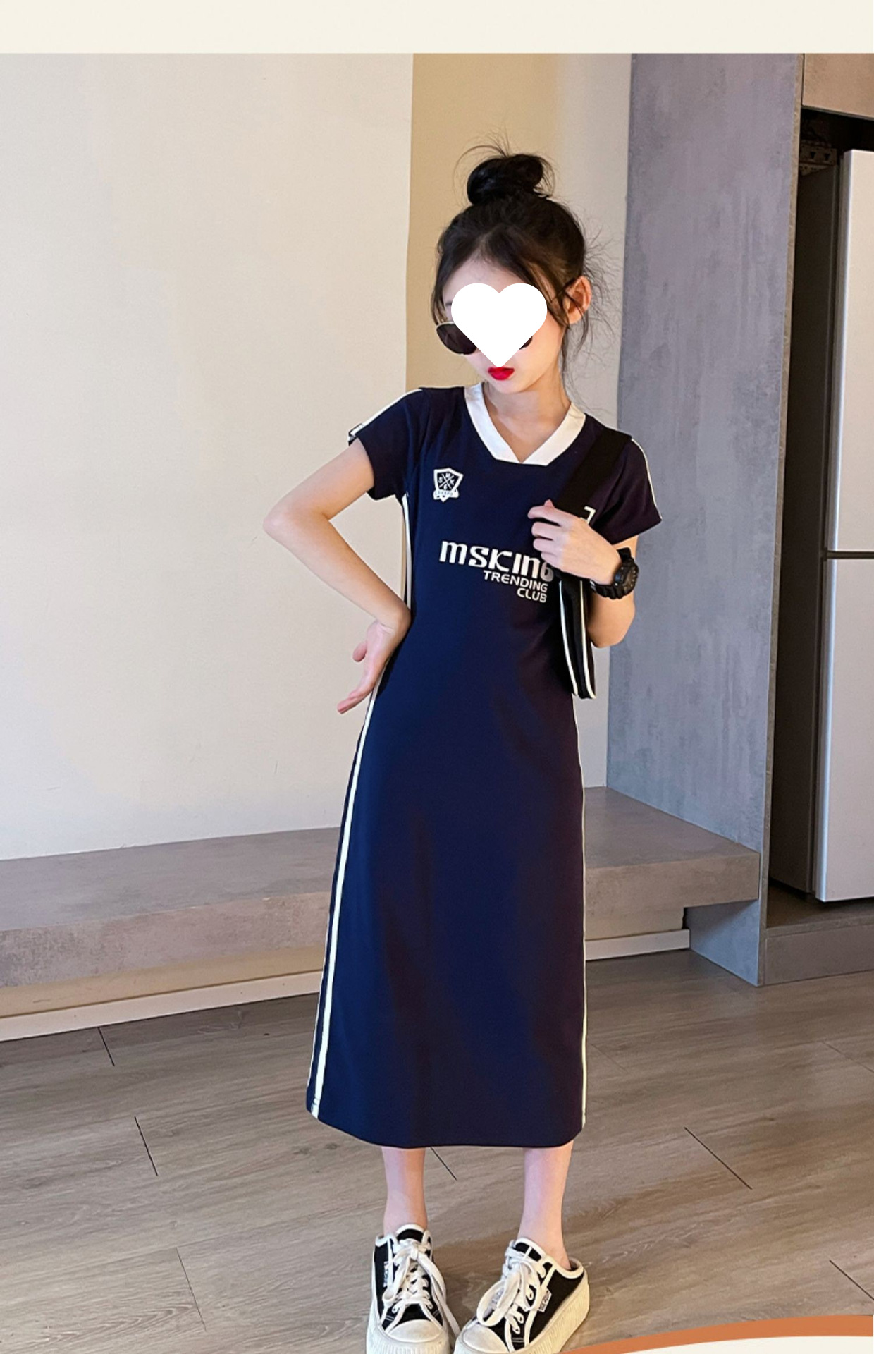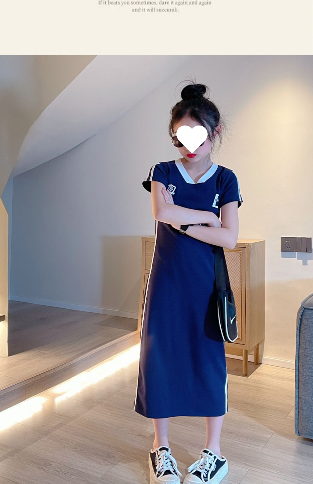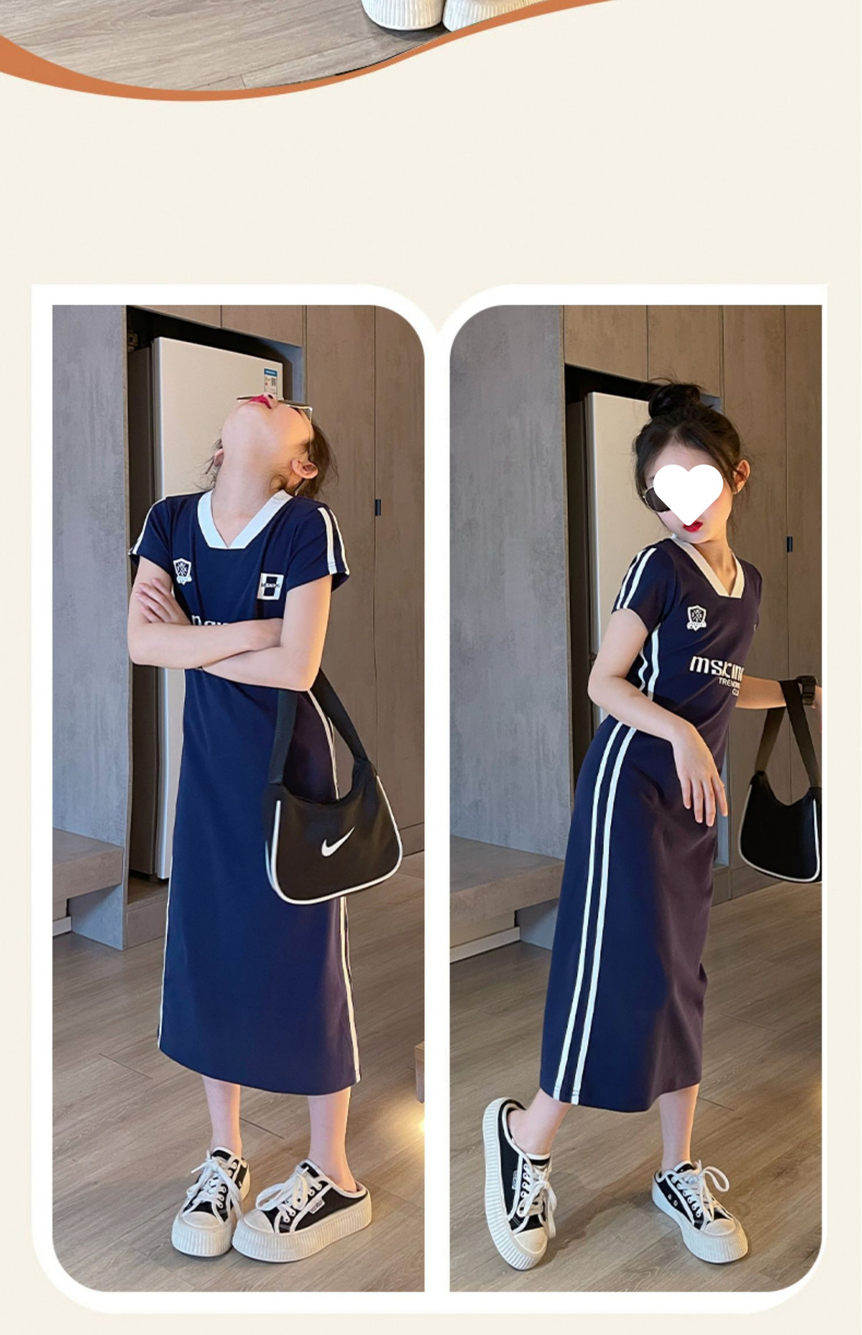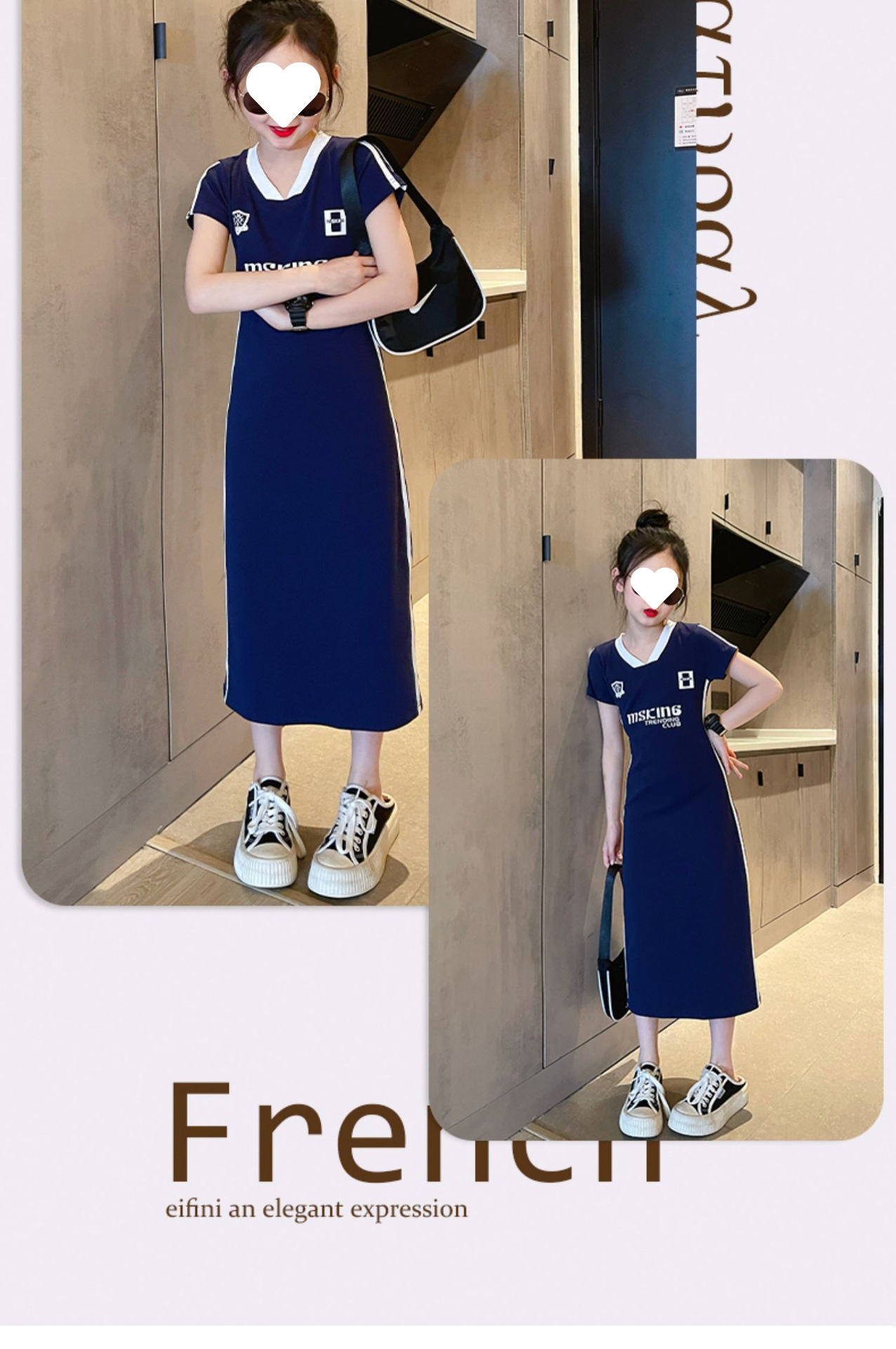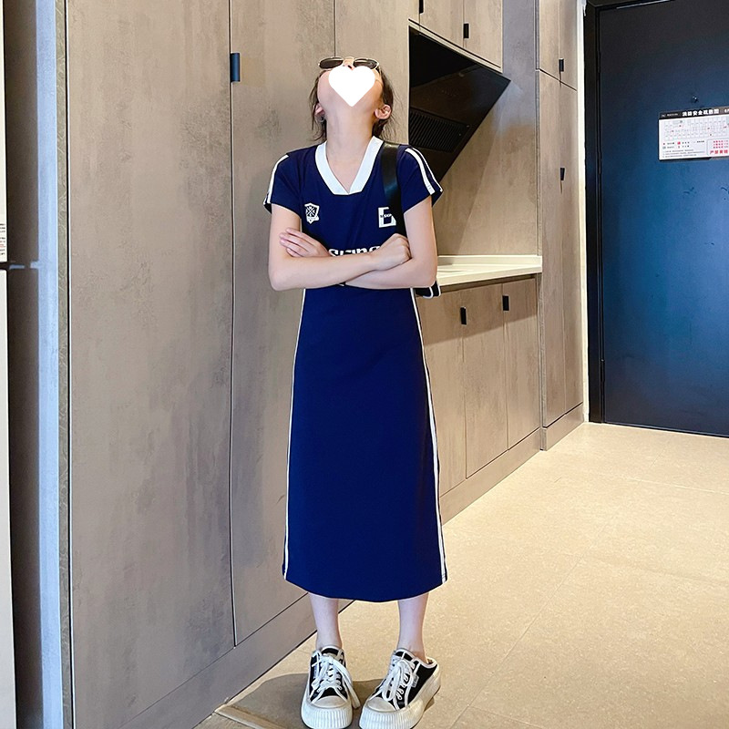 소녀 여름 타이트 원피스 긴 원피스 2024 새로운 어린이 유행 서양식 중장 티셔츠 원피스 컬러 매칭 원피스스토어 가기
