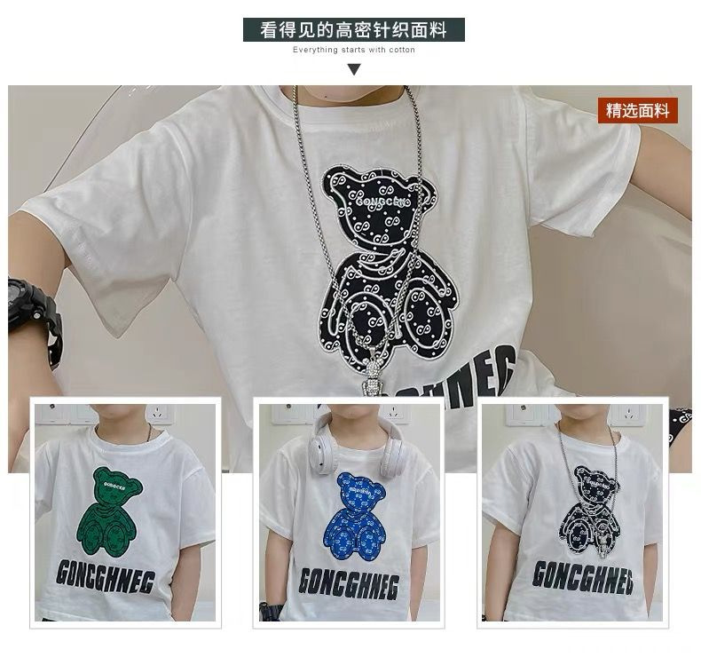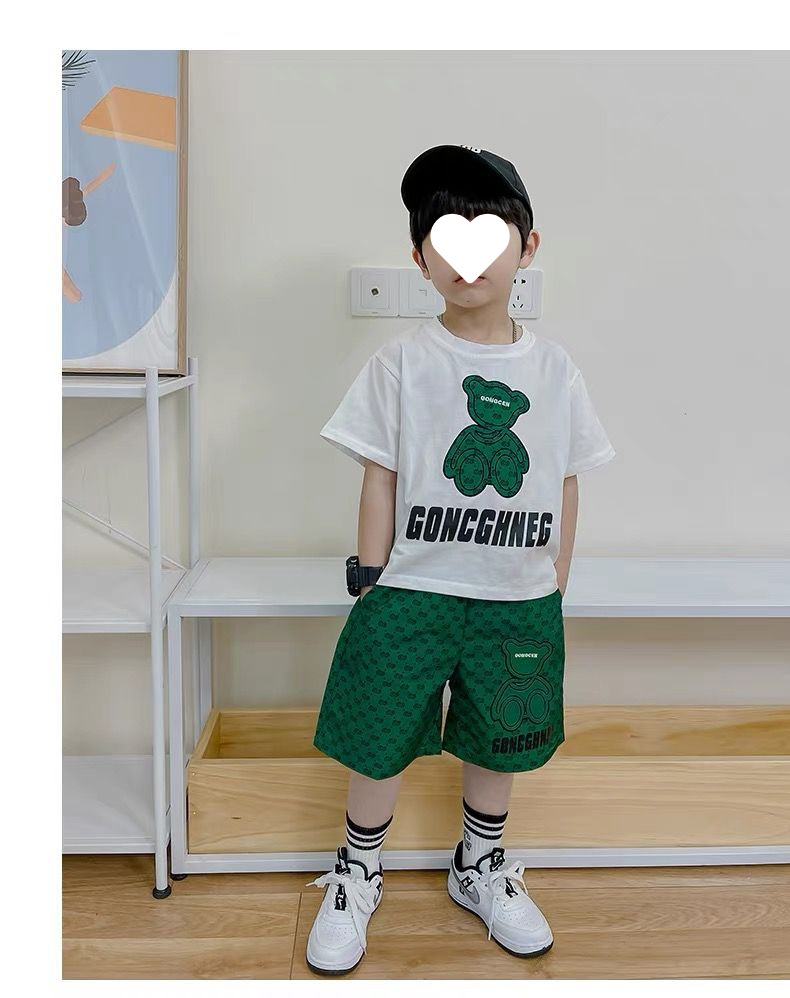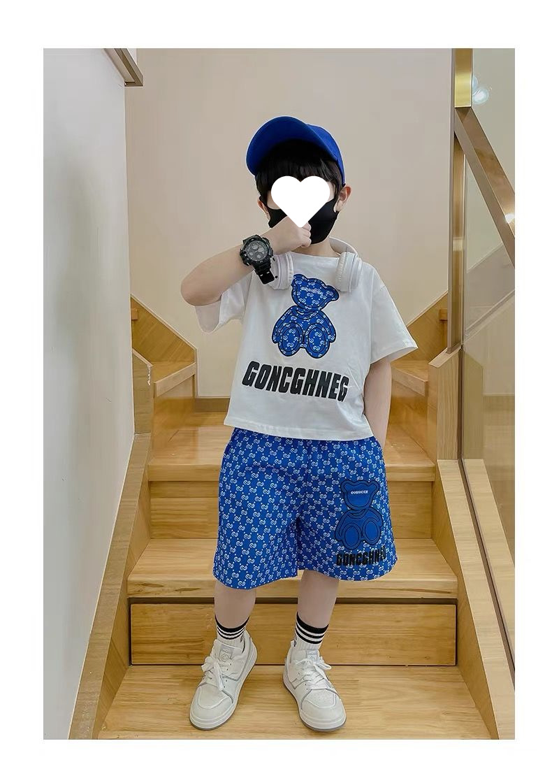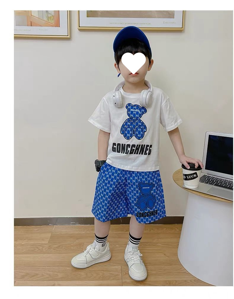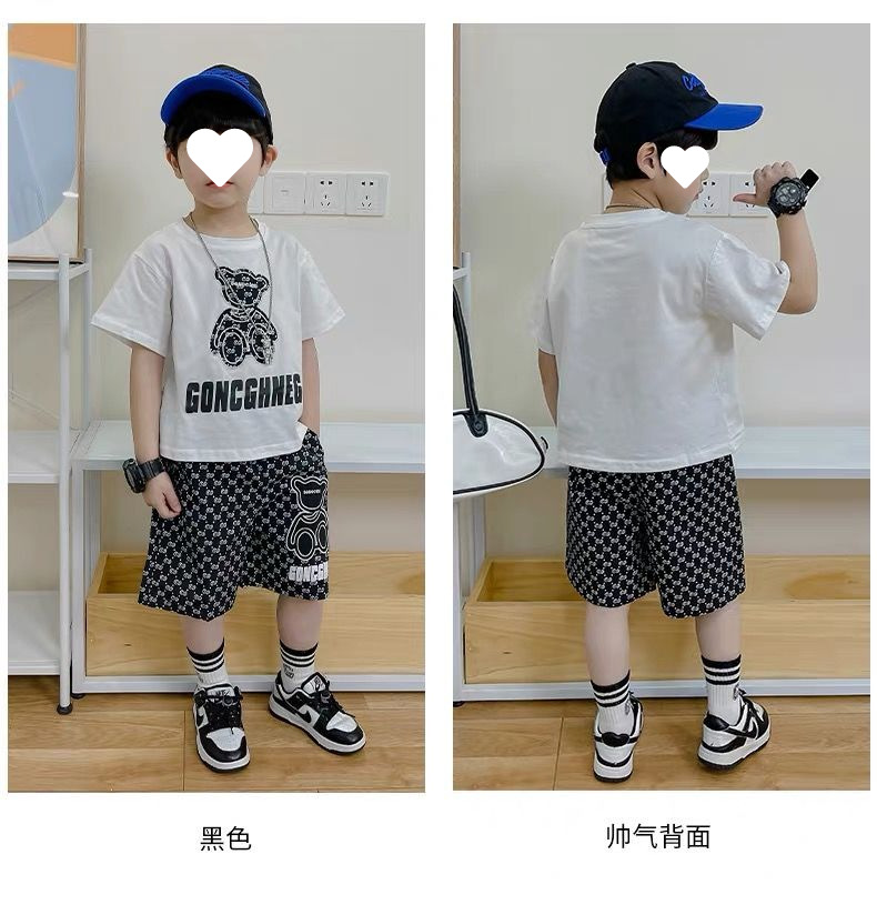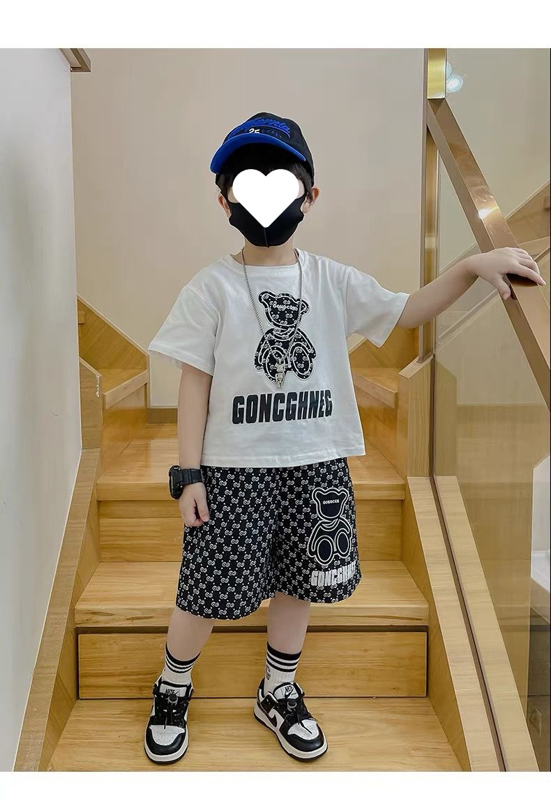 소년 여름 Prellis 바지 세트 2024 새로운 도착 빅 키즈 잘 생긴 만화 티셔츠 5 피스 트렌디 바지 2 피스 세트스토어 가기