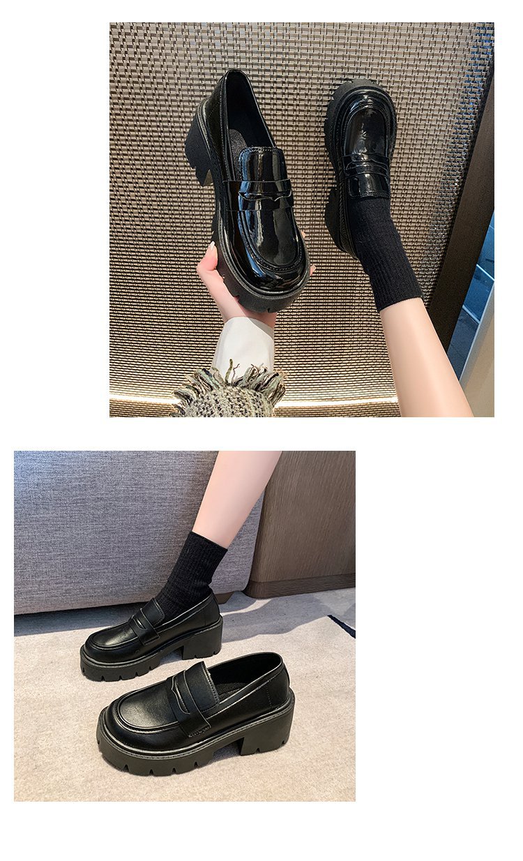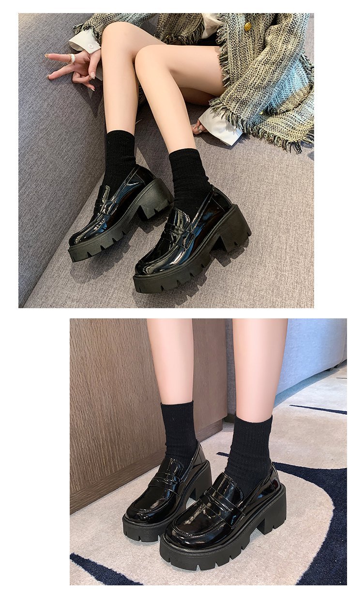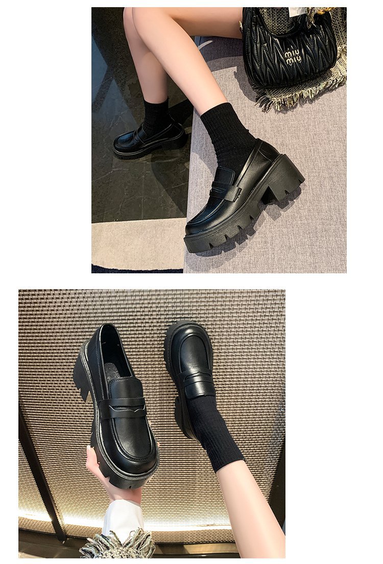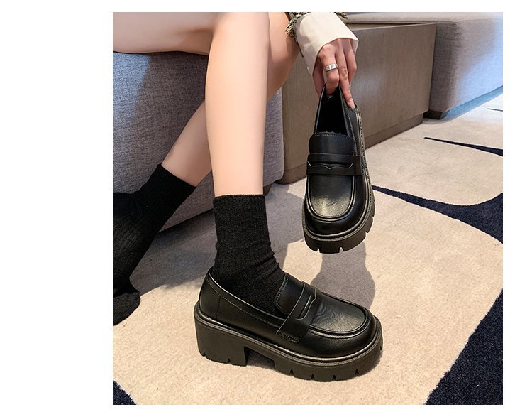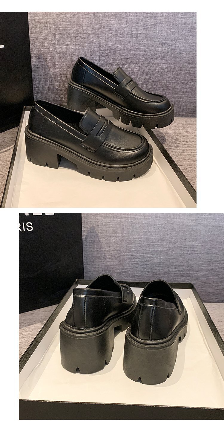 한국 소가죽 여성화 2025 봄 가을 신작 틈새 다용도 라운드 투 원스텝 두꺼운 굽 로퍼스토어 가기