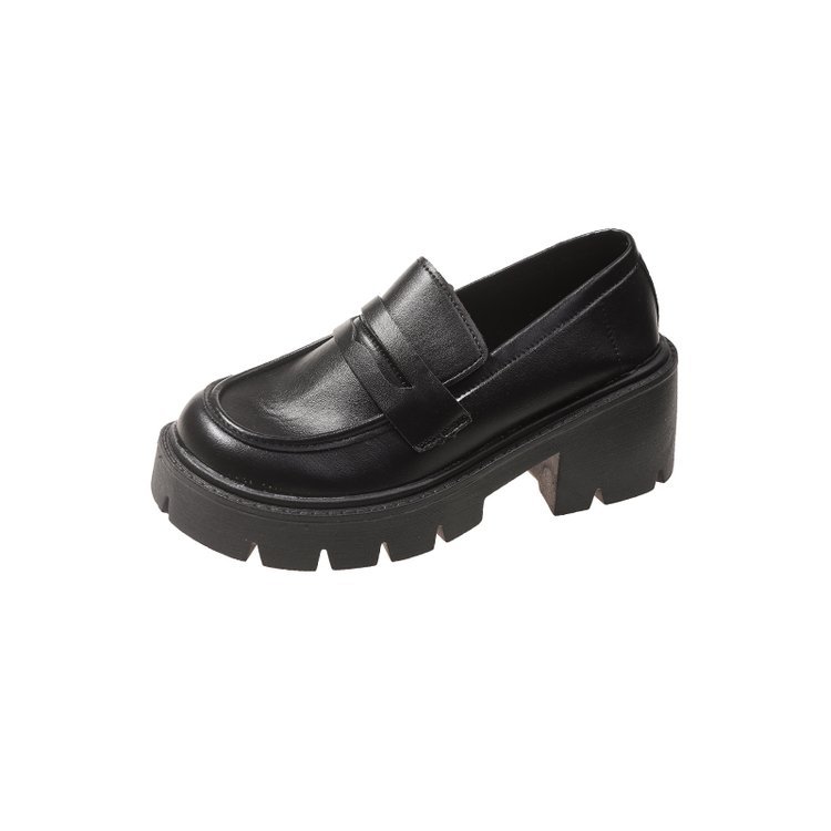 한국 소가죽 여성화 2025 봄 가을 신작 틈새 다용도 라운드 투 원스텝 두꺼운 굽 로퍼