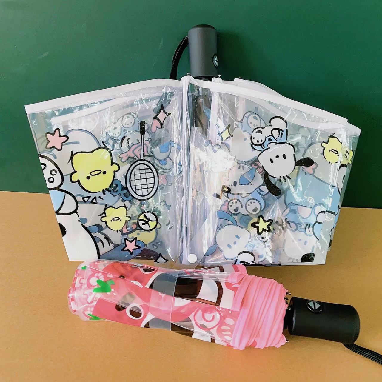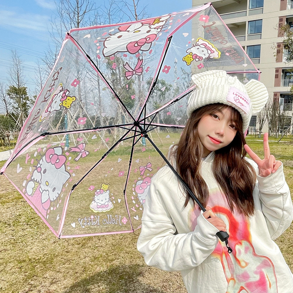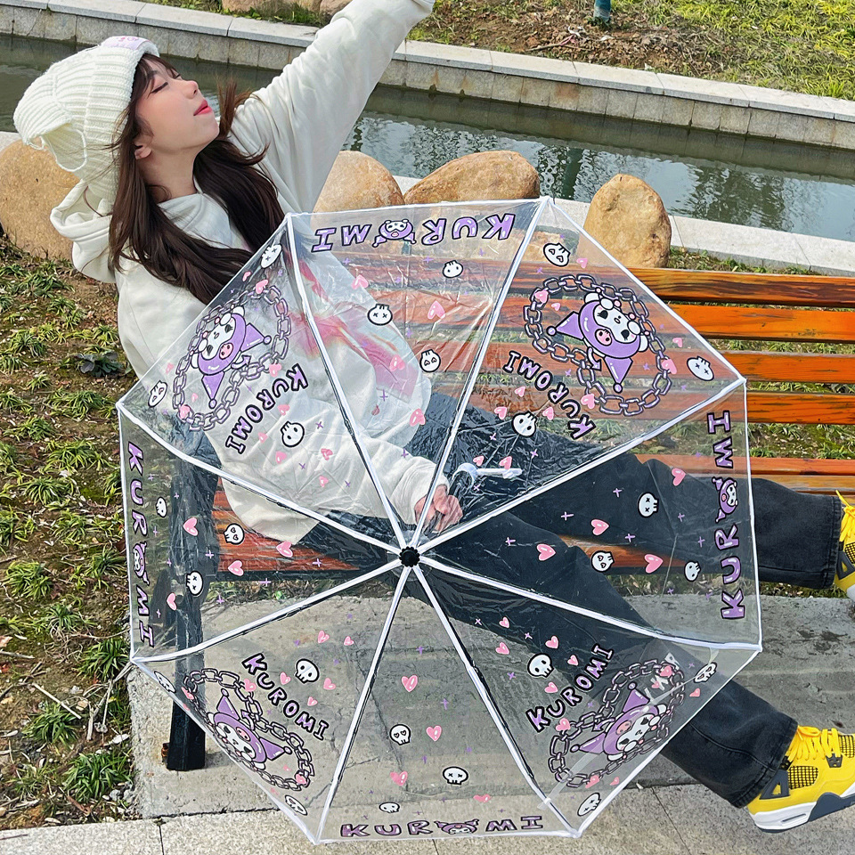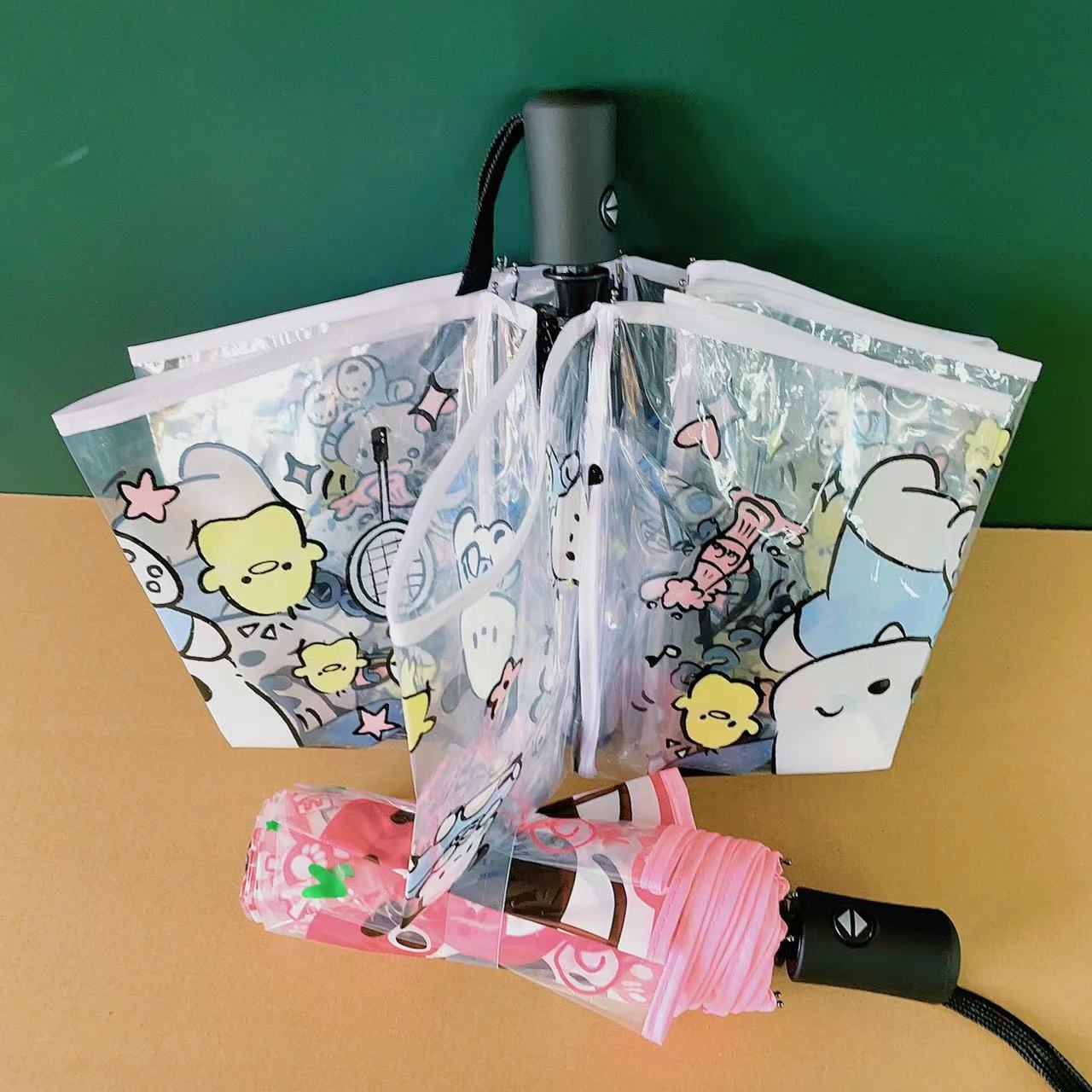 창조적 인 흰색 손잡이 Ins Kulomi 투명 우산 3 배 우산 소녀와 학생을위한 자동 귀여운 접는 어린이 우산스토어 가기