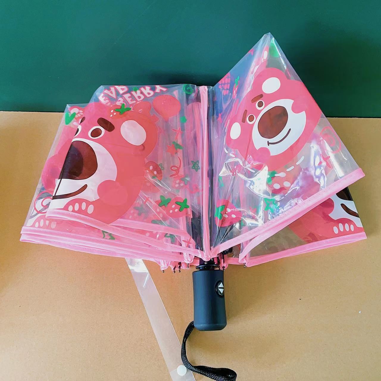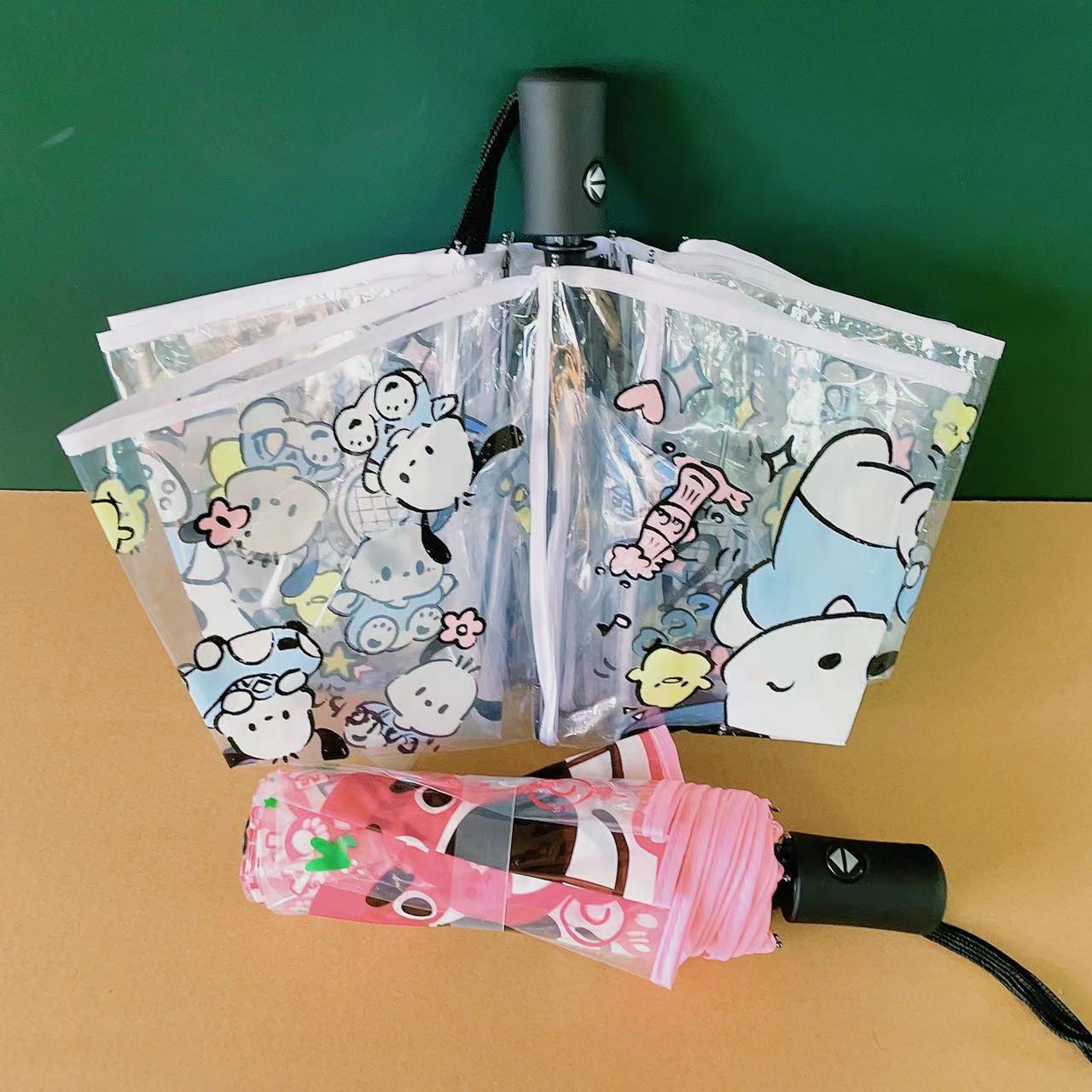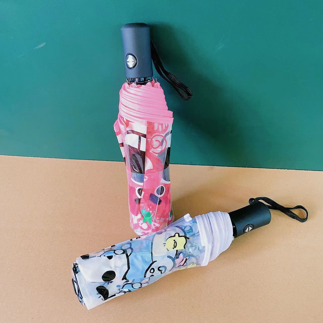 창조적 인 흰색 손잡이 Ins Kulomi 투명 우산 3 배 우산 소녀와 학생을위한 자동 귀여운 접는 어린이 우산스토어 가기