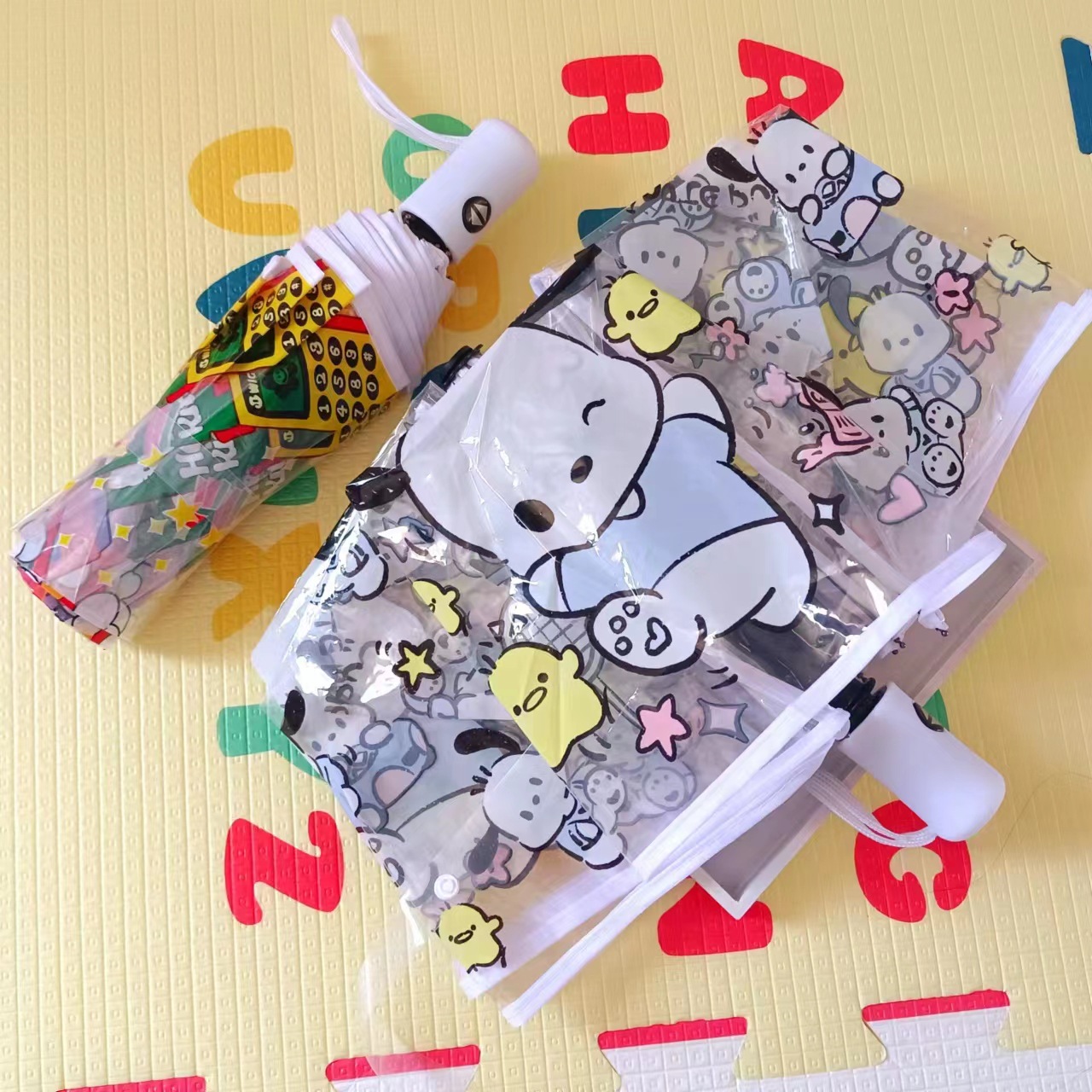 창조적 인 흰색 손잡이 Ins Kulomi 투명 우산 3 배 우산 소녀와 학생을위한 자동 귀여운 접는 어린이 우산