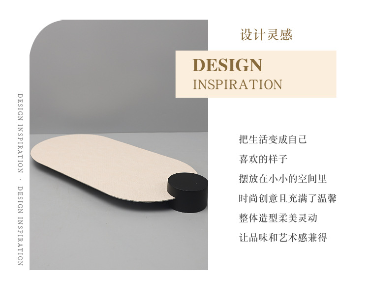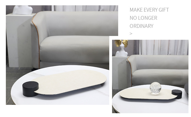현대 간단한 가죽 스테인레스 스틸 타원형 트레이 장식품 거실 입구 침실 호텔 소프트 홈 장식