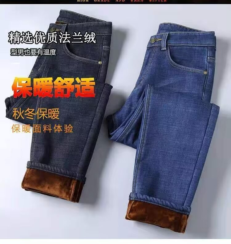 중년 남성을위한 기모 두꺼운 청바지 가을과 겨울 따뜻한 내한성 내마모성 높은 주름 방지 허리 느슨한 편안한 남성용 바지스토어 가기