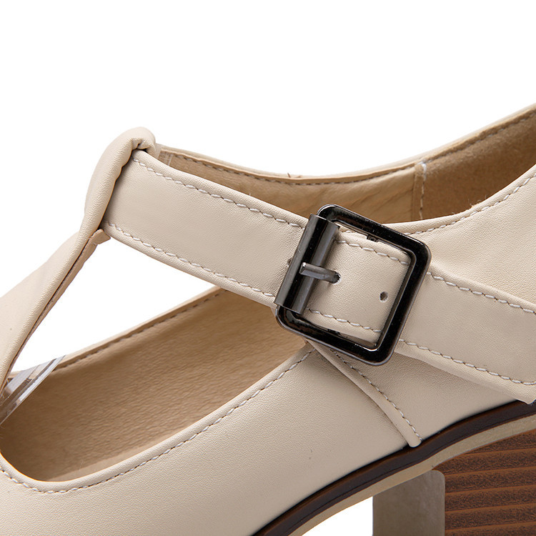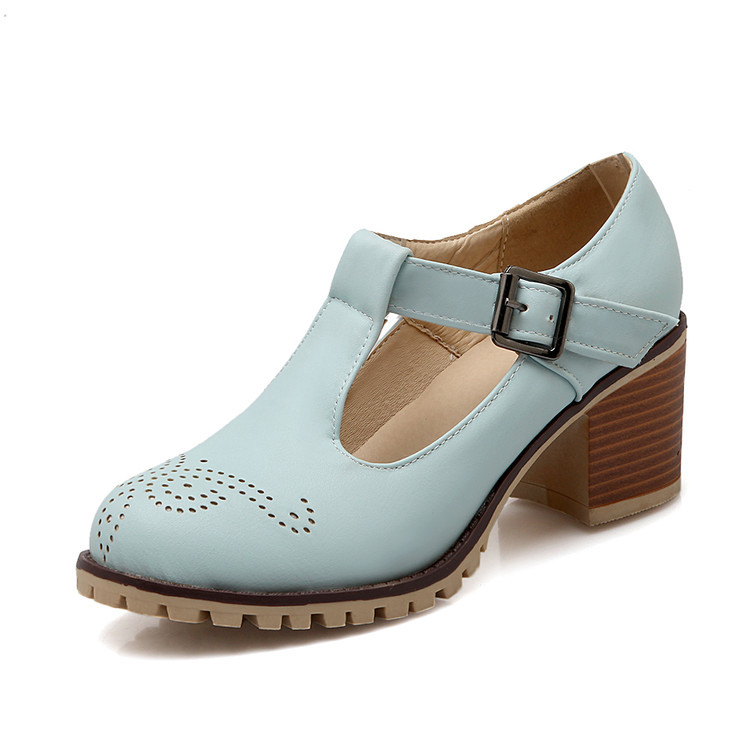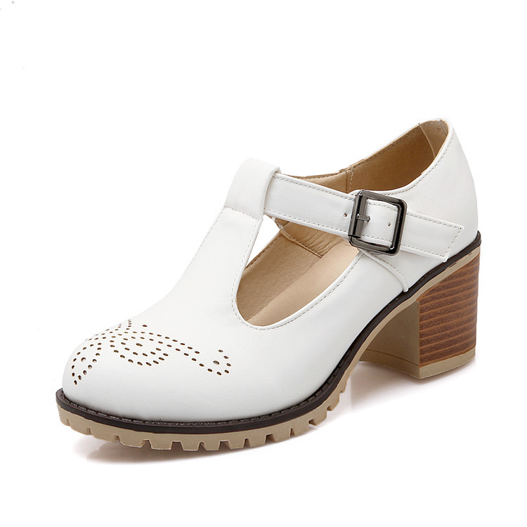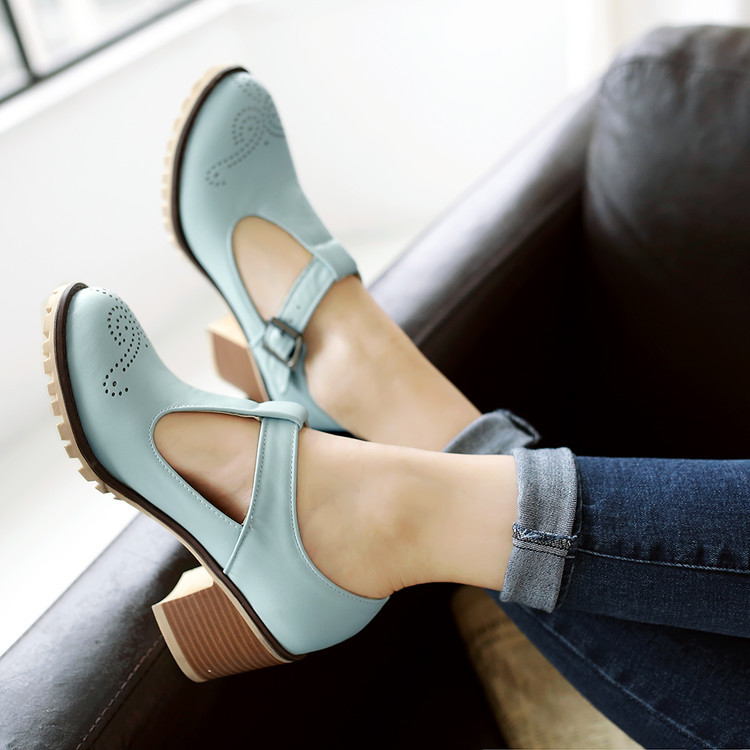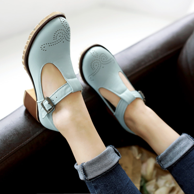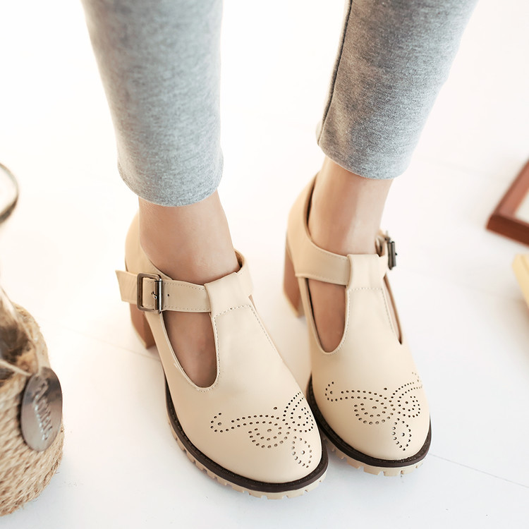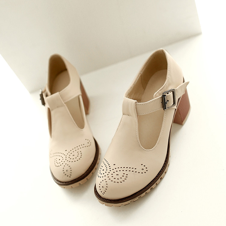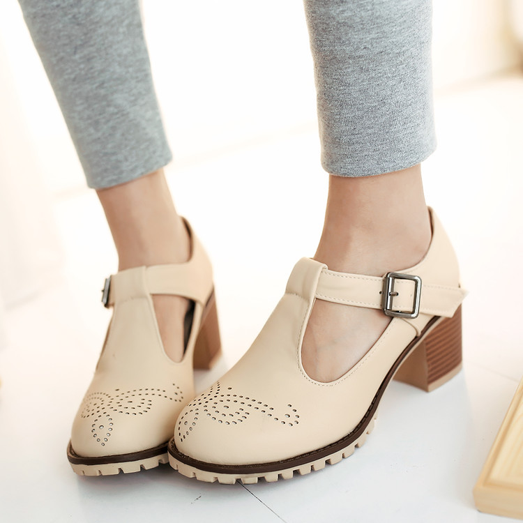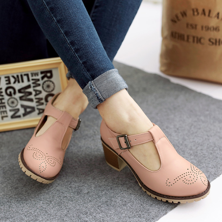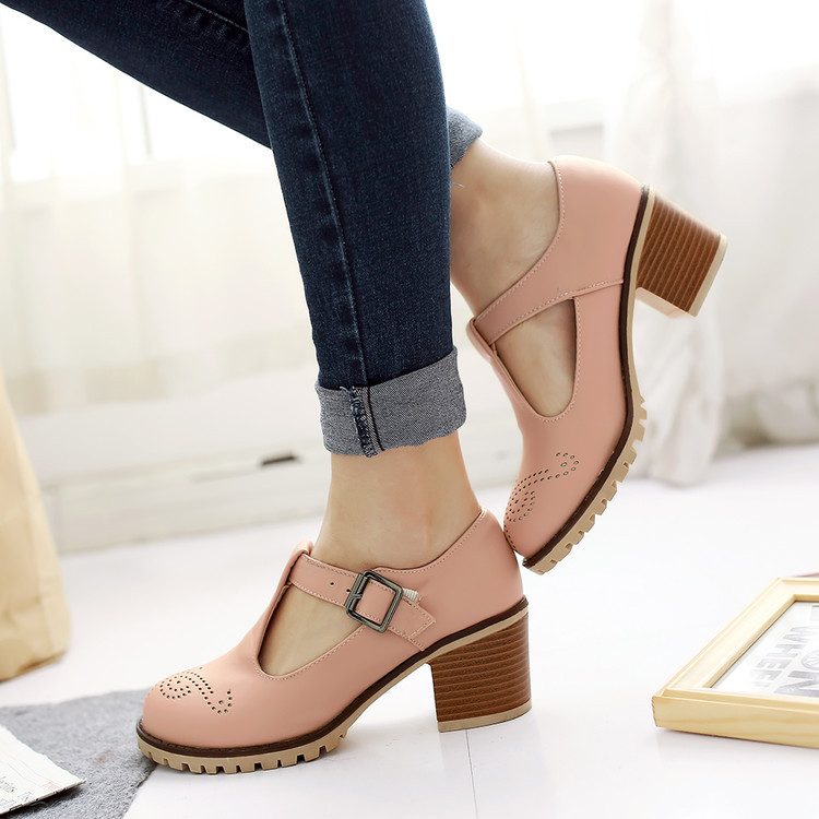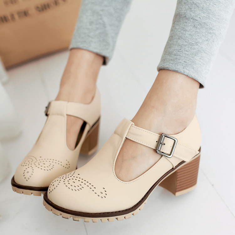 2024 봄과 여름 새로운 메리 제인 여성 신발 솔리드 컬러 아카데미 스타일 할로우 하이힐 얕은 입 한 줄 버클