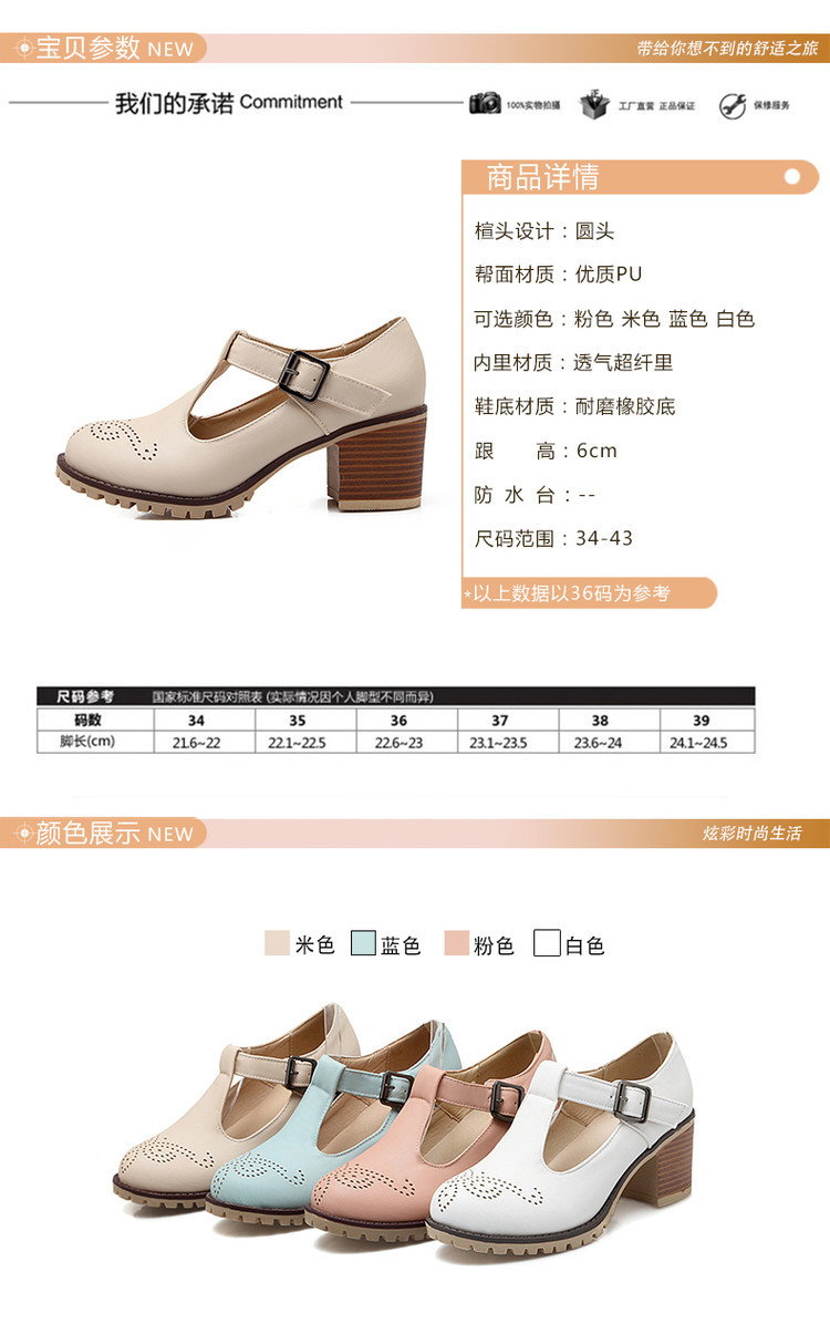 2024 봄과 여름 새로운 메리 제인 여성 신발 솔리드 컬러 아카데미 스타일 할로우 하이힐 얕은 입 한 줄 버클스토어 가기