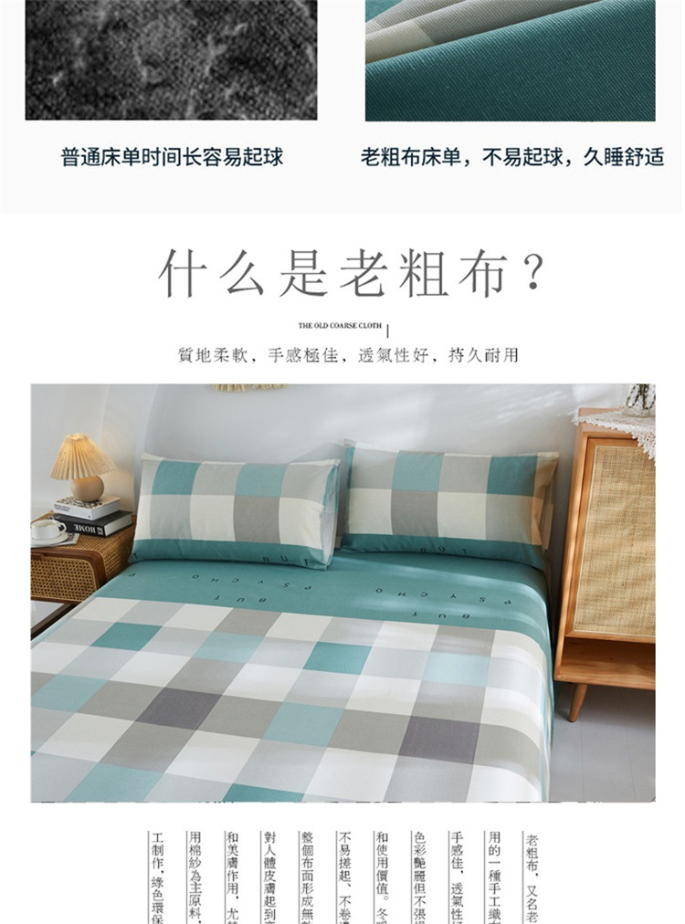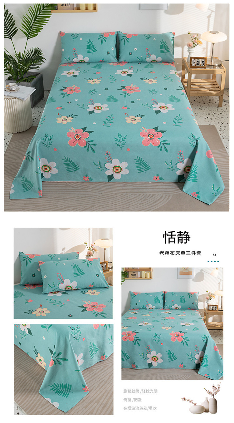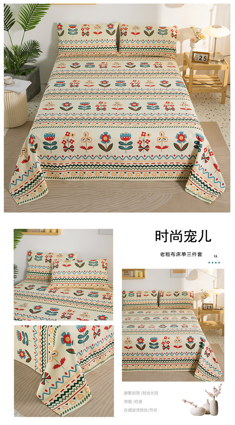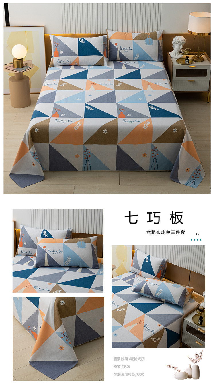 A 등급 두꺼워 진 면화 오래된 굵은 천 침대 시트 베개 3 종 세트 학생 기숙사 집 확대 캉 단일 도매 세대스토어 가기
