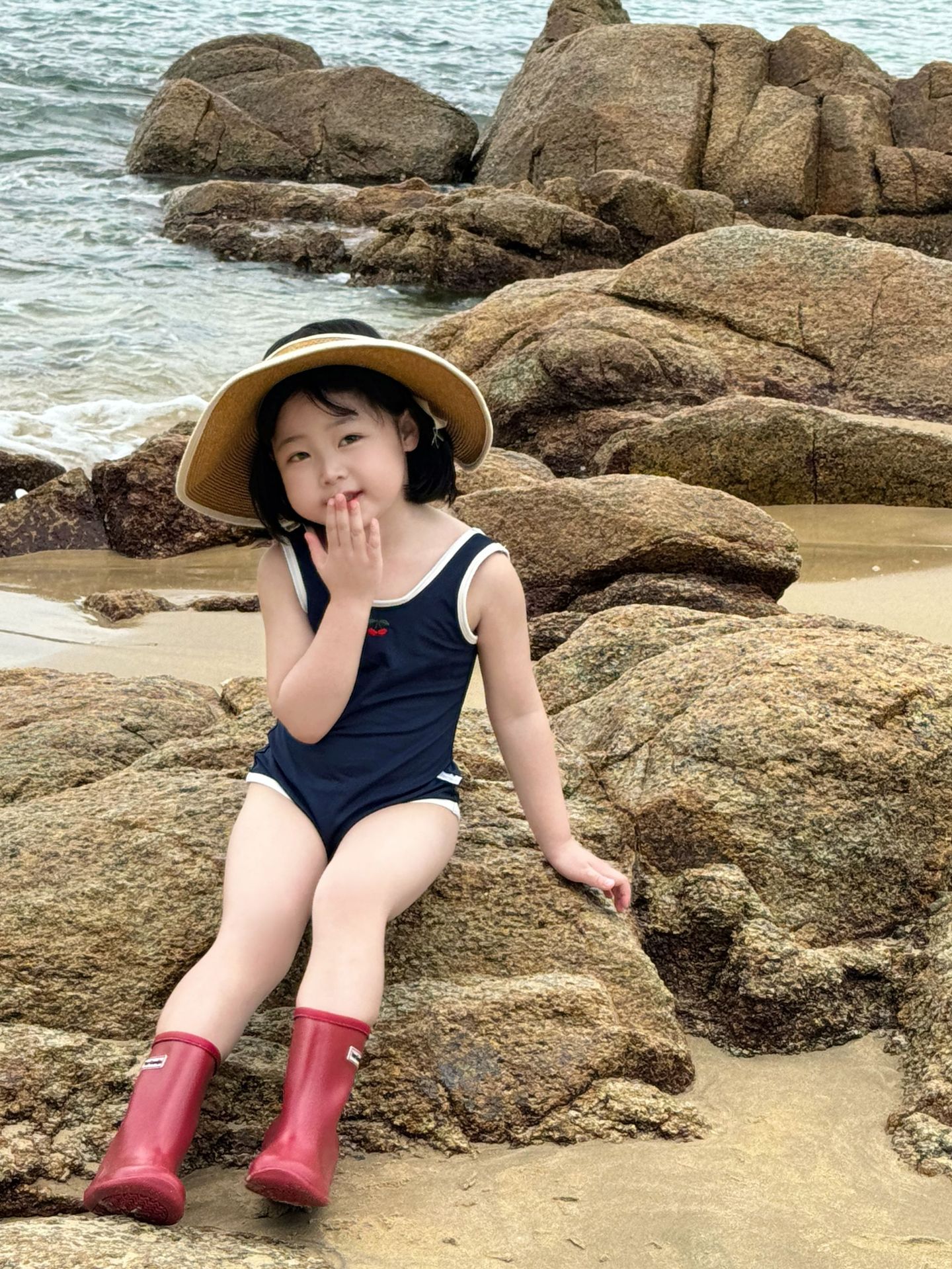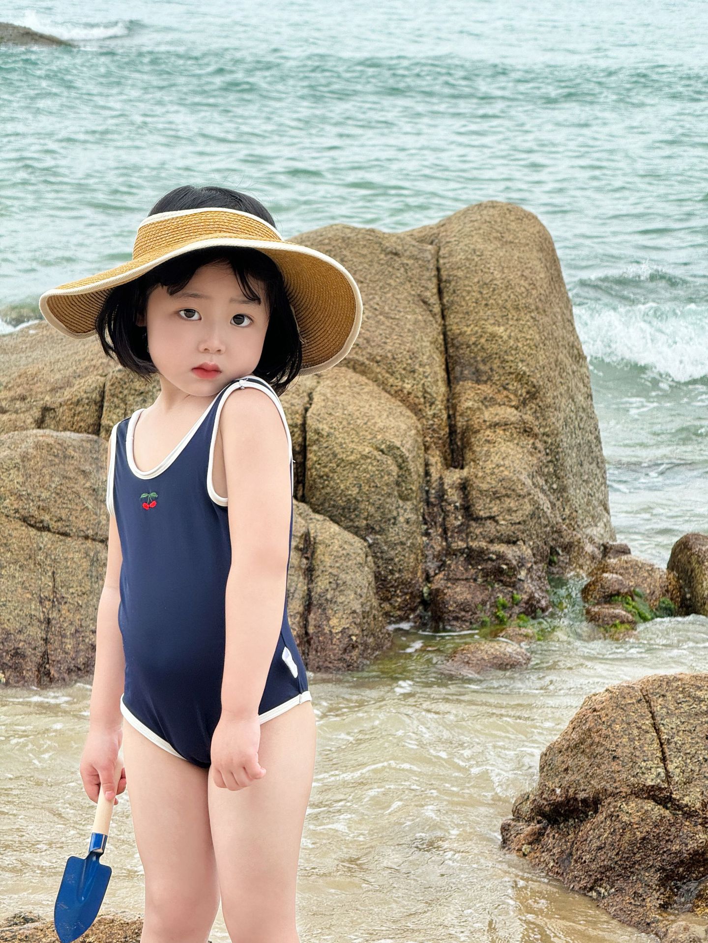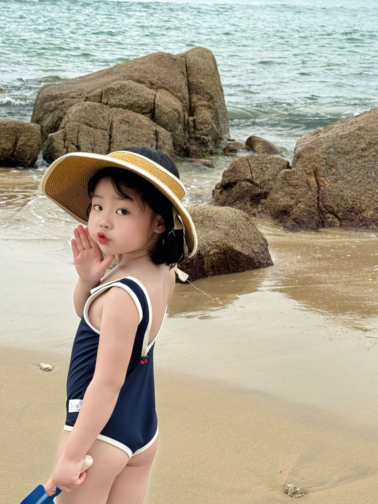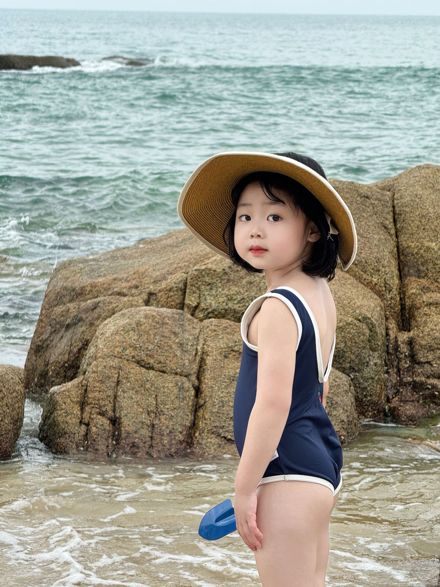 • 파란색 원피스 수영복 + 수영모 (재고 준비되어 있습니다)