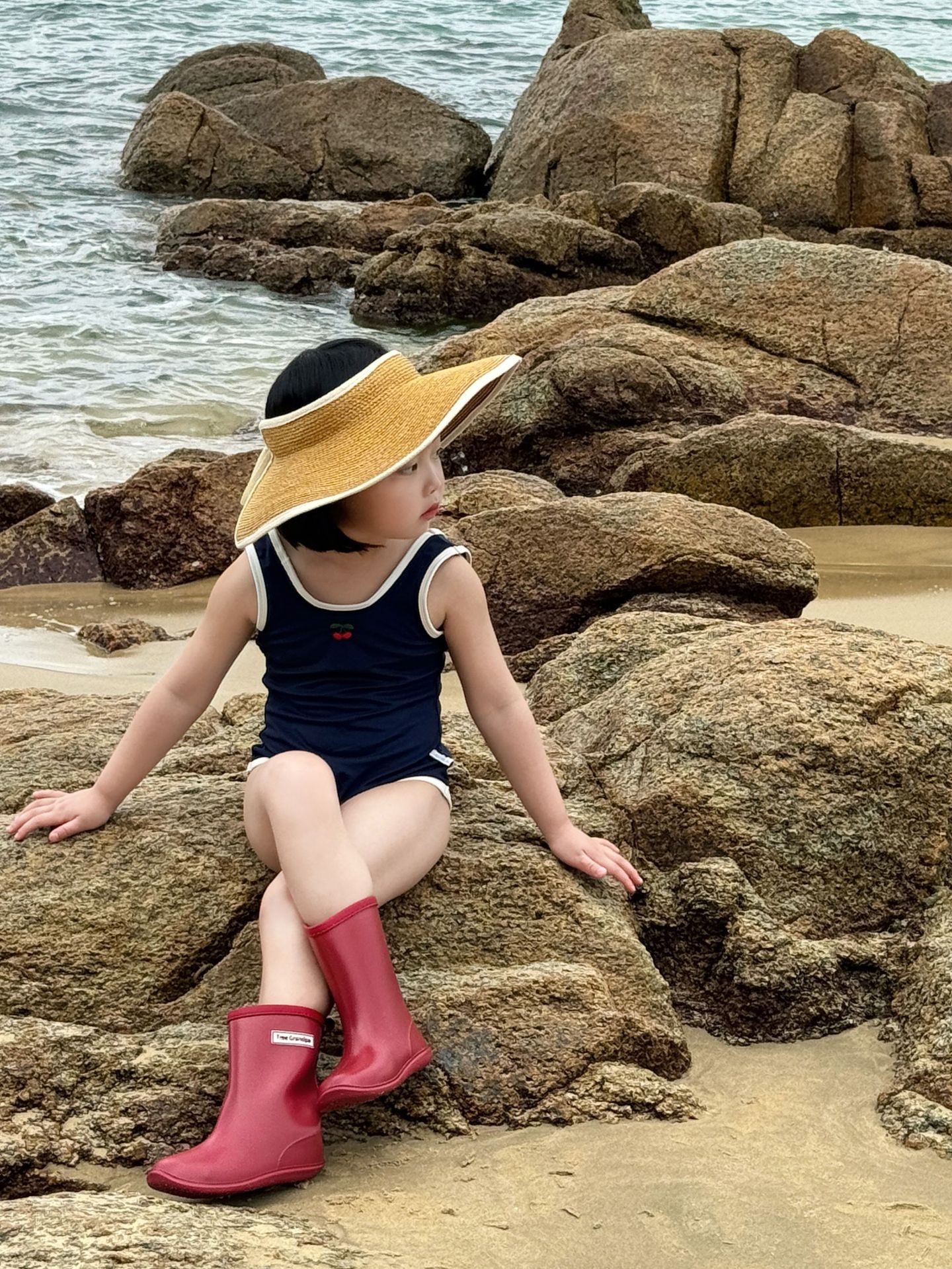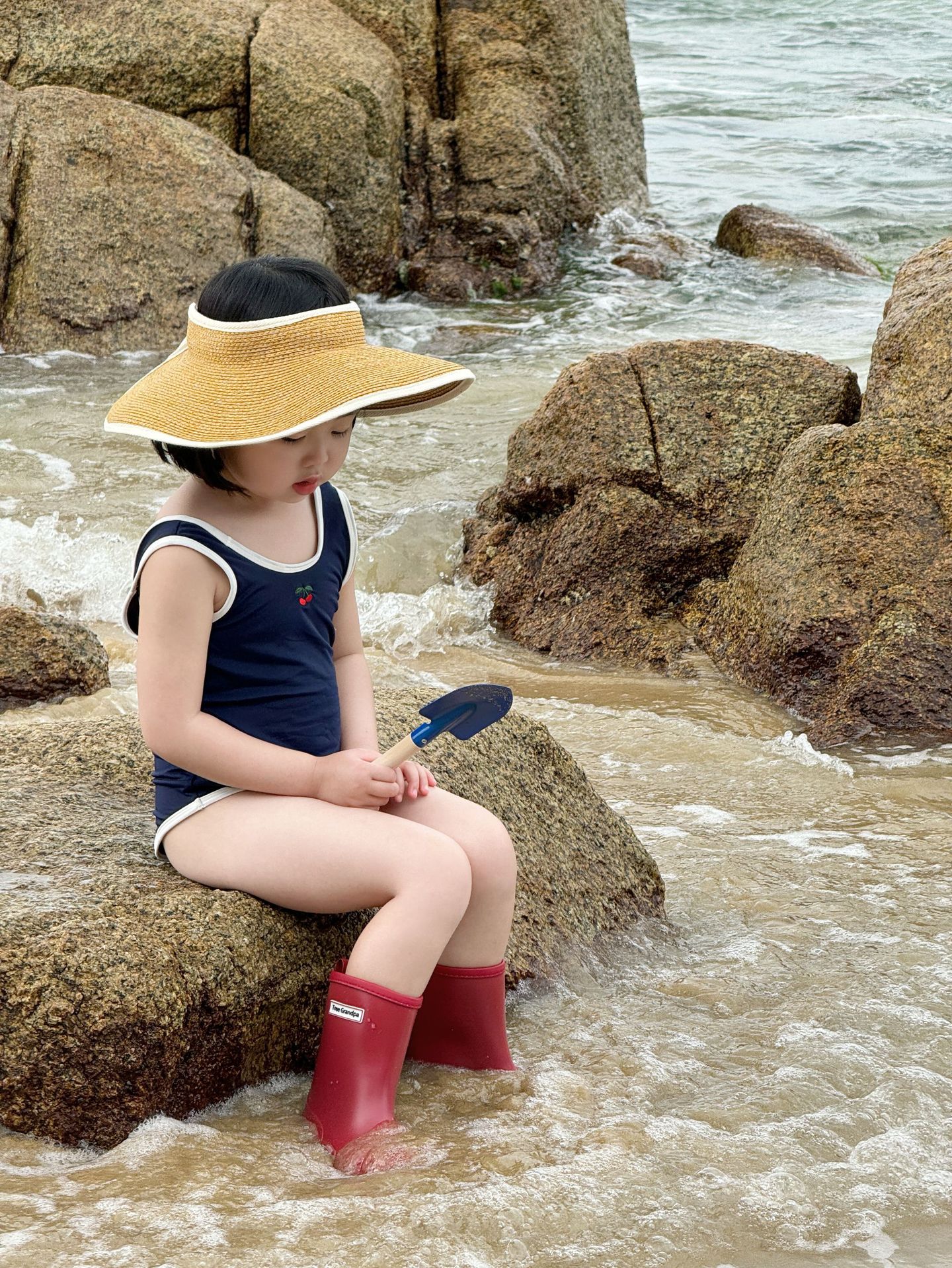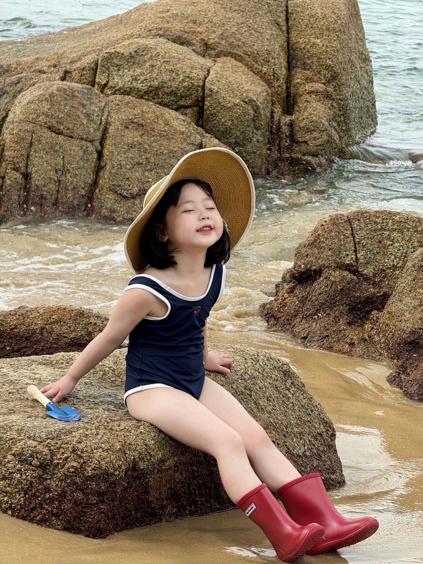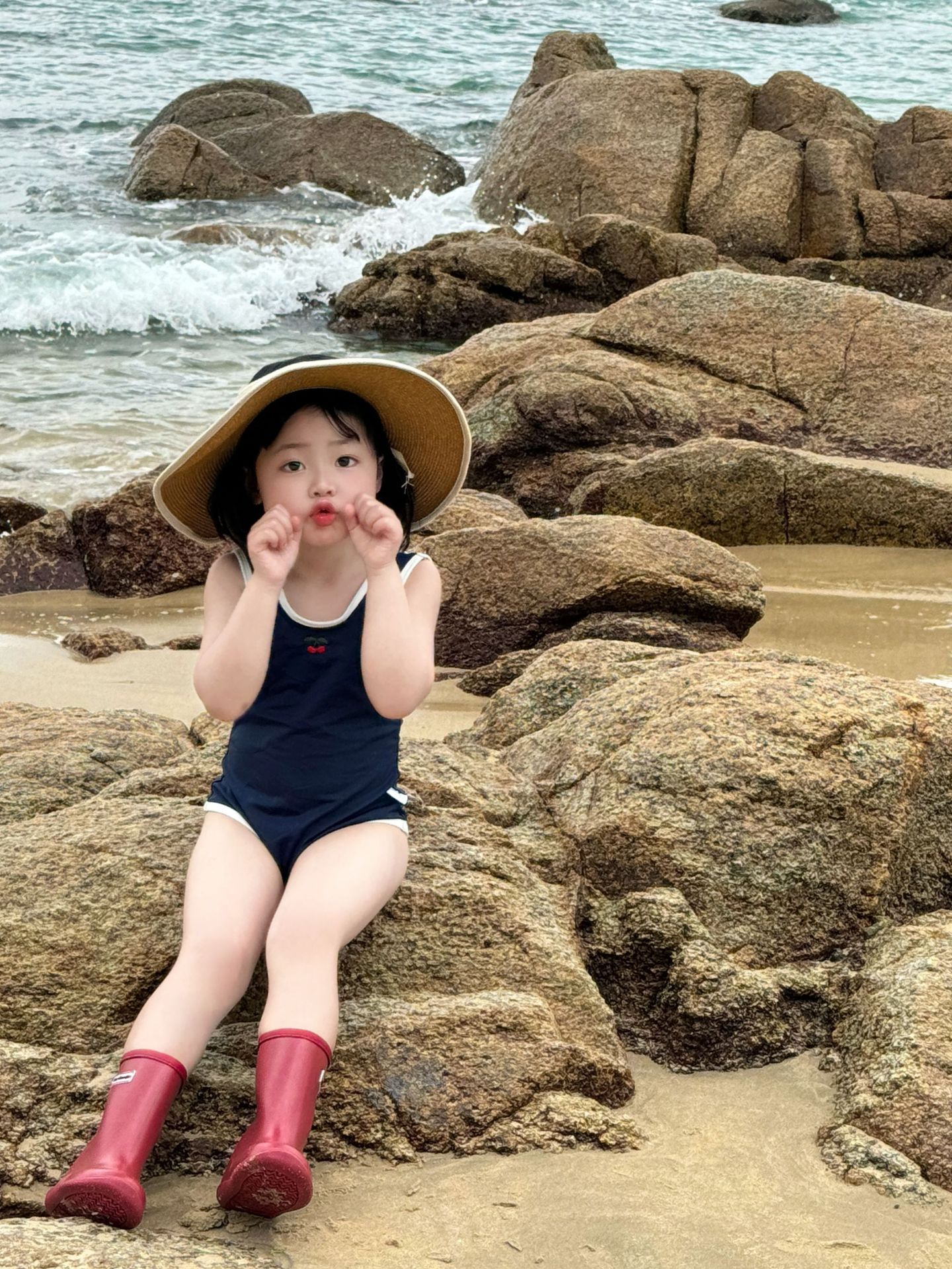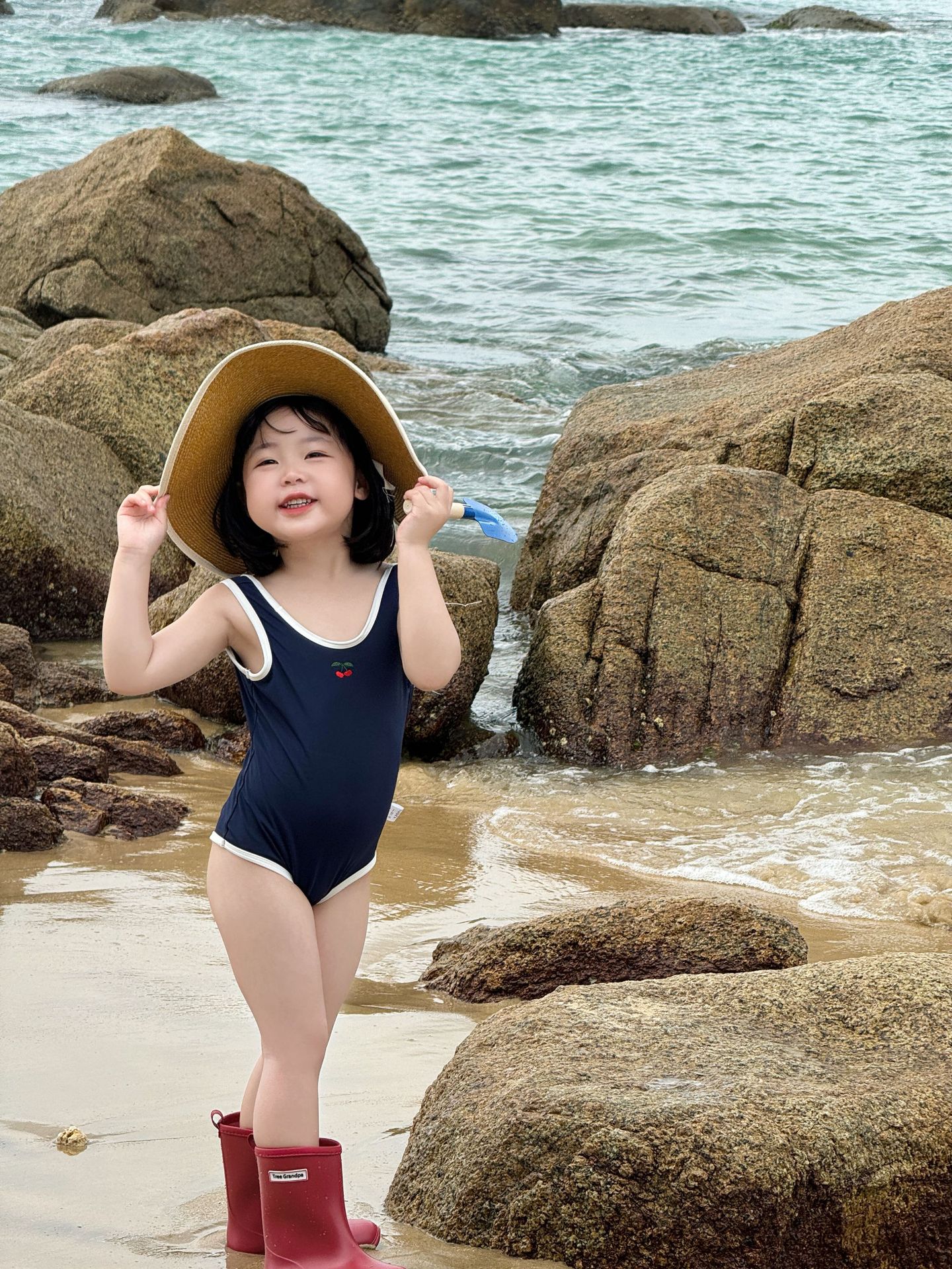 • 파란색 원피스 수영복 + 수영모 (재고 준비되어 있습니다)