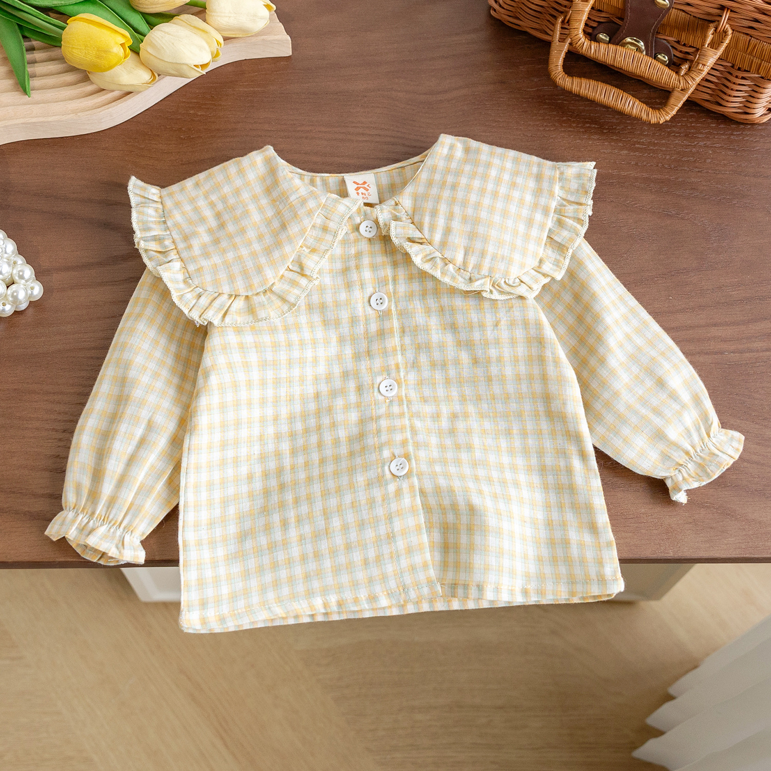 아기 소녀 하이 엔드 자카드 질감 셔츠 여성 아기 봄 의류 2025 새로운 스타일 소녀 달콤한 작은 꽃 셔츠스토어 가기