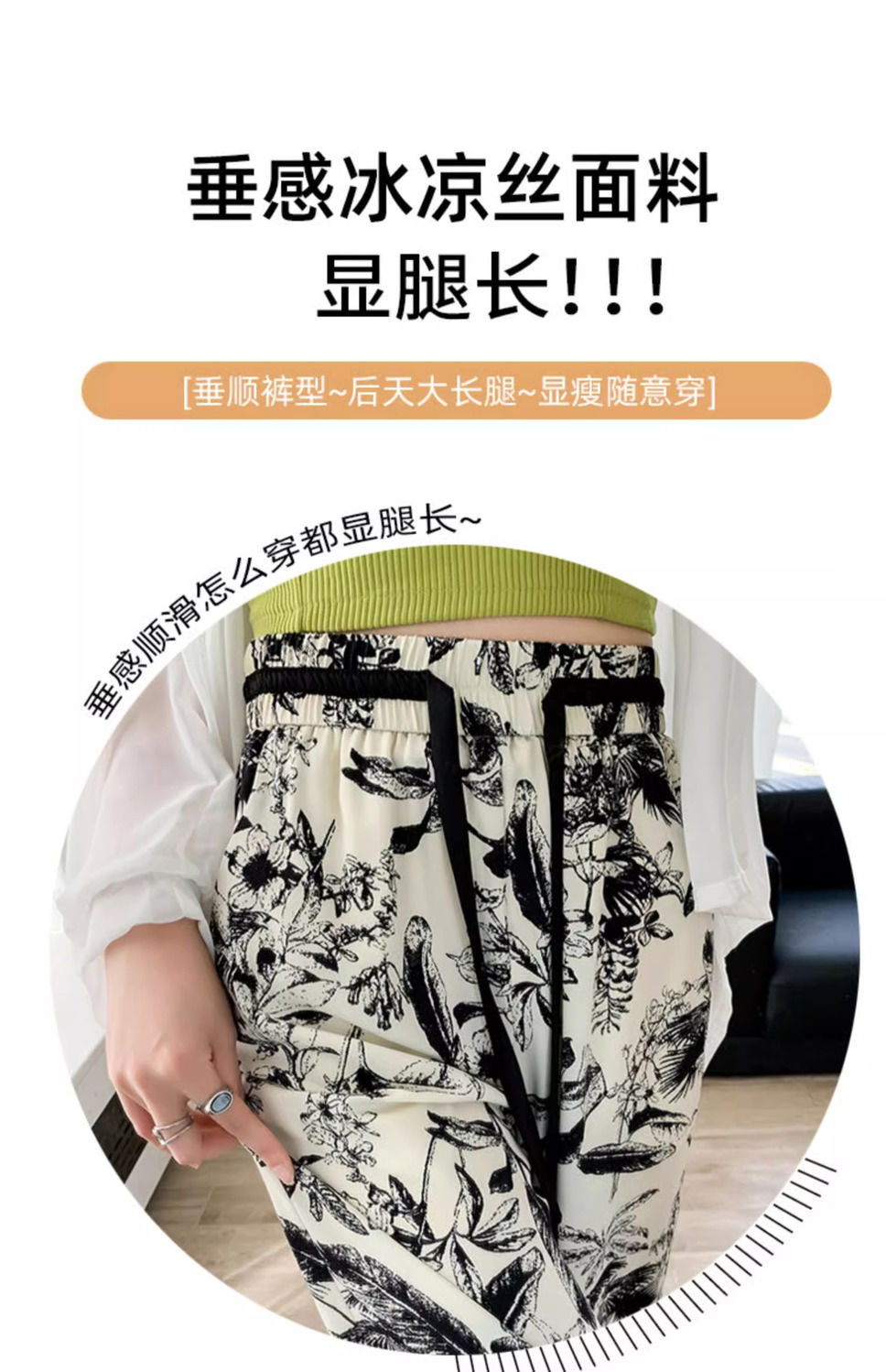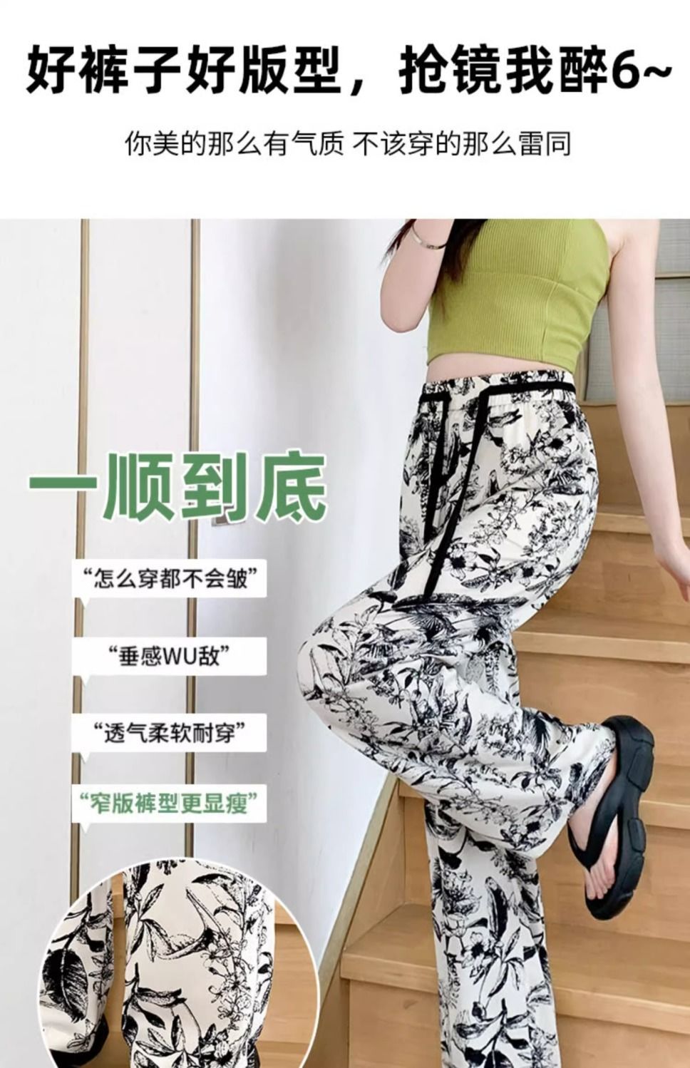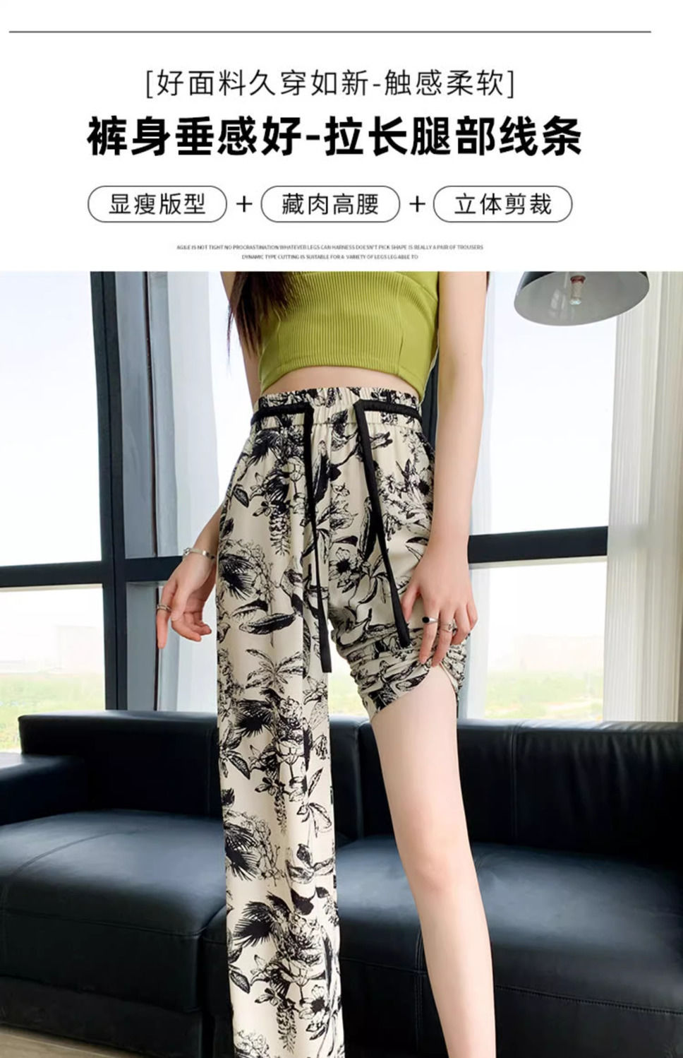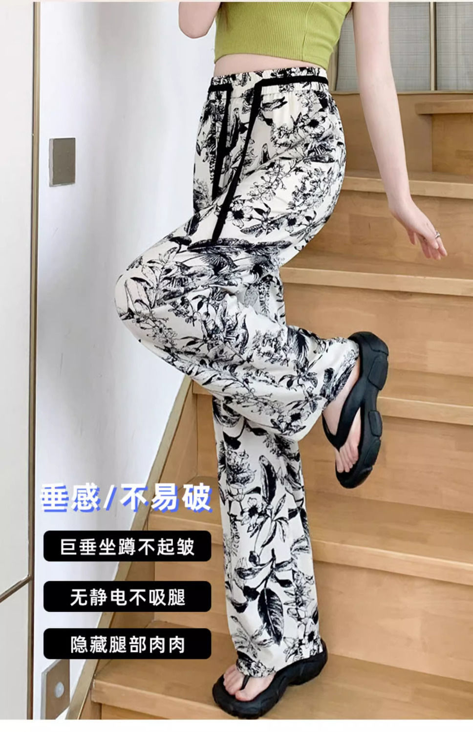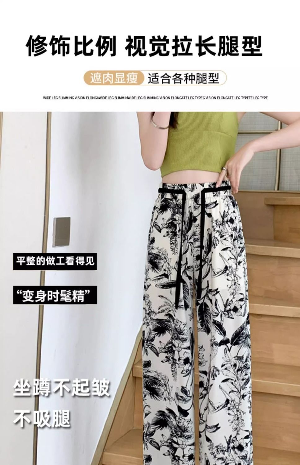 잉크 프린트 쉬폰 와이드 팬츠 여성 여름 슬림 레트로 스트레이트 팬츠 빅사이즈 하이웨이스트 드레이프 캐주얼 팬츠 롱 팬츠스토어 가기