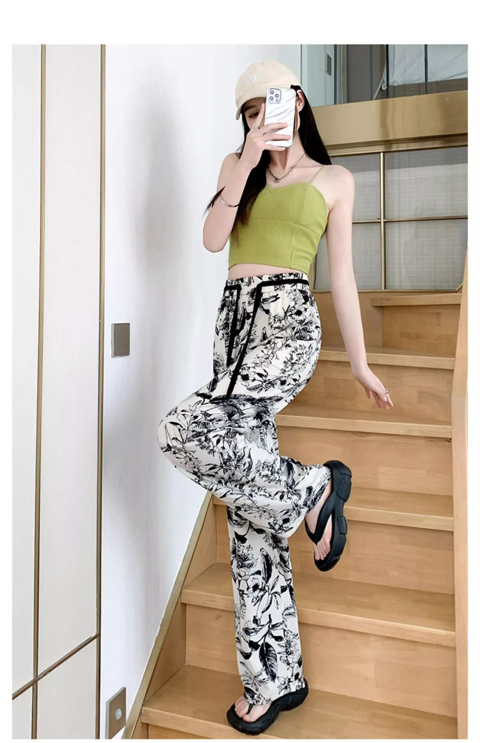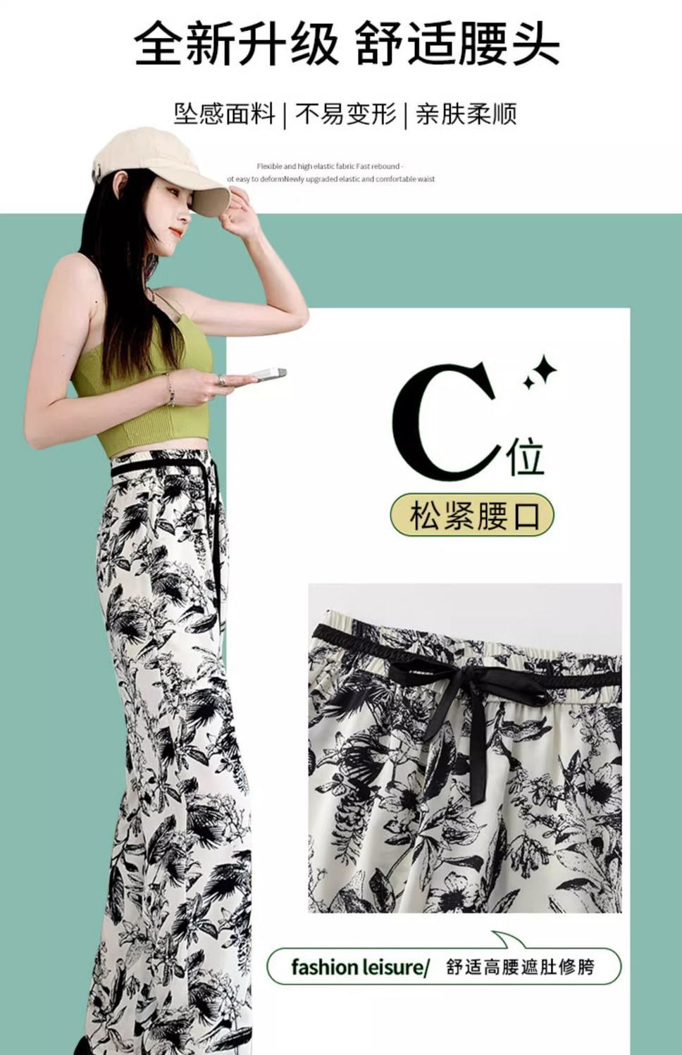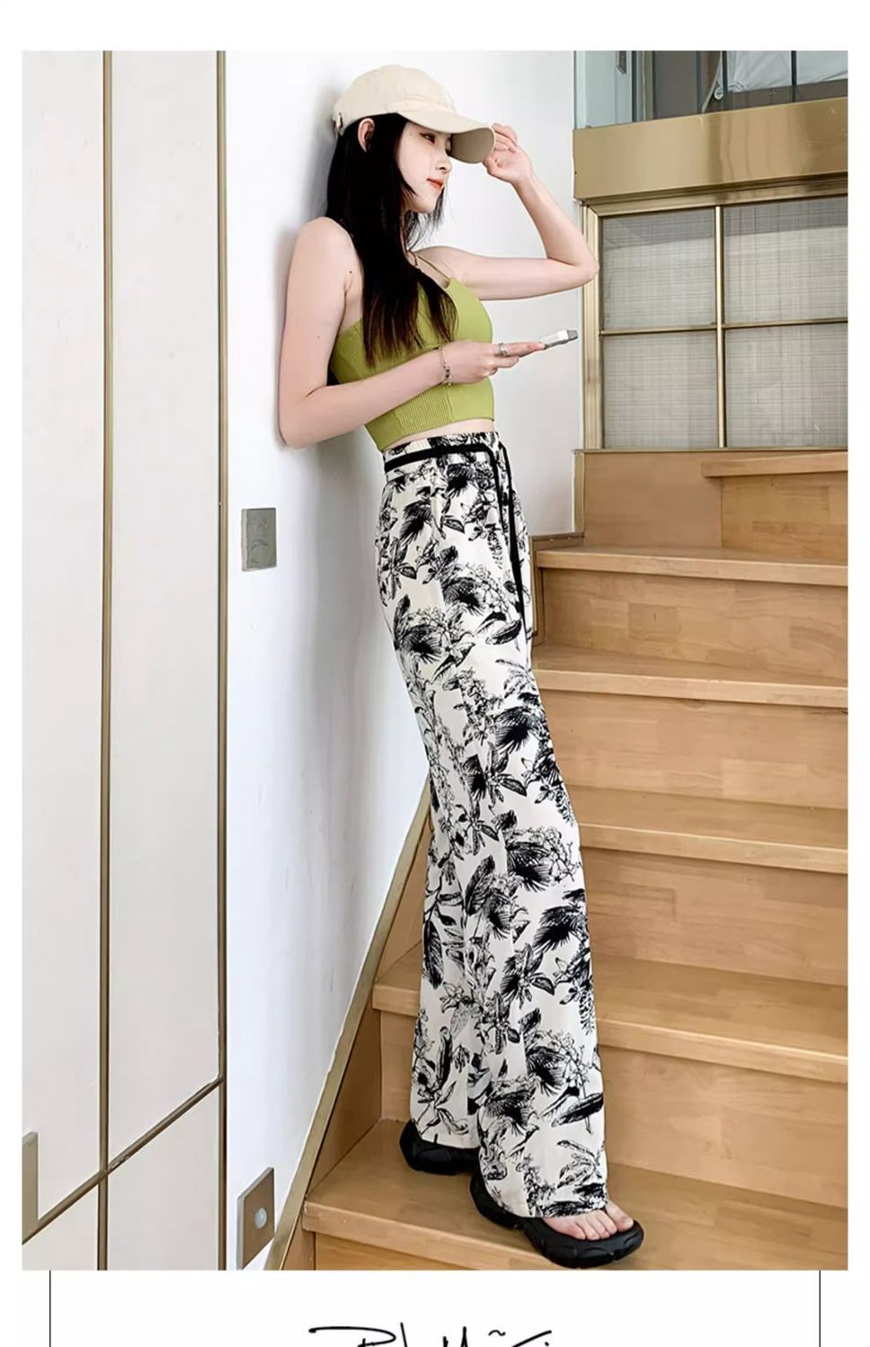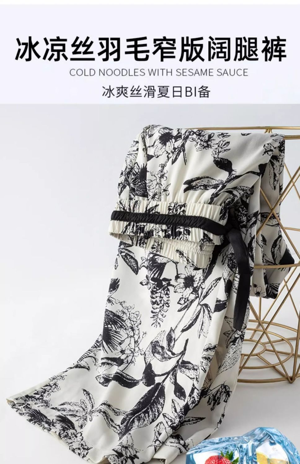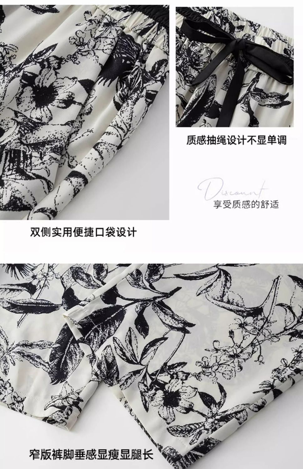 잉크 프린트 쉬폰 와이드 팬츠 여성 여름 슬림 레트로 스트레이트 팬츠 빅사이즈 하이웨이스트 드레이프 캐주얼 팬츠 롱 팬츠스토어 가기