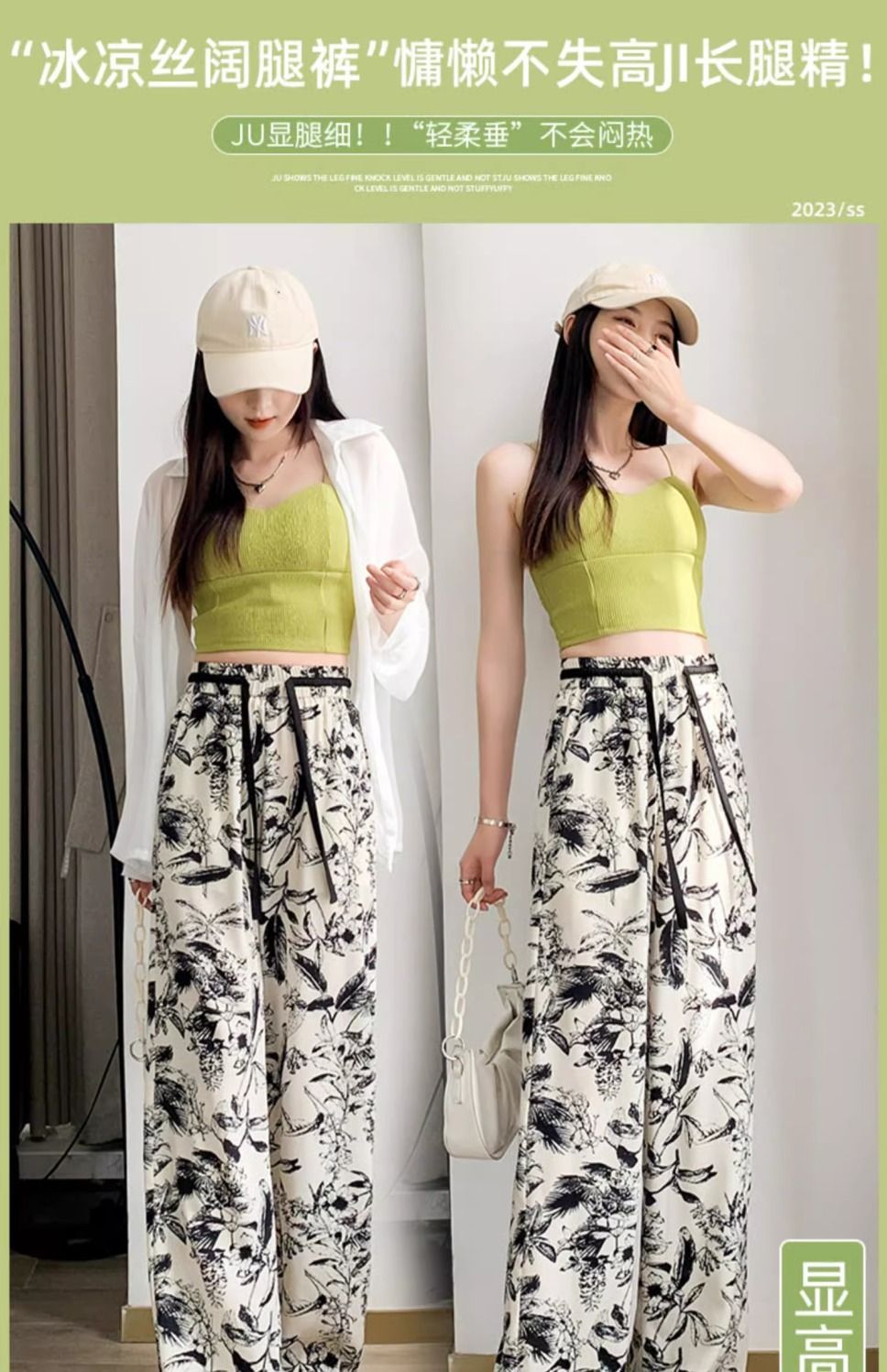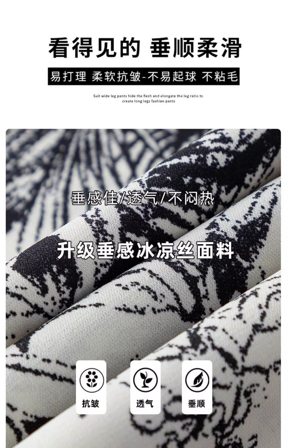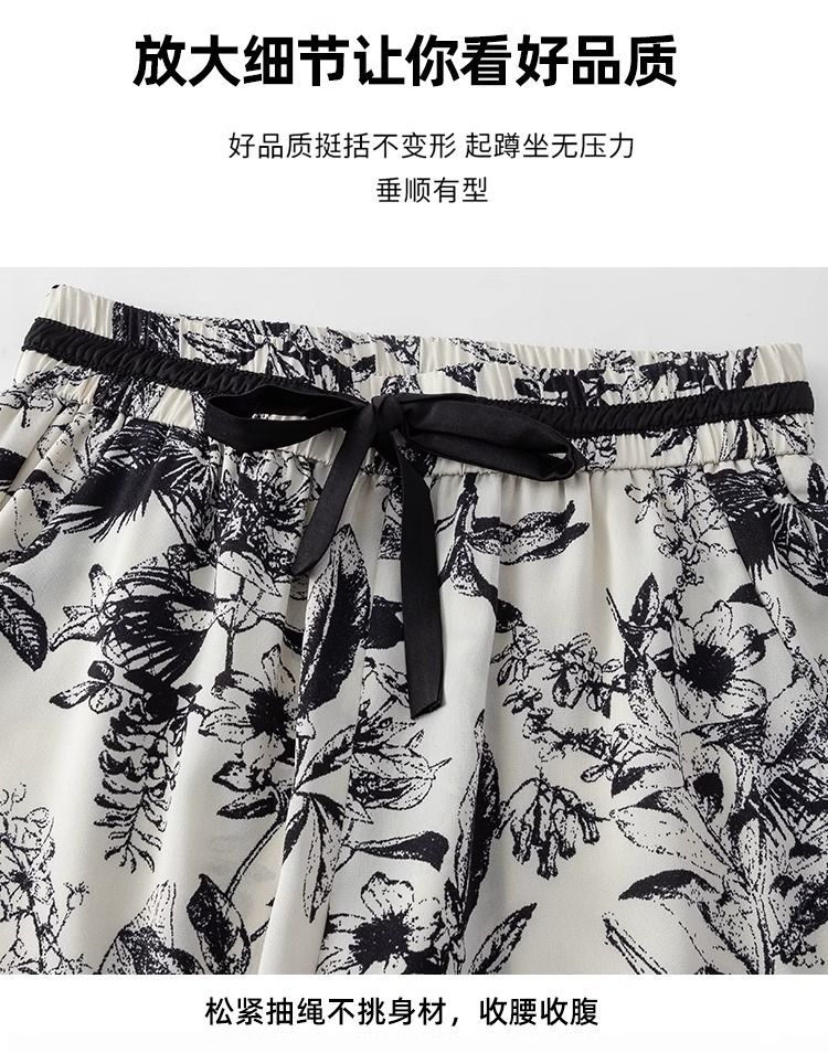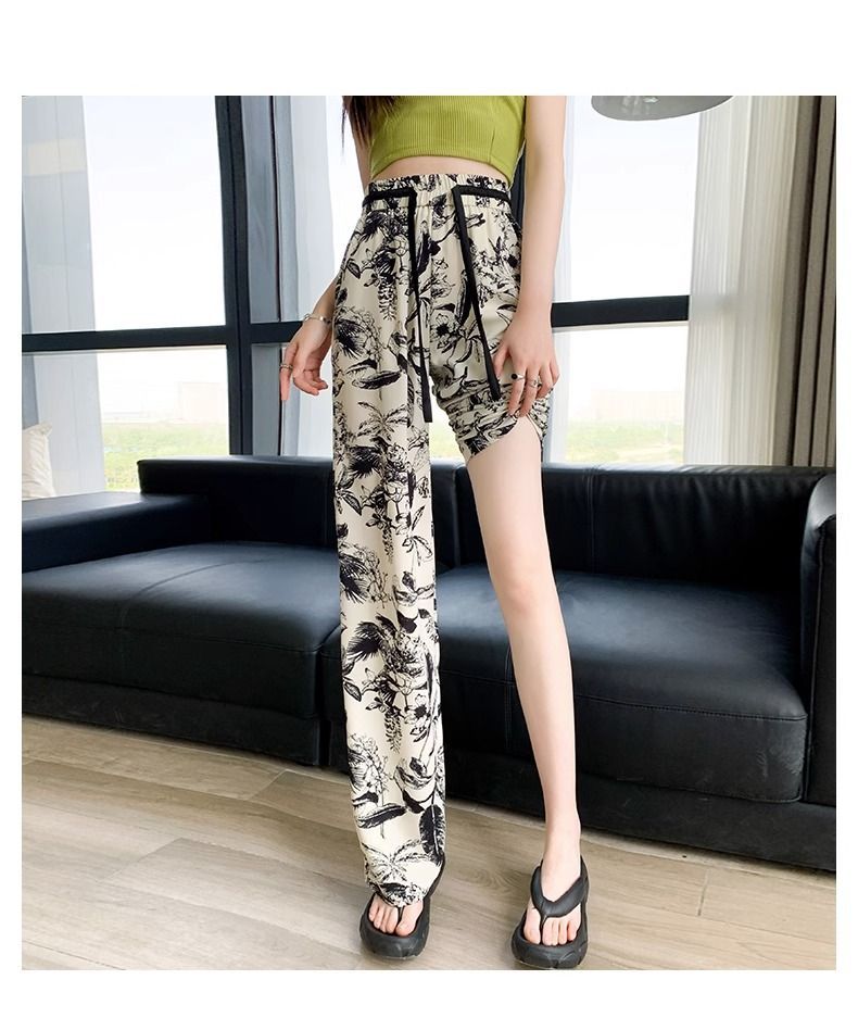 잉크 프린트 쉬폰 와이드 팬츠 여성 여름 슬림 레트로 스트레이트 팬츠 빅사이즈 하이웨이스트 드레이프 캐주얼 팬츠 롱 팬츠