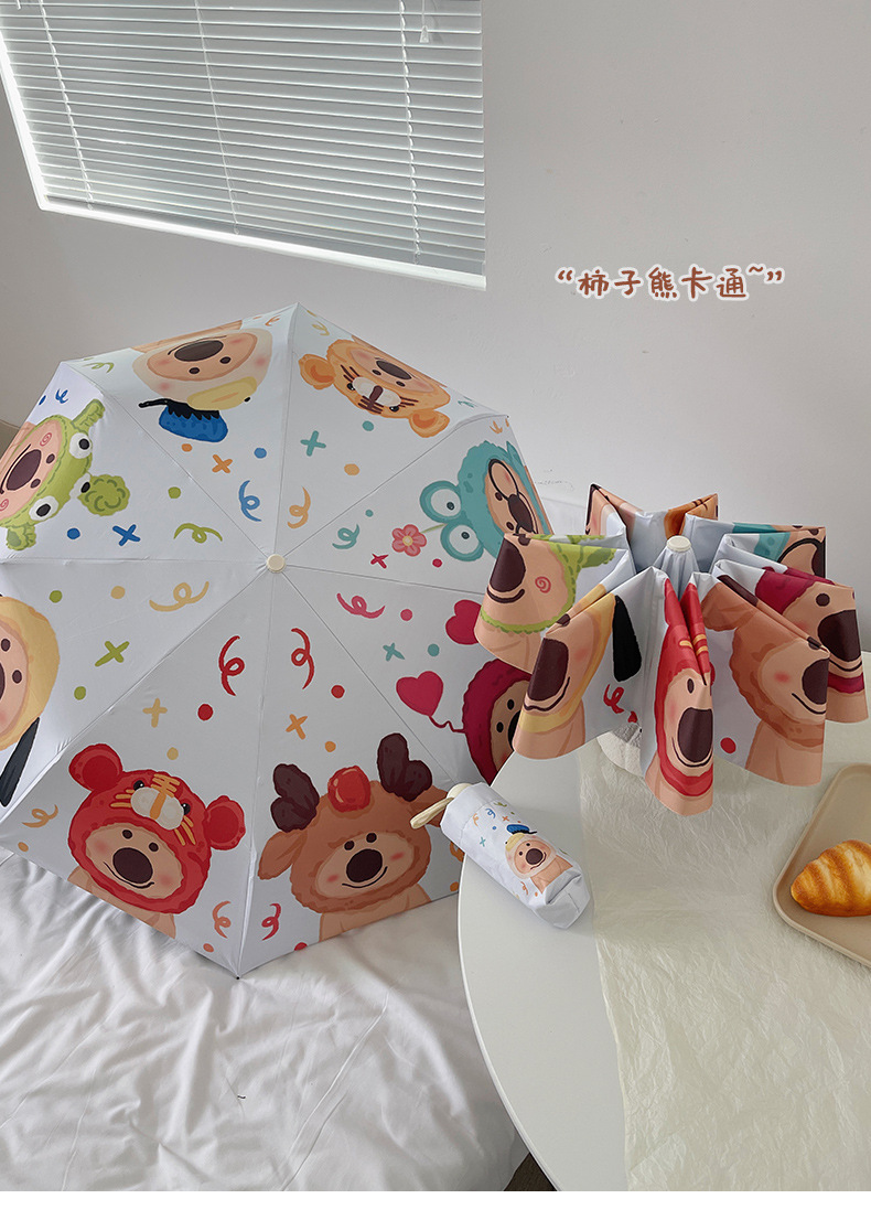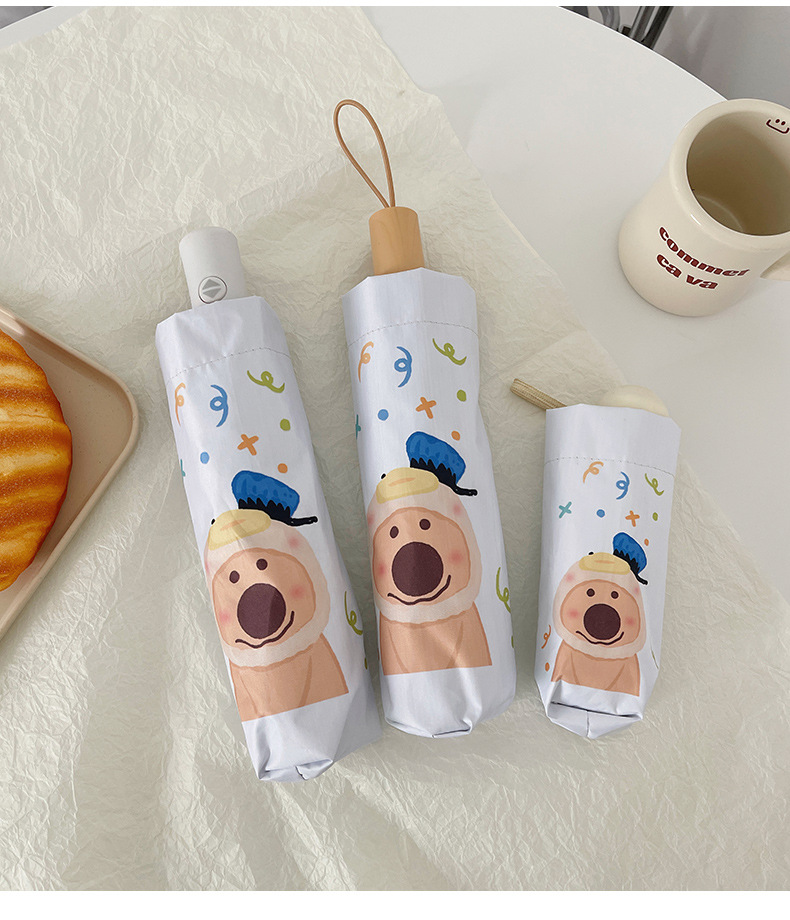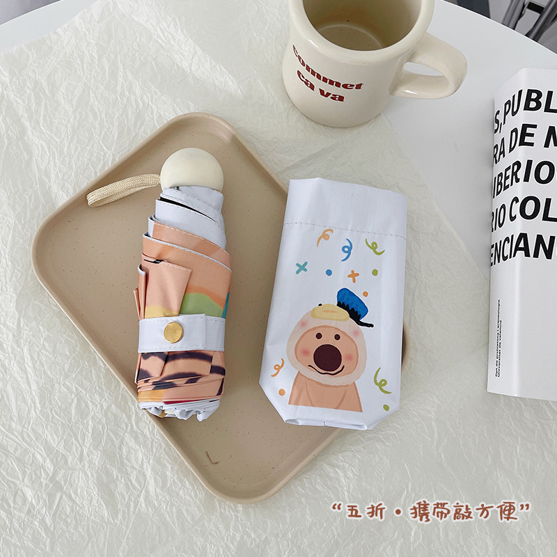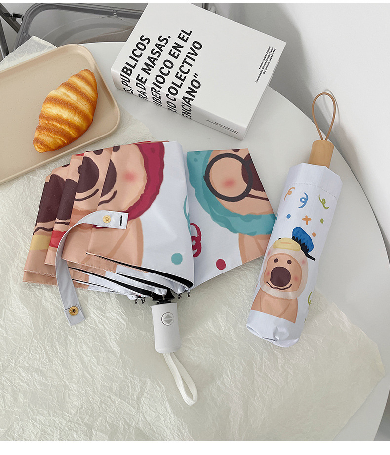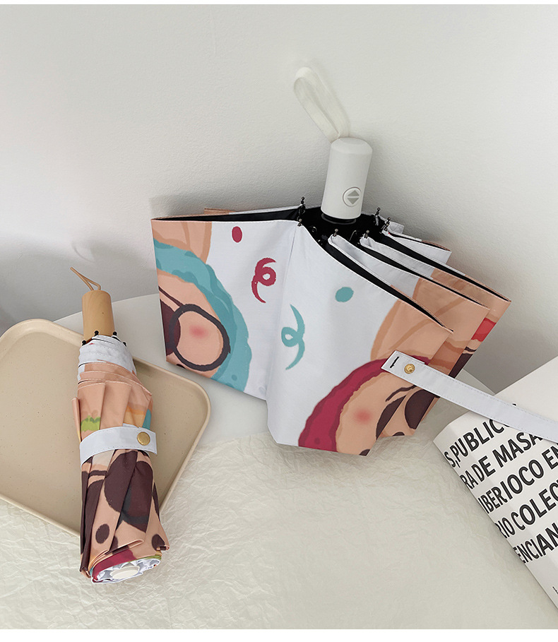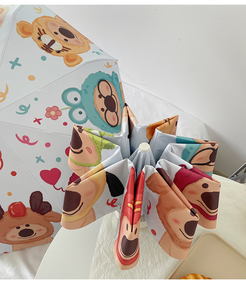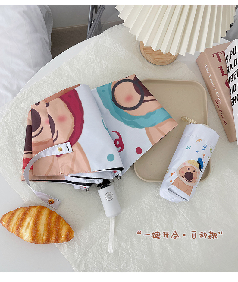 원래 감곰 자동 우산 수집 반등 방지 어린이 접는 우산 검은 고무 선 스크린 귀여운 카토 우산 여성을위한스토어 가기