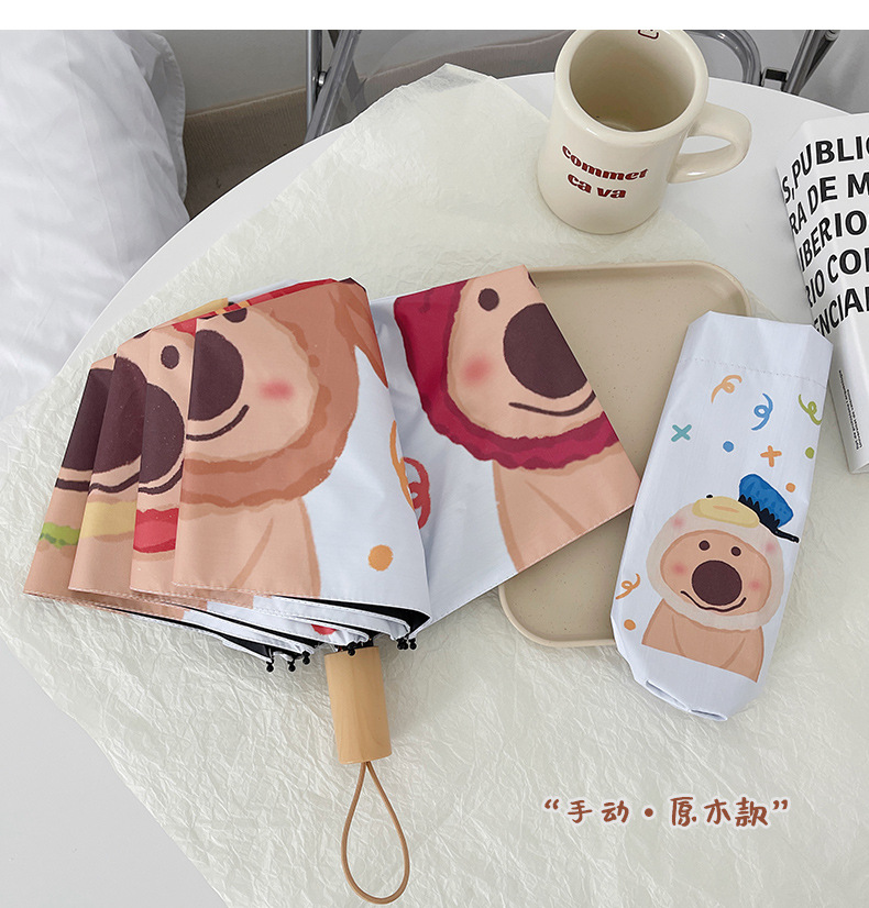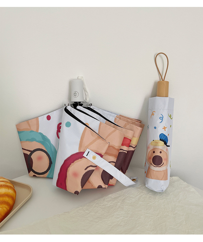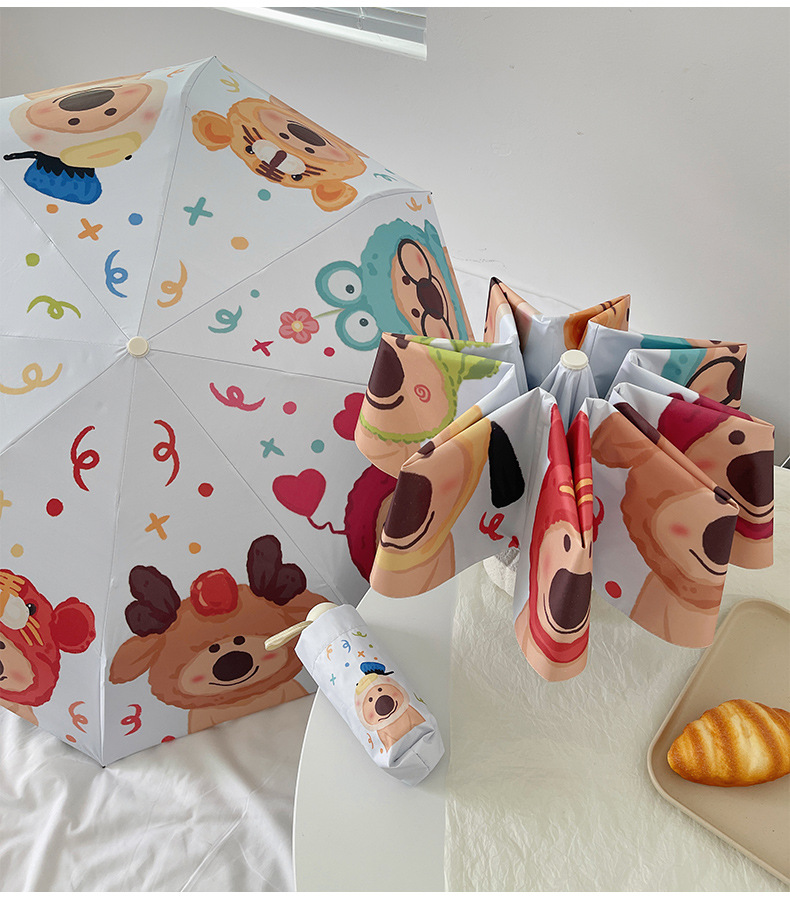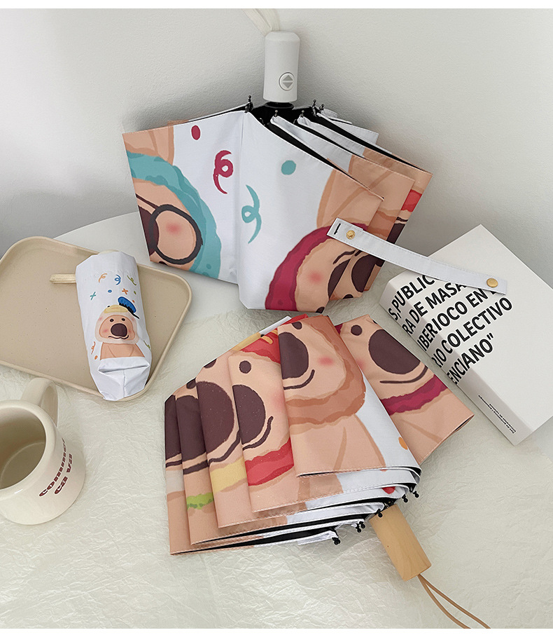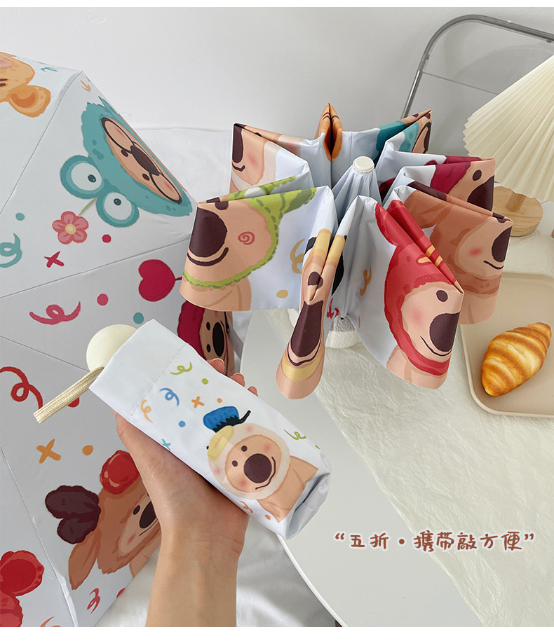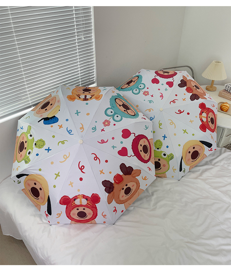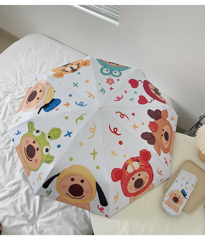 원래 감곰 자동 우산 수집 반등 방지 어린이 접는 우산 검은 고무 선 스크린 귀여운 카토 우산 여성을위한스토어 가기