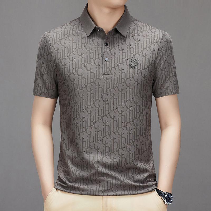 여름 비즈니스 캐주얼 반팔 남성 옷깃 음표 스타일 통기성 폴로 셔츠 원활한 느슨한 아빠 착용 반팔 T스토어 가기