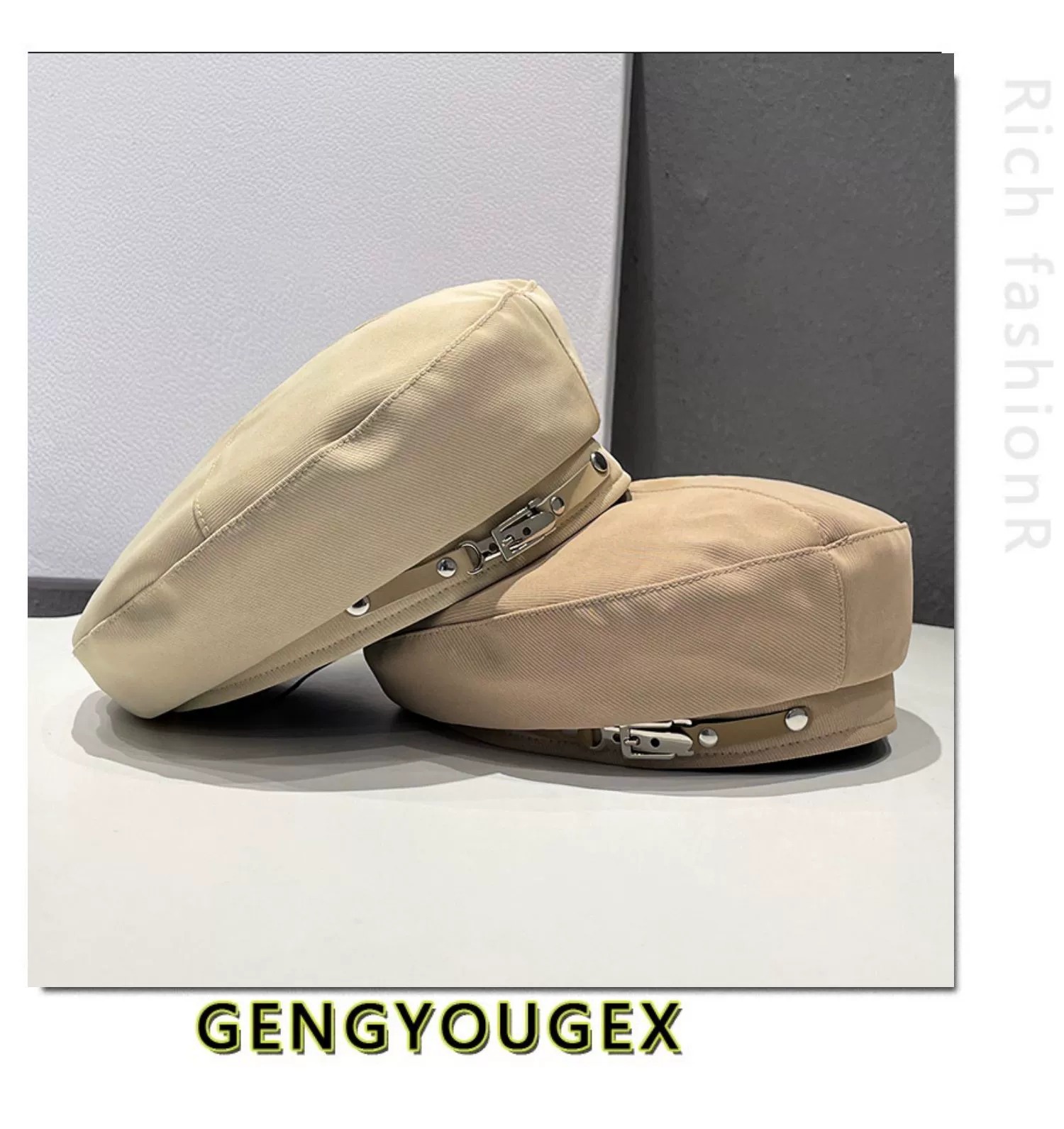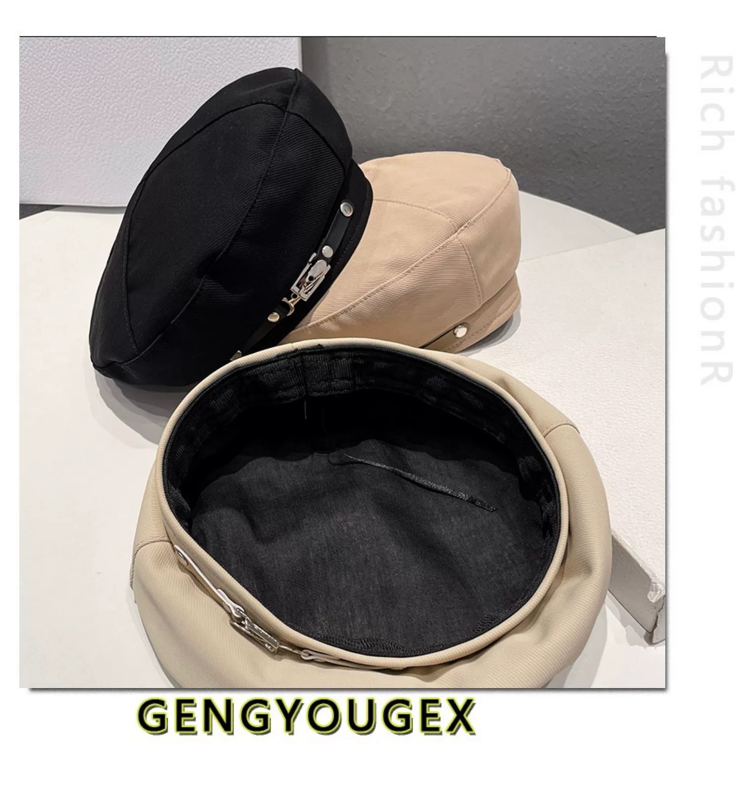 일본의 새로운 벨트 금속 버클 베레모 여성 틈새 인터넷 연예인 복고풍 플랫 탑 다목적 얼굴 작은 영국 화가스토어 가기
