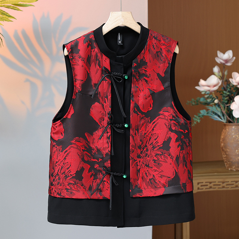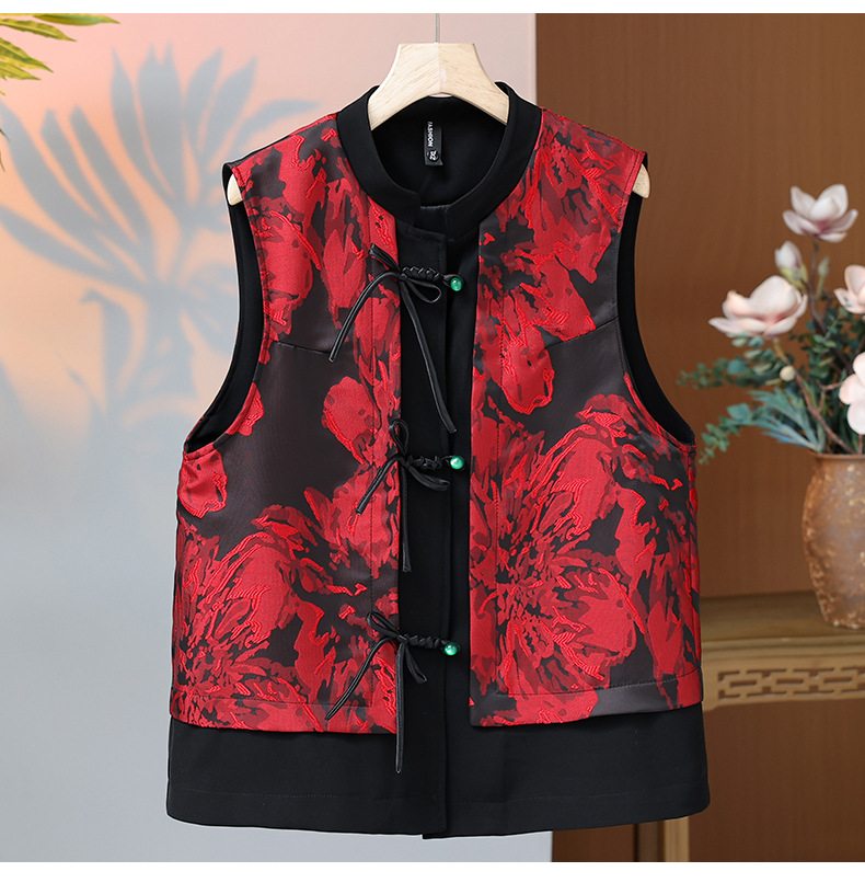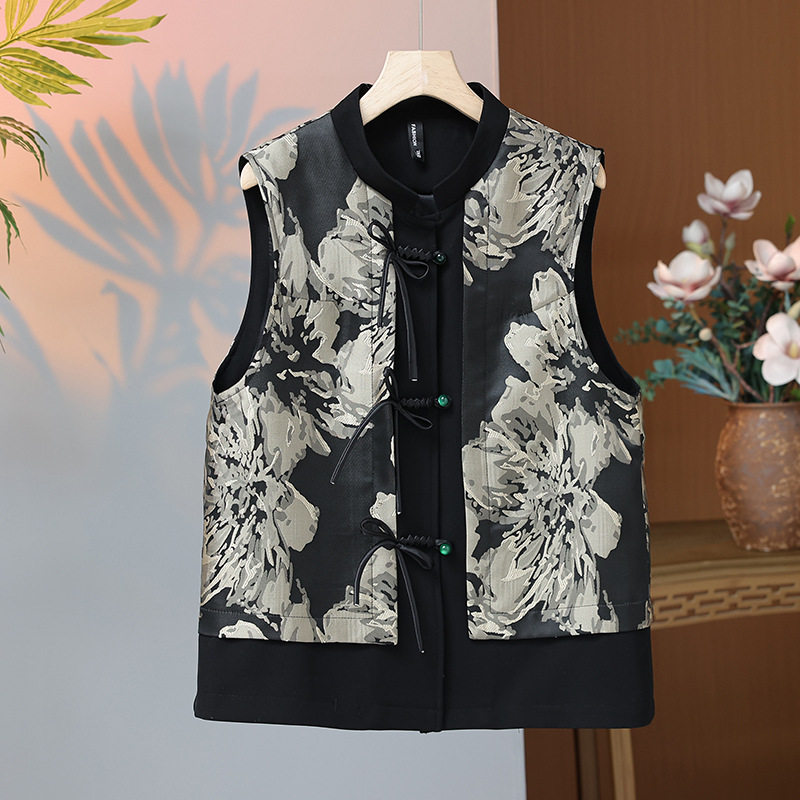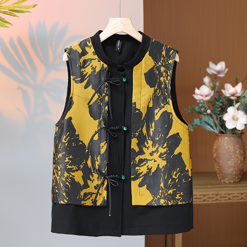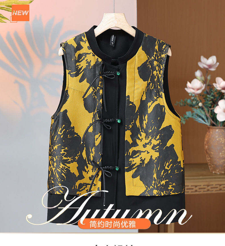 여성의 새로운 중국 스타일의 유행과 나이를 줄이는 조끼, 새틴 세트 조끼, 새로운 가을스토어 가기