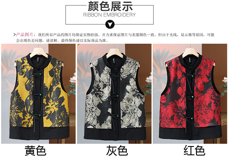 여성의 새로운 중국 스타일의 유행과 나이를 줄이는 조끼, 새틴 세트 조끼, 새로운 가을