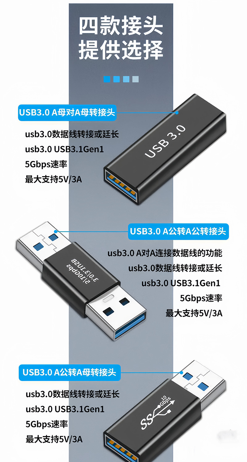 USB3.0 어댑터, 남성-남성, 여성-여성, 여성-여성 연결, 휴대폰, 노트북 충전 및 데이터 전송, 타입-C 변환기, 외부 연결스토어 가기