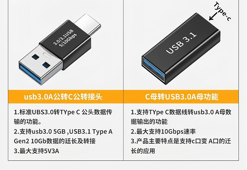 USB3.0 어댑터, 남성-남성, 여성-여성, 여성-여성 연결, 휴대폰, 노트북 충전 및 데이터 전송, 타입-C 변환기, 외부 연결